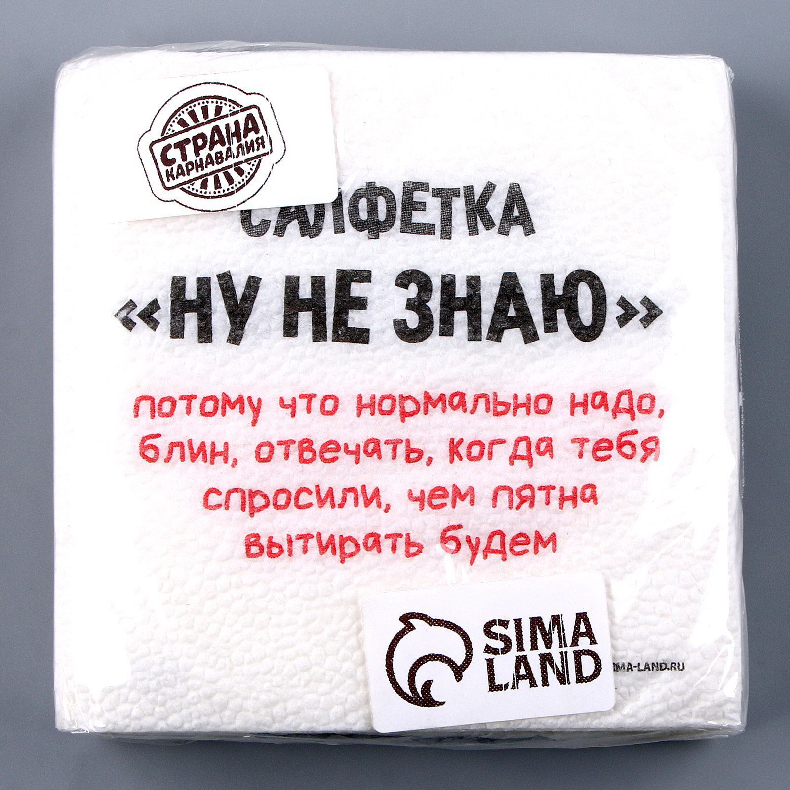 Салфетки бумажные однослойные "Ну, не знаю", 24 x 24 см, в наборе 20 шт., Страна Карнавалия, Россия
