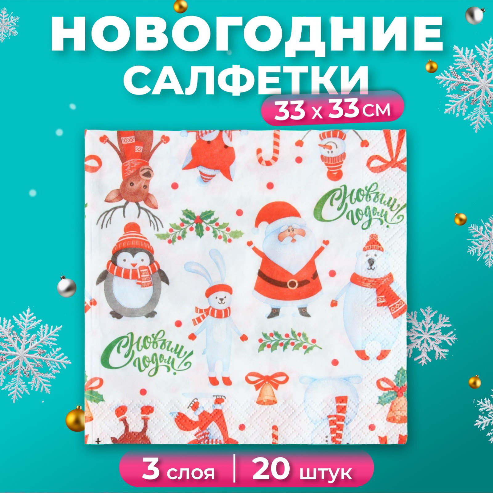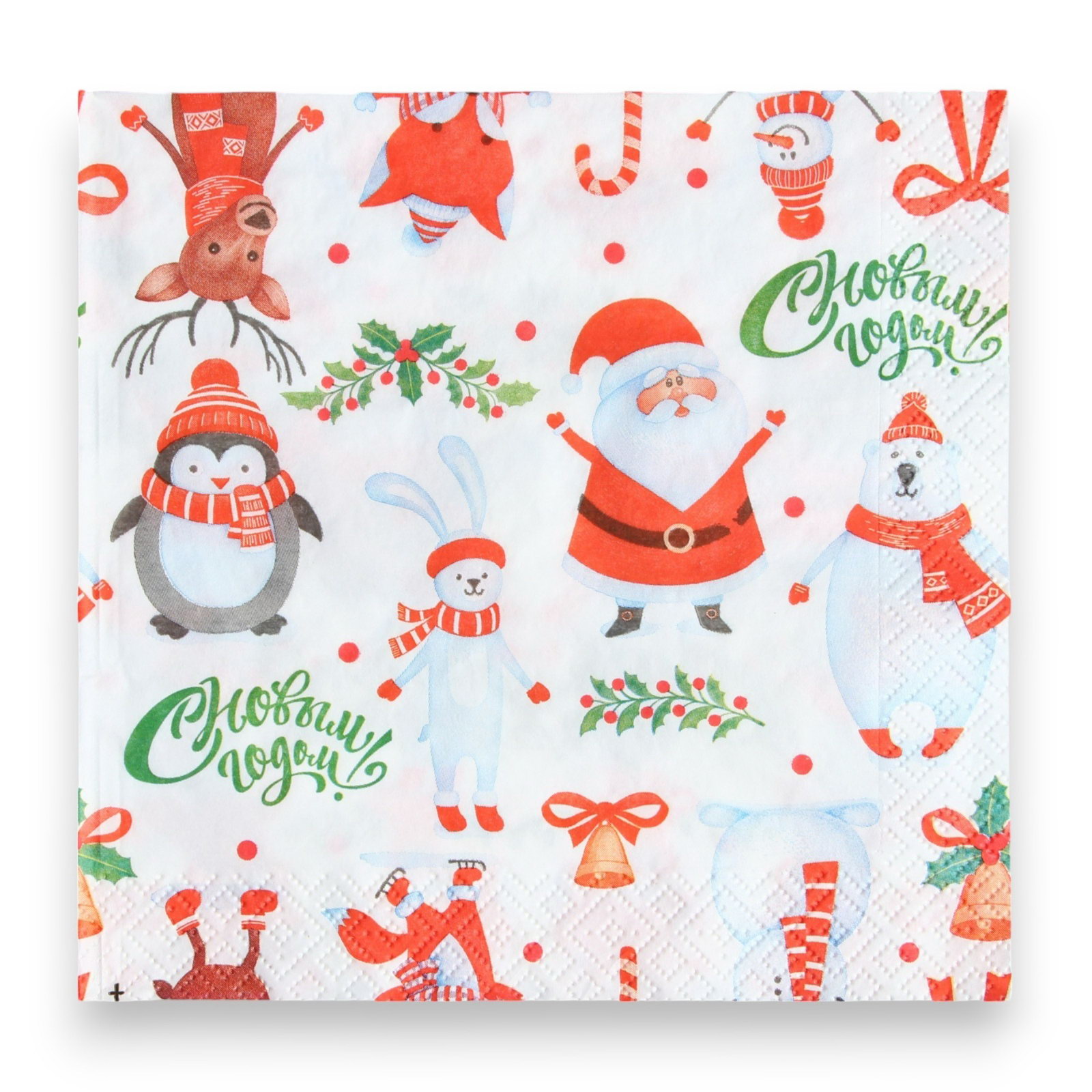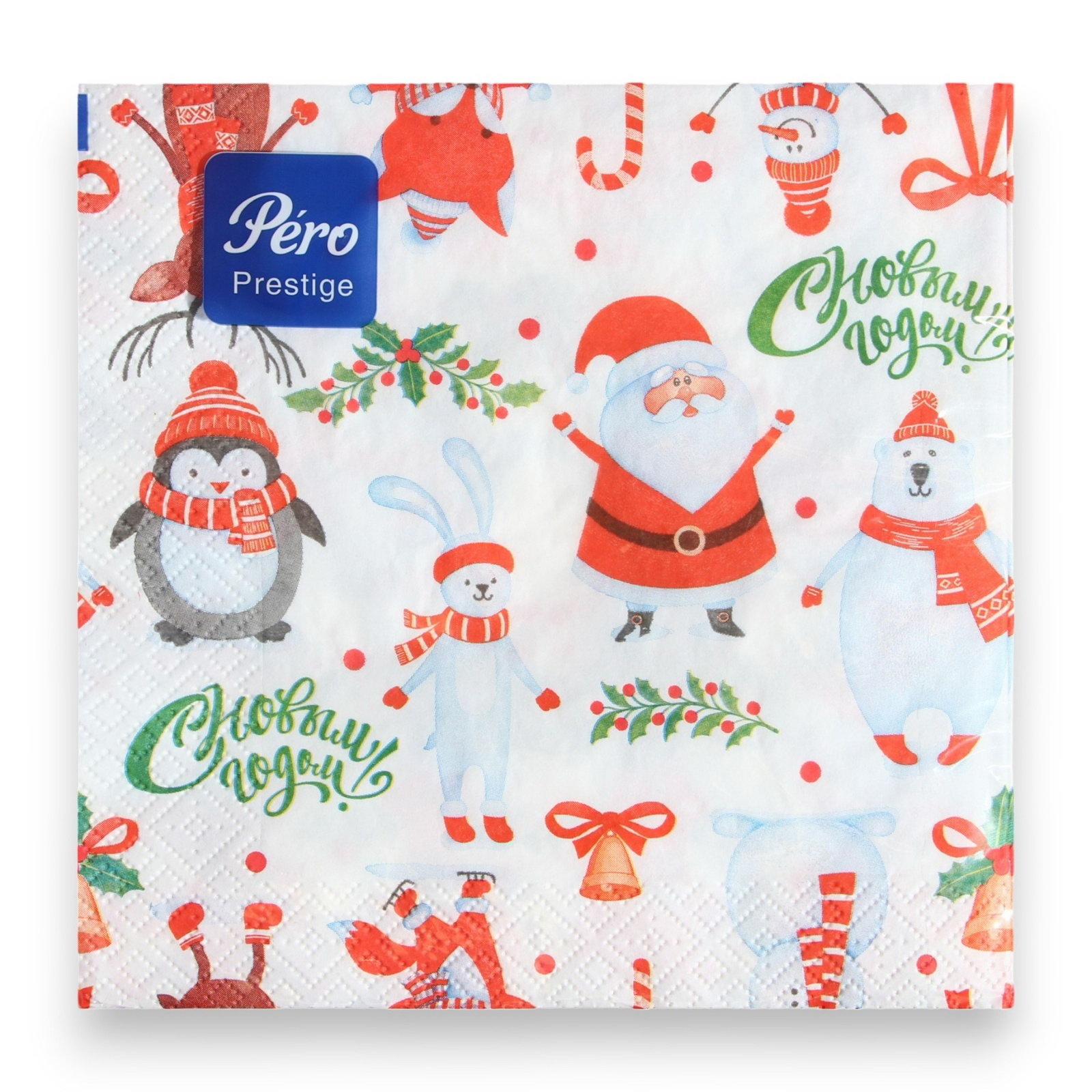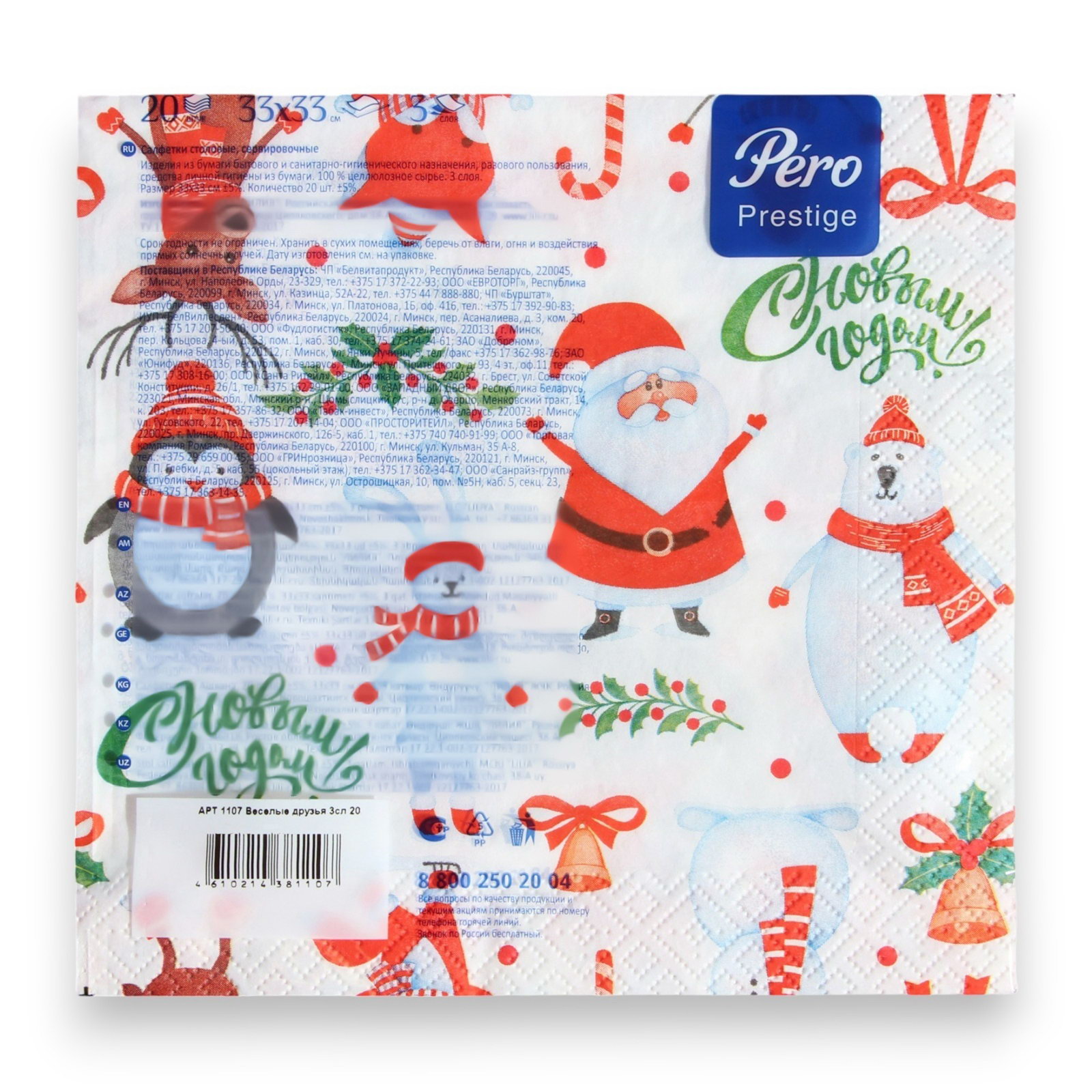 Салфетки новогодние бумажные Pero Prestige "Веселые друзья", 3 слоя, 33х33 см, 20 шт, Лилия, Россия