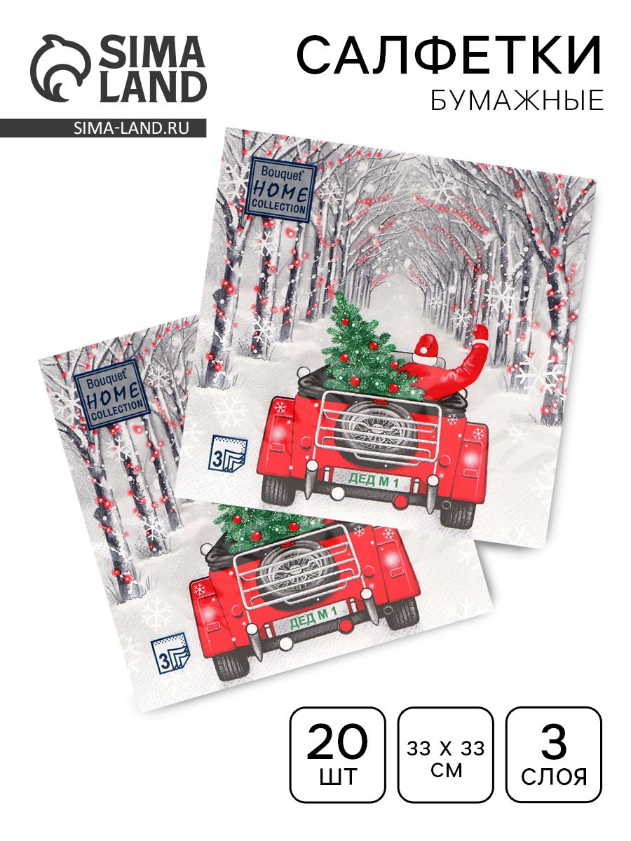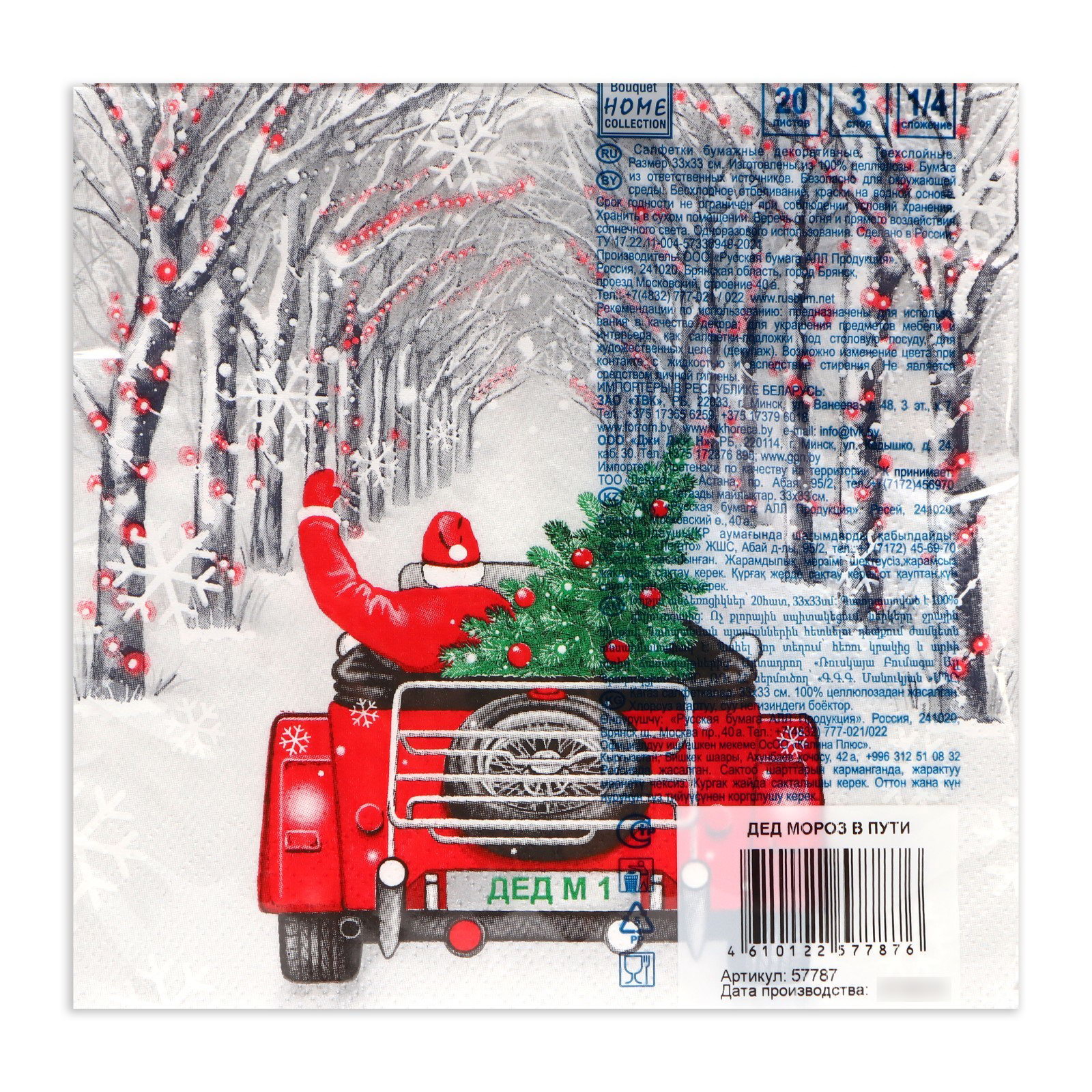 Салфетки новогодние бумажные Collection "Дед Мороз в пути", 3 слоя, 33x33 см, 20 шт., HOME, Россия