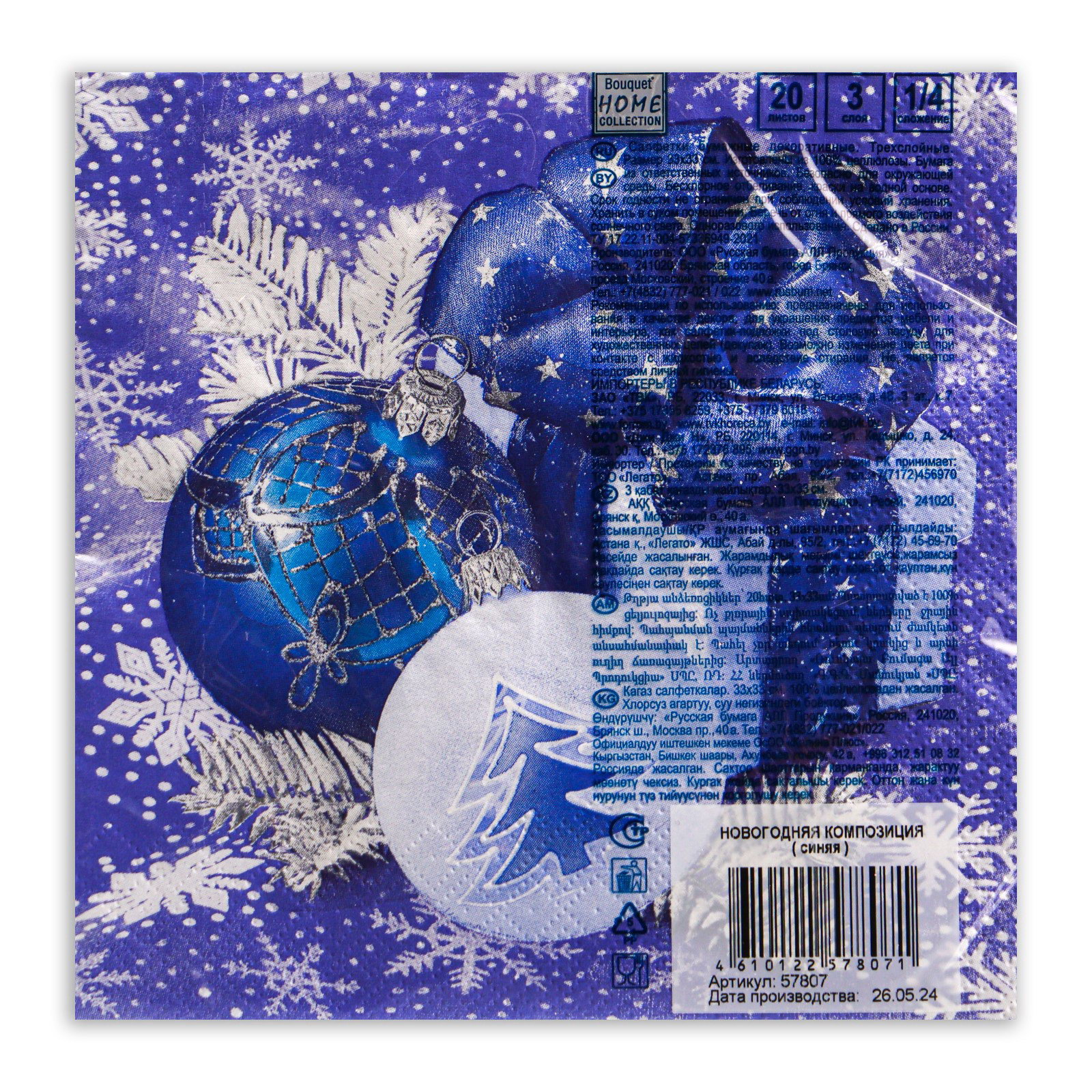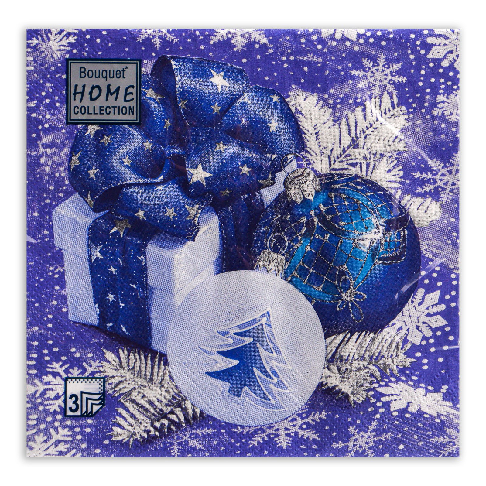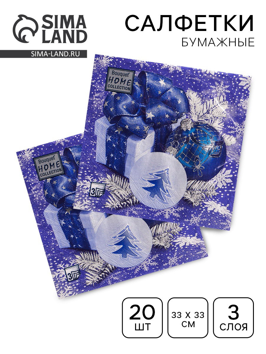 Салфетки бумажные Collection "Новогодняя композиция синяя", 3 слоя, 33x33 см, 20 шт., HOME, Россия