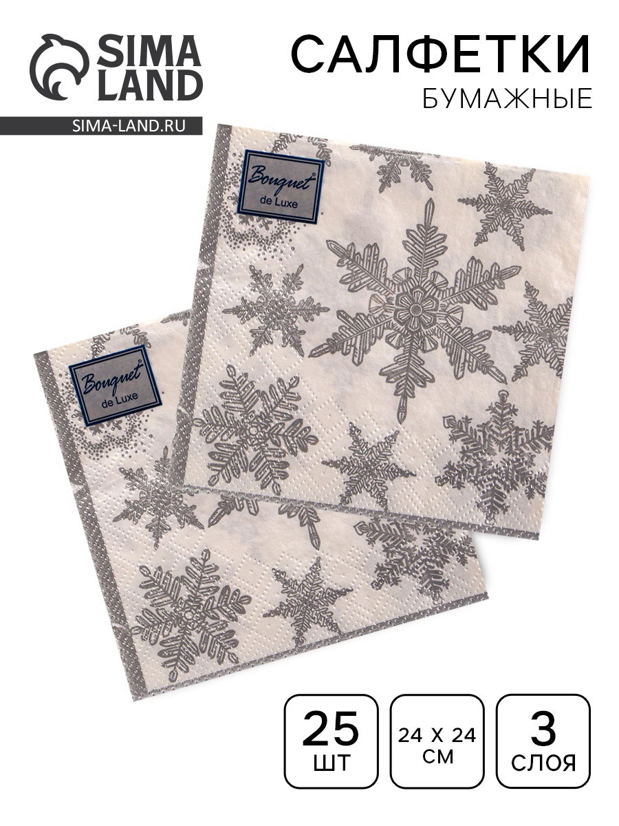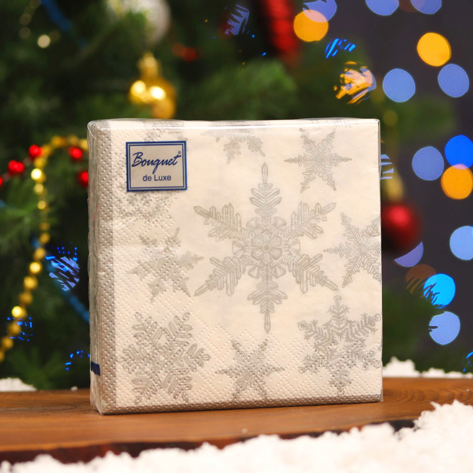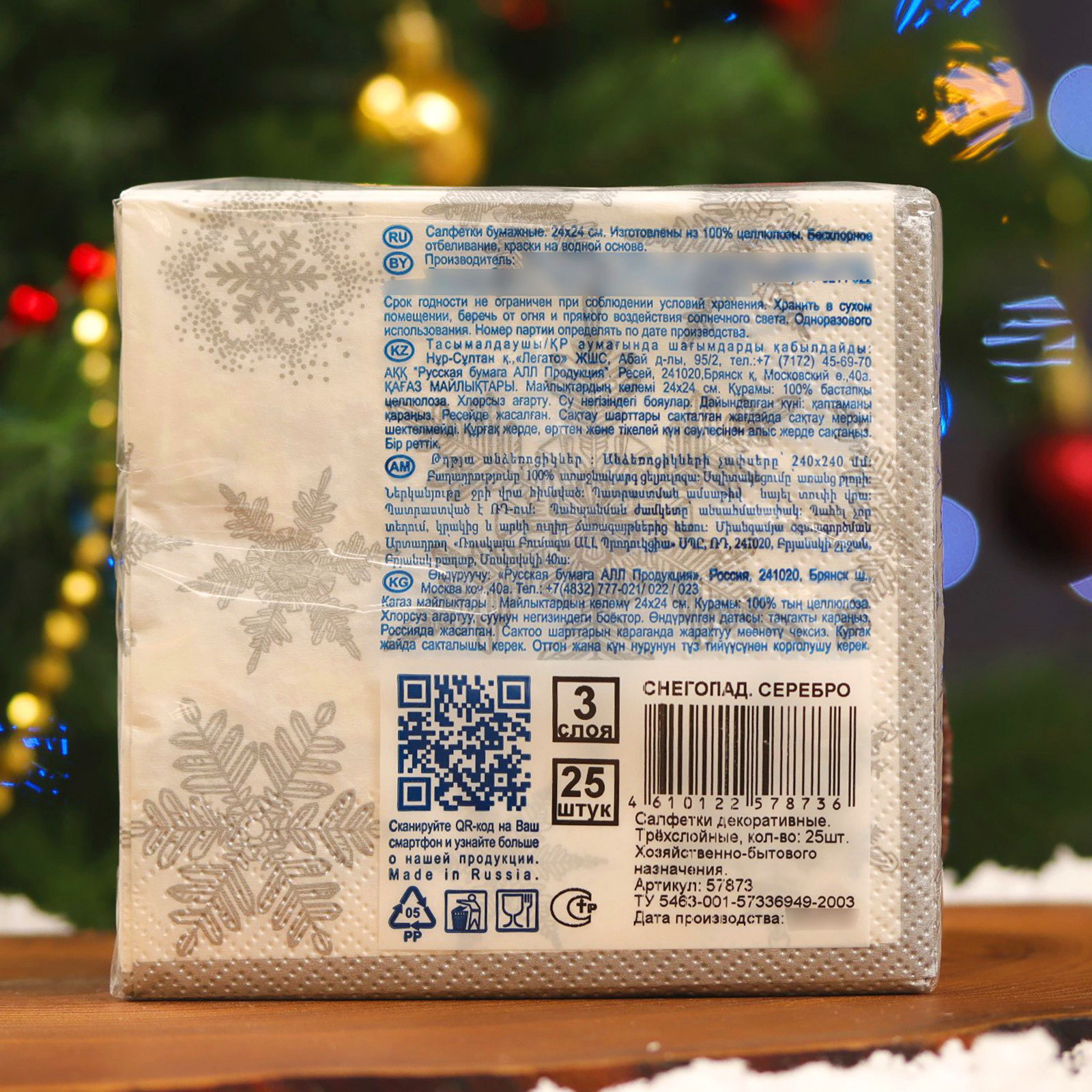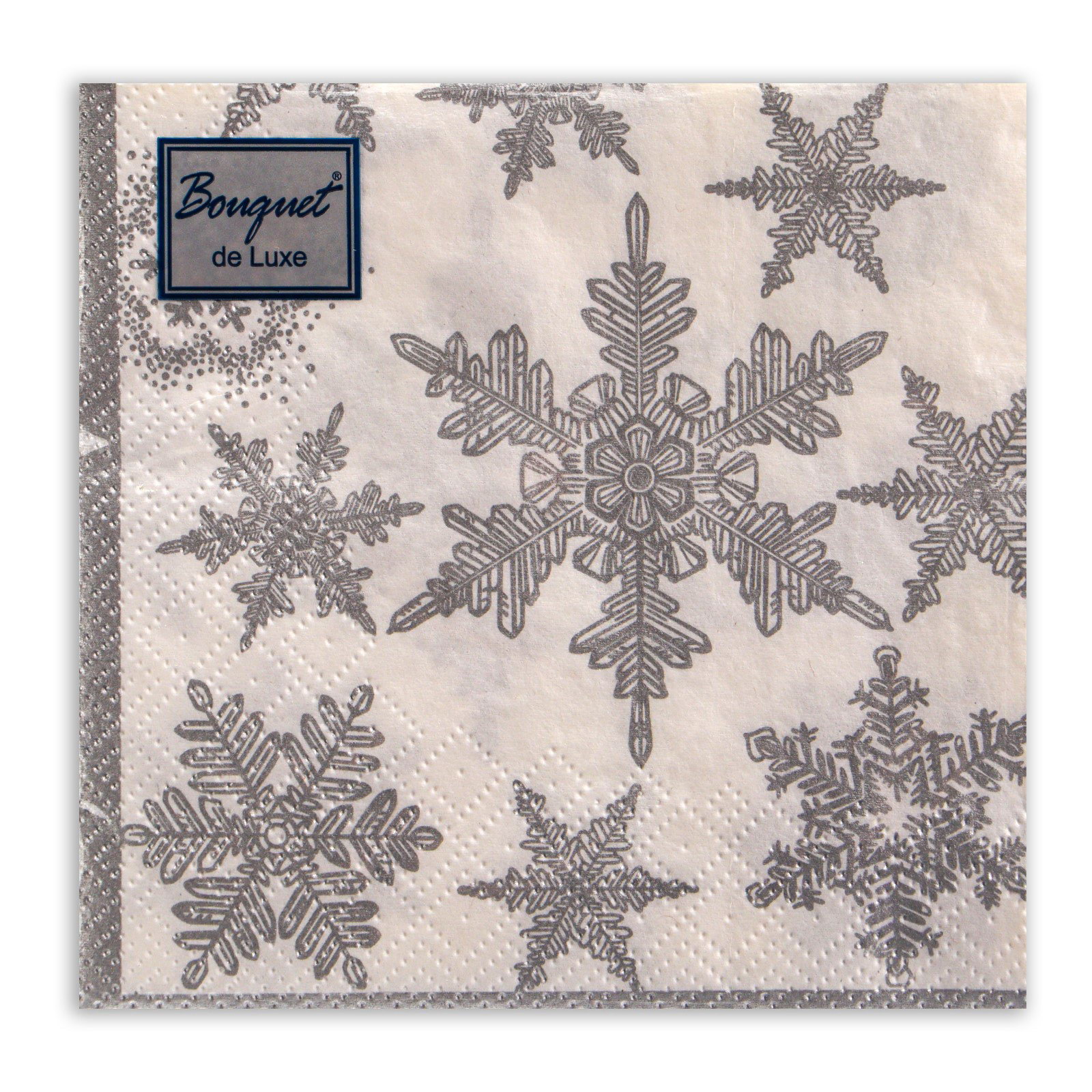 Салфетки новогодние бумажные Bouquet de Luxe "Снегопад Серебро", 3 слоя, 24x24 см, 25 шт., АртБукет, Россия