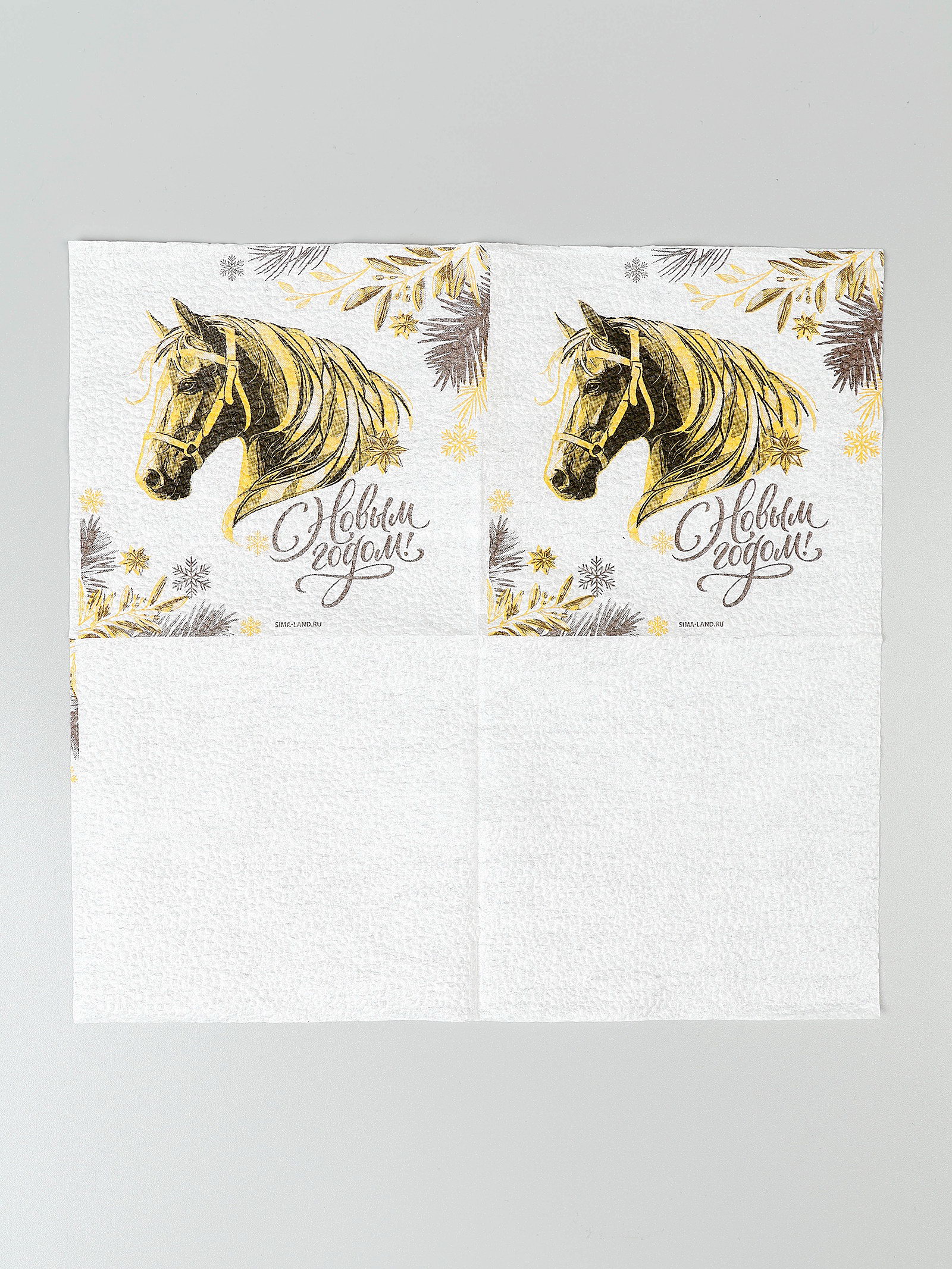 Салфетки бумажные "Золотая лошадь", однослойные, 24x24 см, 20 шт., Страна Карнавалия, Россия