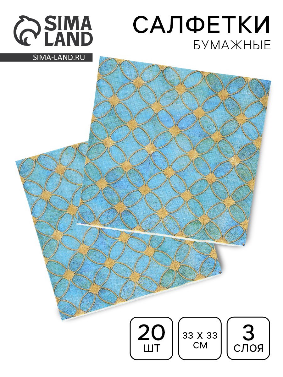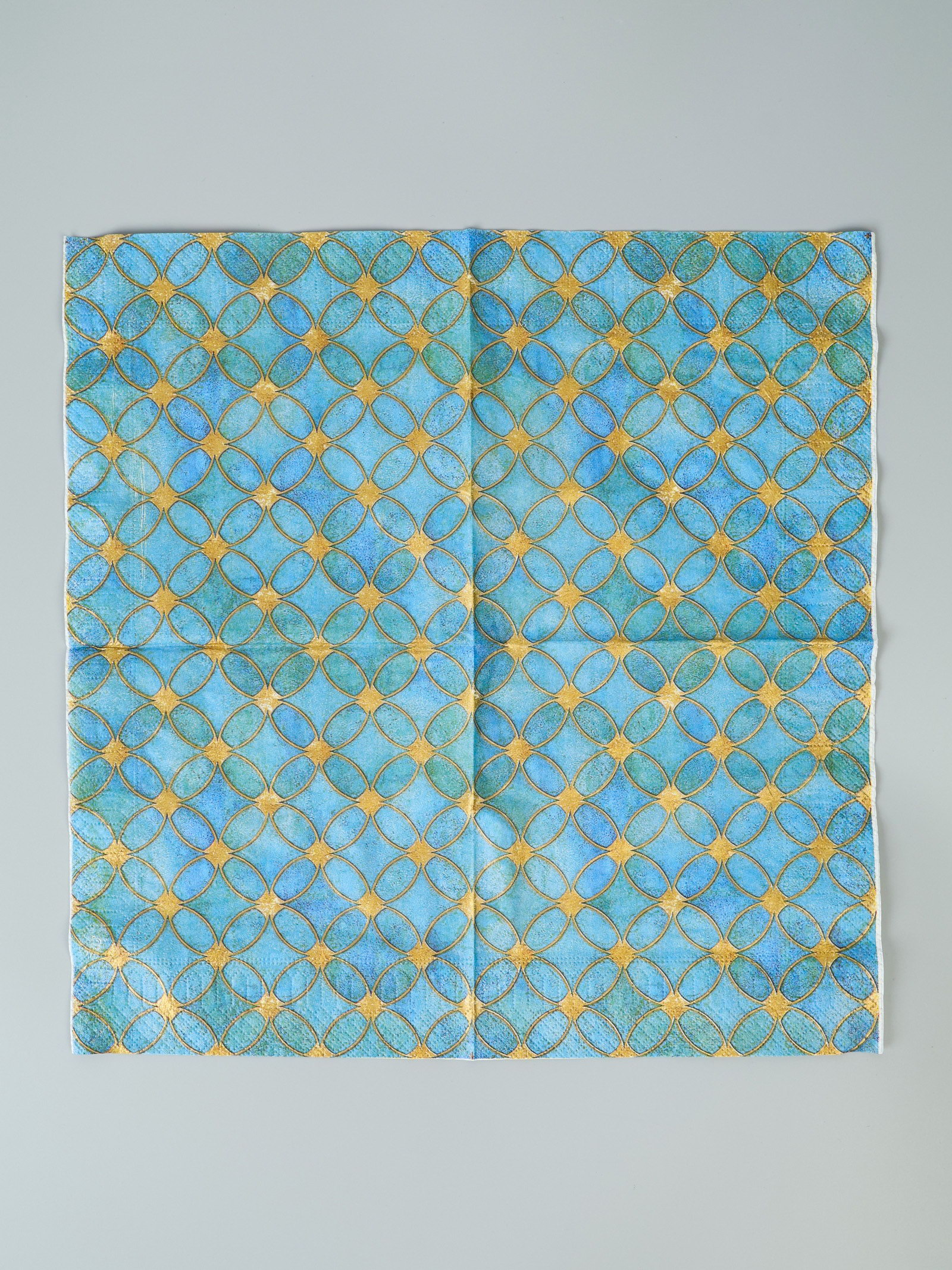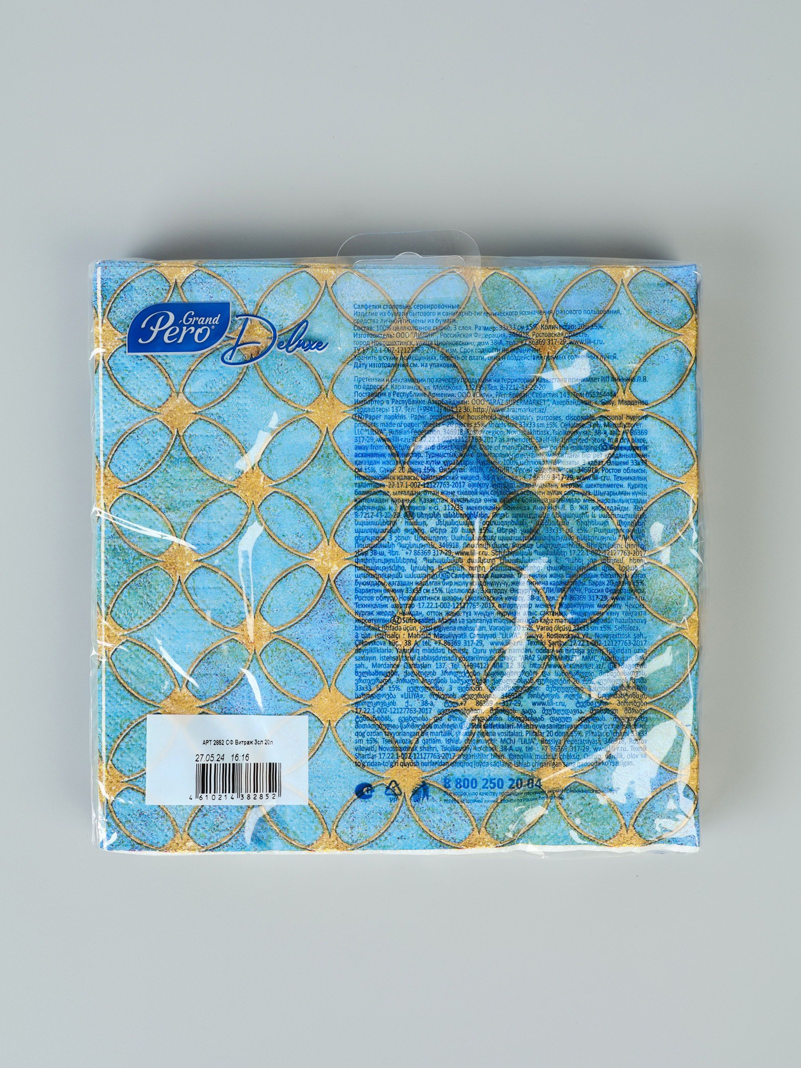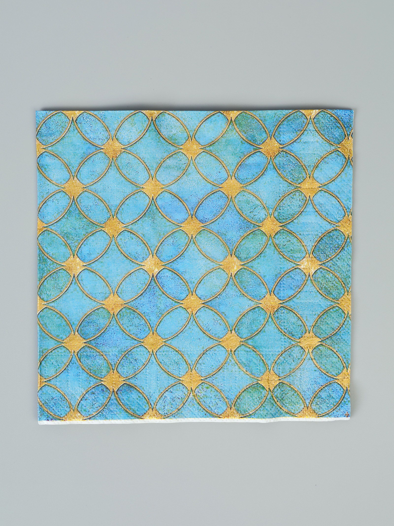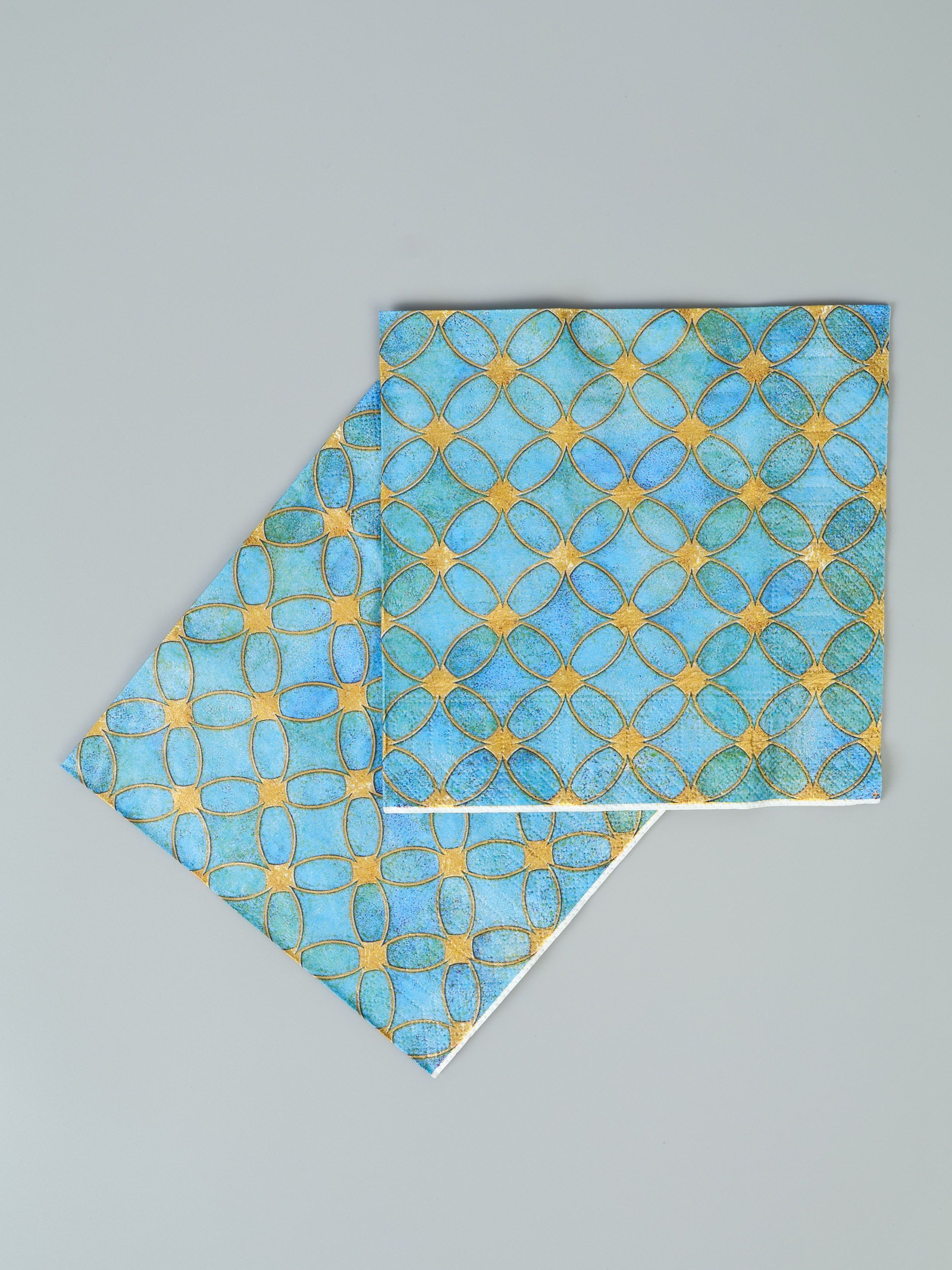 Цвет: Голубой, Золотистый Размер упаковки: 16.5 x 2.5 x 16.5 см. tnved: 4818300000 Вид: С рисунком В наборе, шт.: 20 Размер, см: 33 x 33 Фасовка, шт.: 20 Тип бумаги: Трёхслойная Тематика: Абстракция Символ года: Нет Тематика праздника: Универсальная тематика | ||