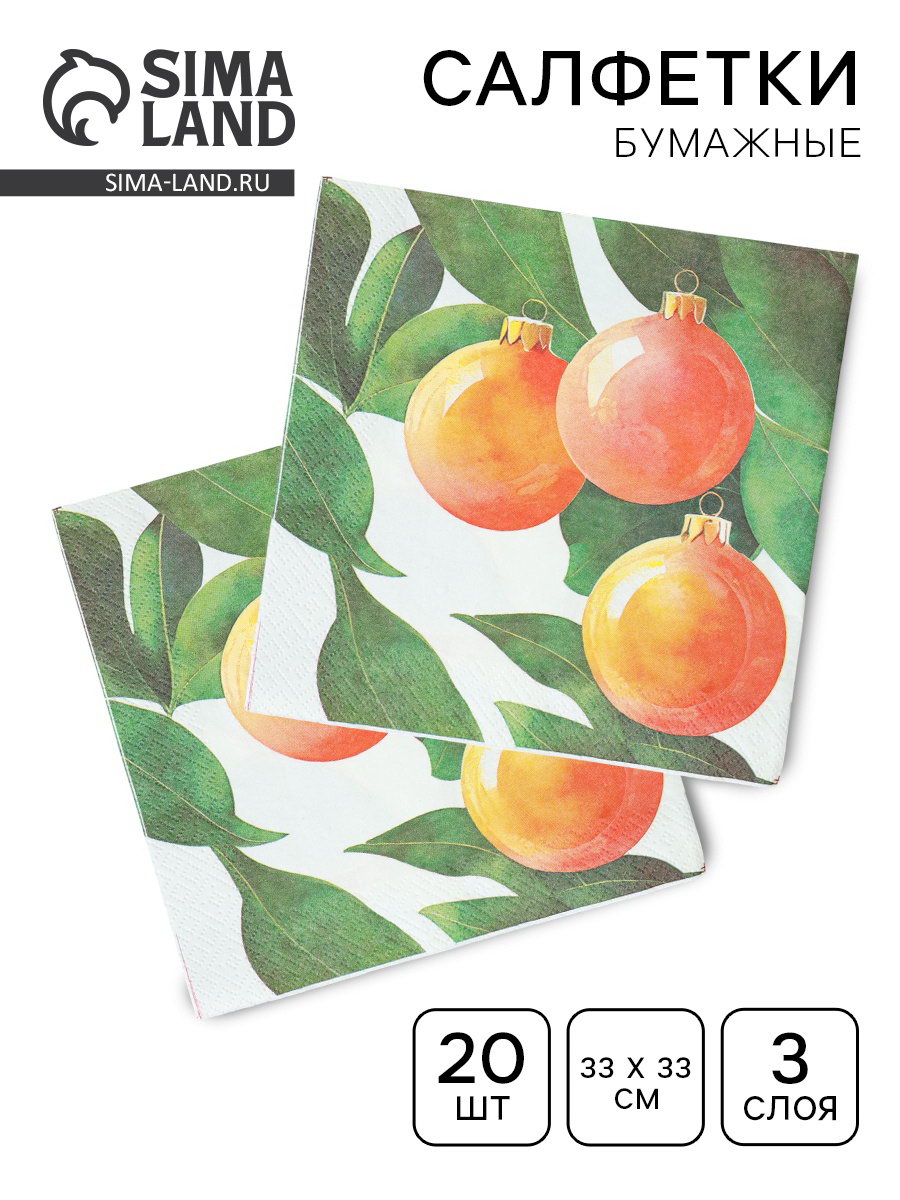 Салфетки бумажные трёхслойные "Апельсиновые шары", 33х33, 20 шт, Страна Карнавалия, Россия