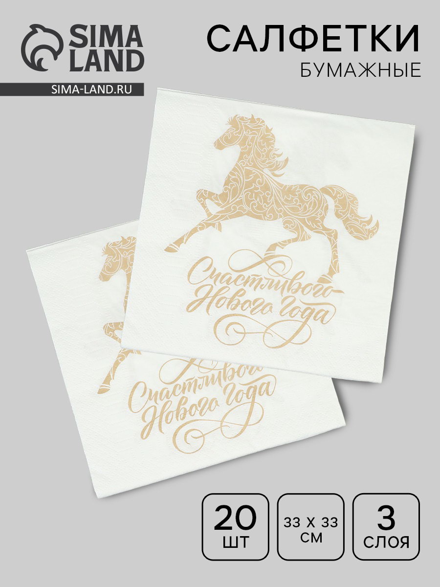 Салфетки бумажные трёхслойные "Счастливый год", 33х33, 20 шт, Страна Карнавалия, Россия