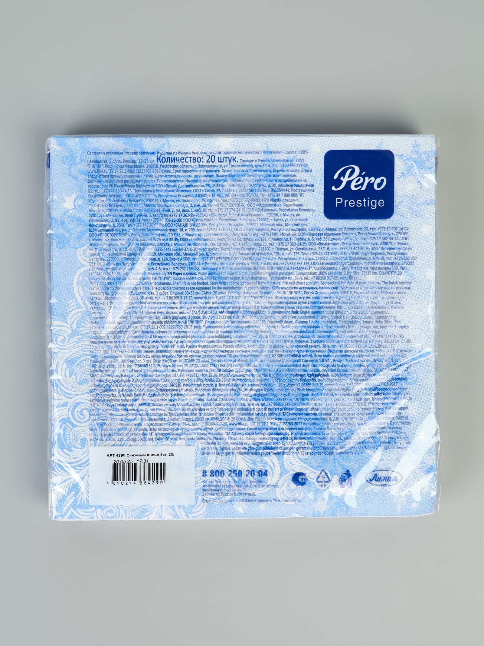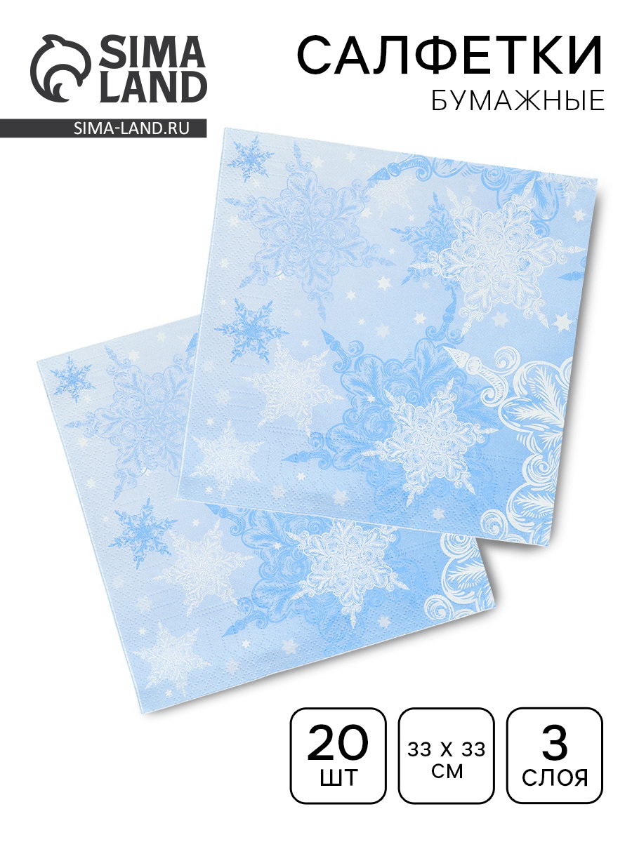 Салфетки бумажные трёхслойные "Снежный вальс" 33х33, 20 шт, Страна Карнавалия, Россия