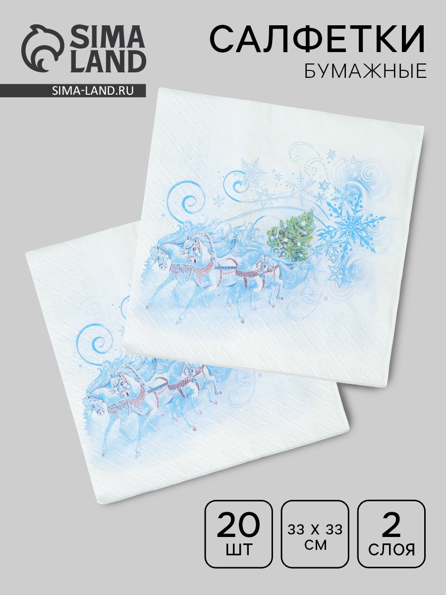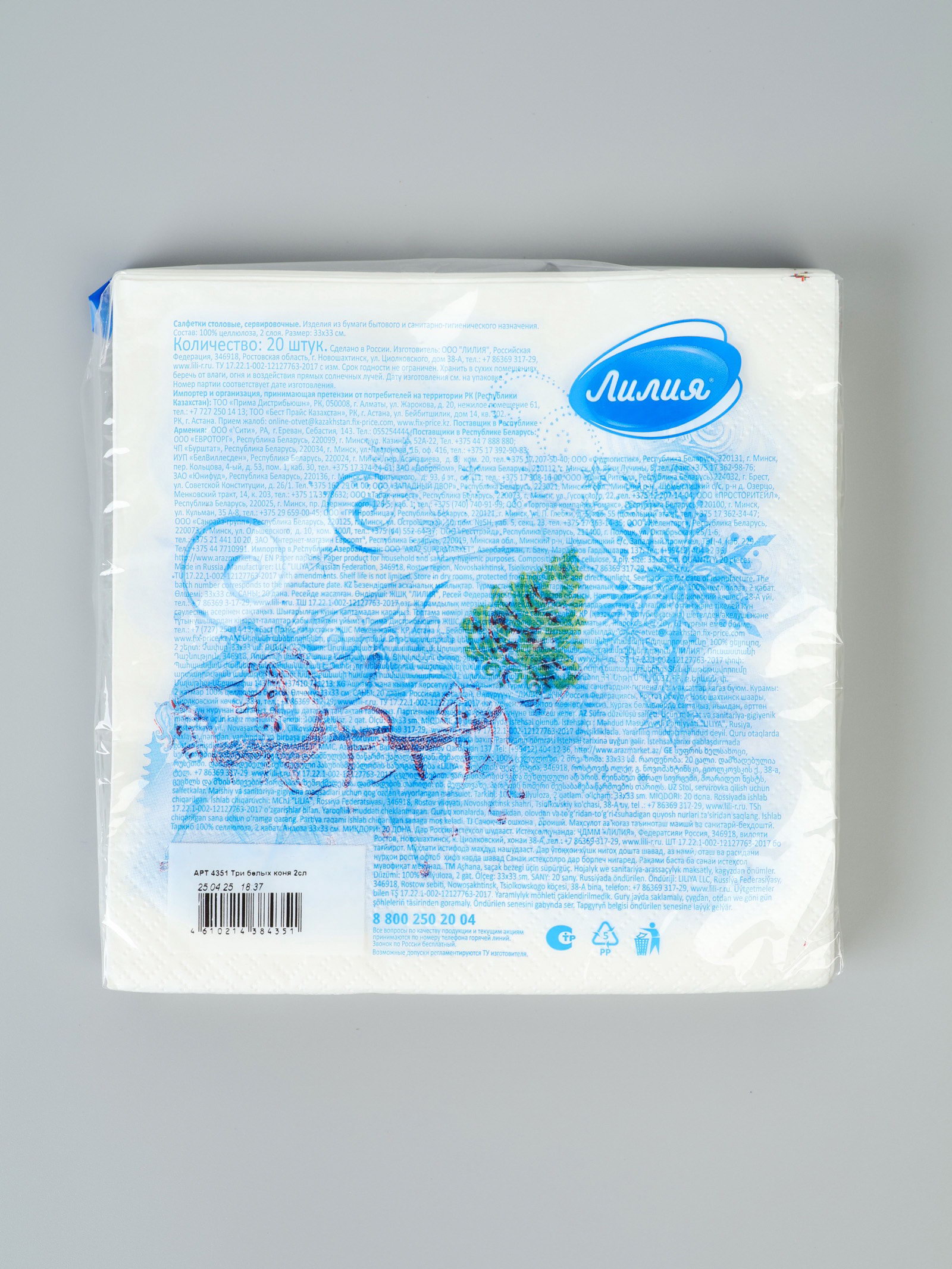 Салфетки бумажные двухслойные "Три белых коня", 33х33, 20 шт, Страна Карнавалия, Россия