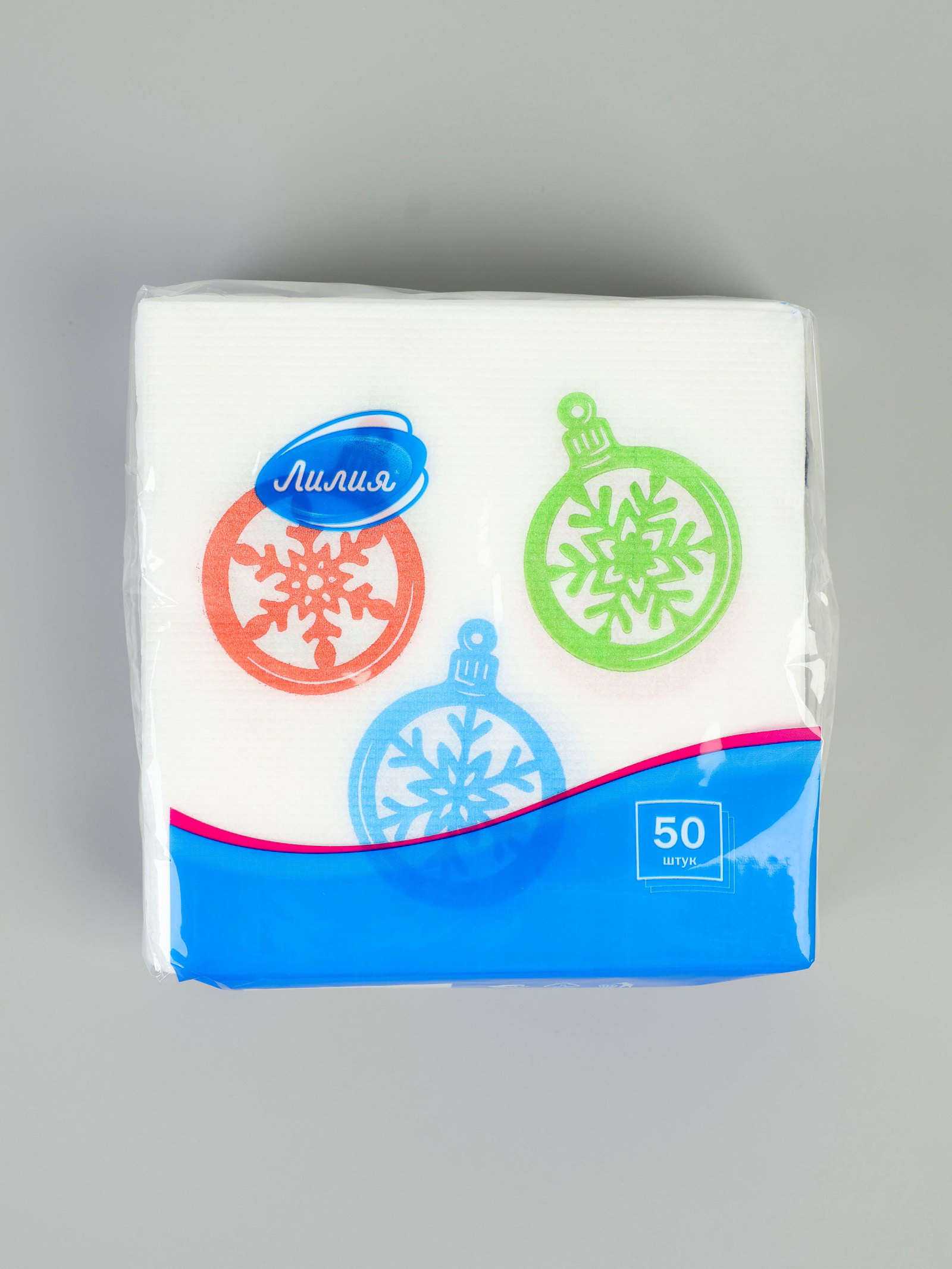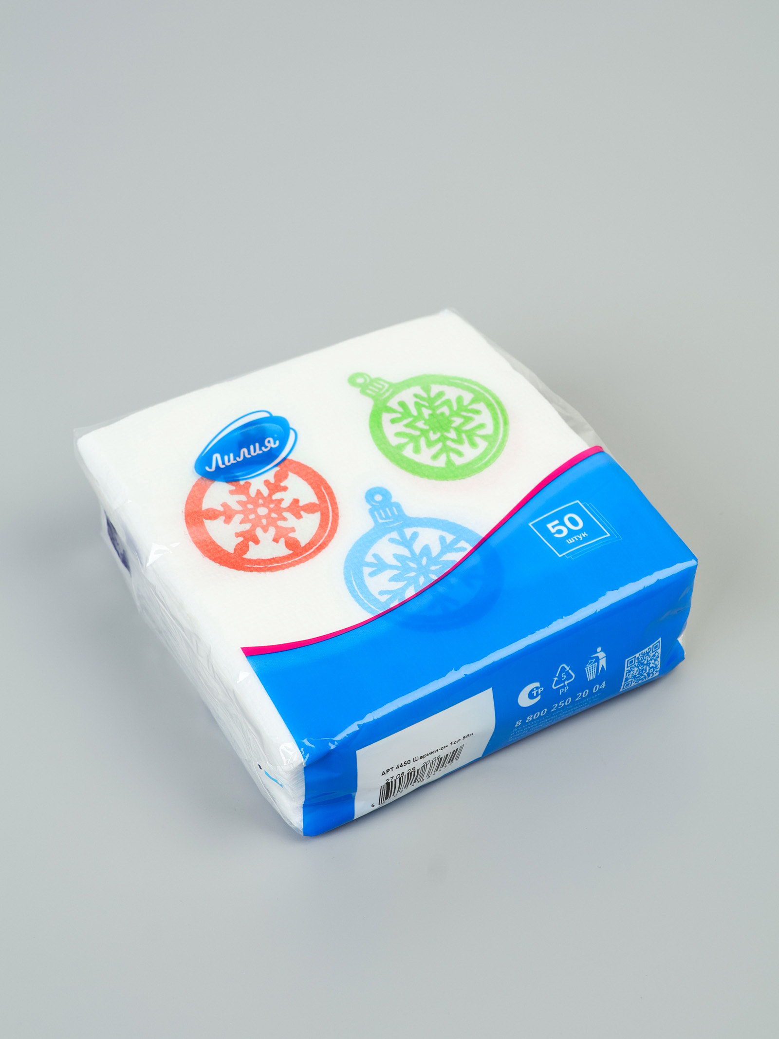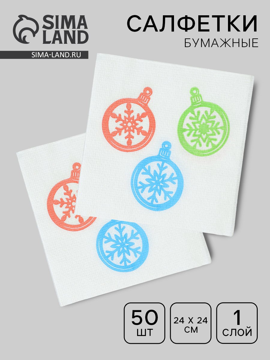 Салфетки бумажные однослойные "Шарики - снежинки", 24х24, 50 шт, Страна Карнавалия, Россия