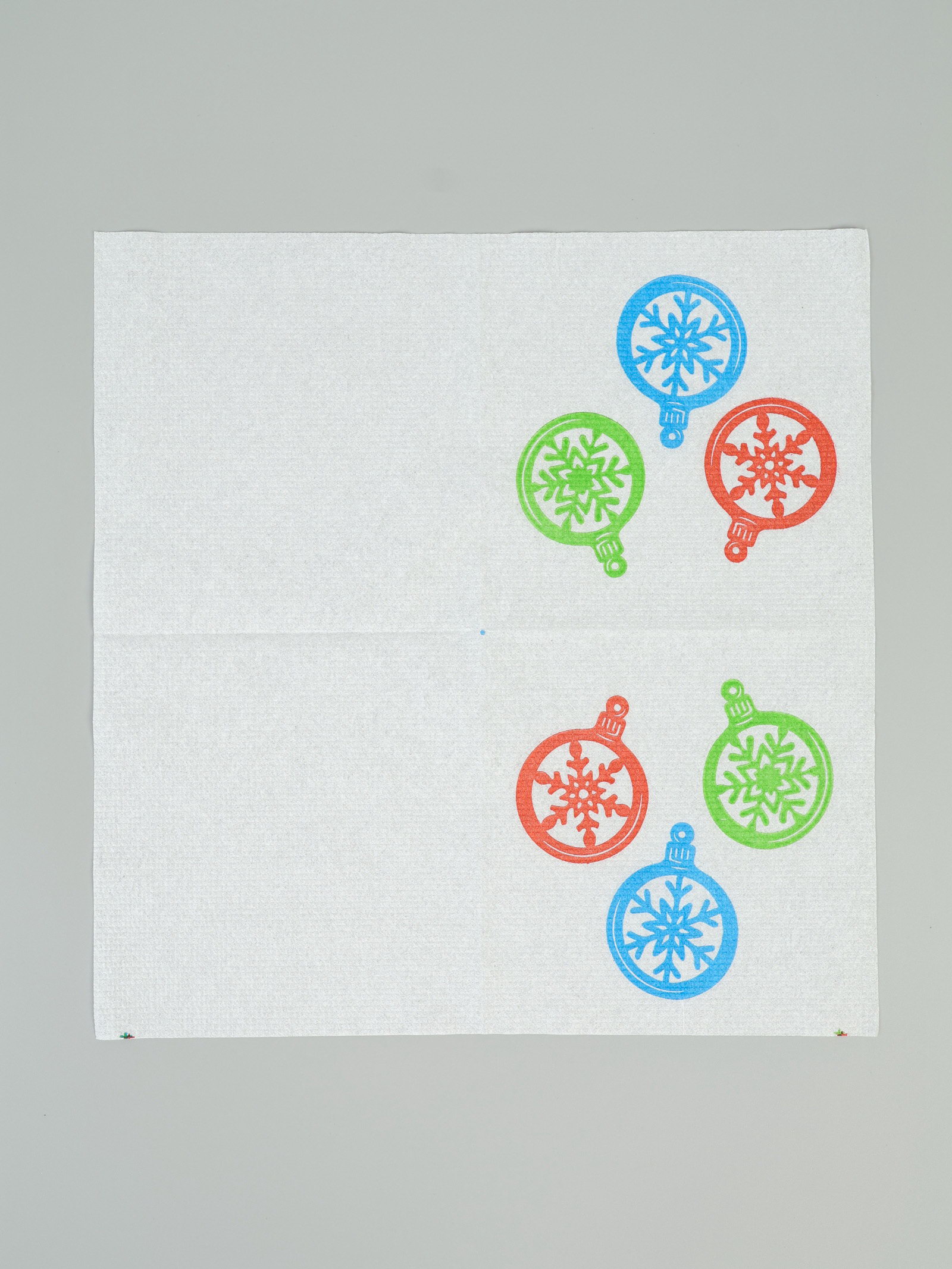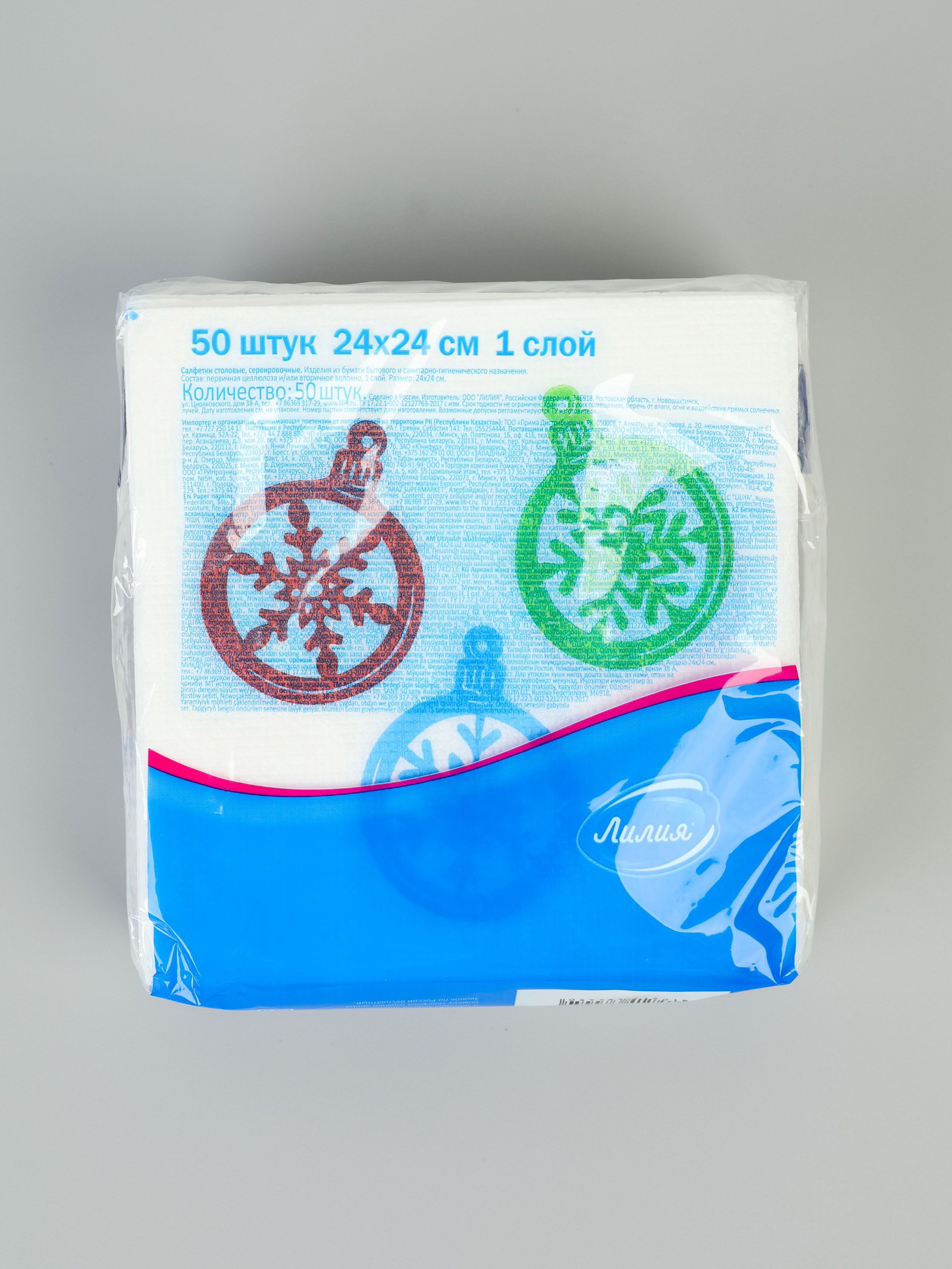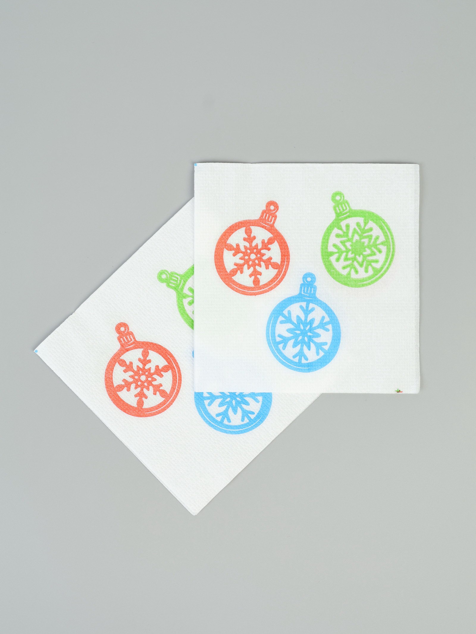 Салфетки бумажные однослойные "Шарики - снежинки", 24х24, 50 шт, Страна Карнавалия, Россия