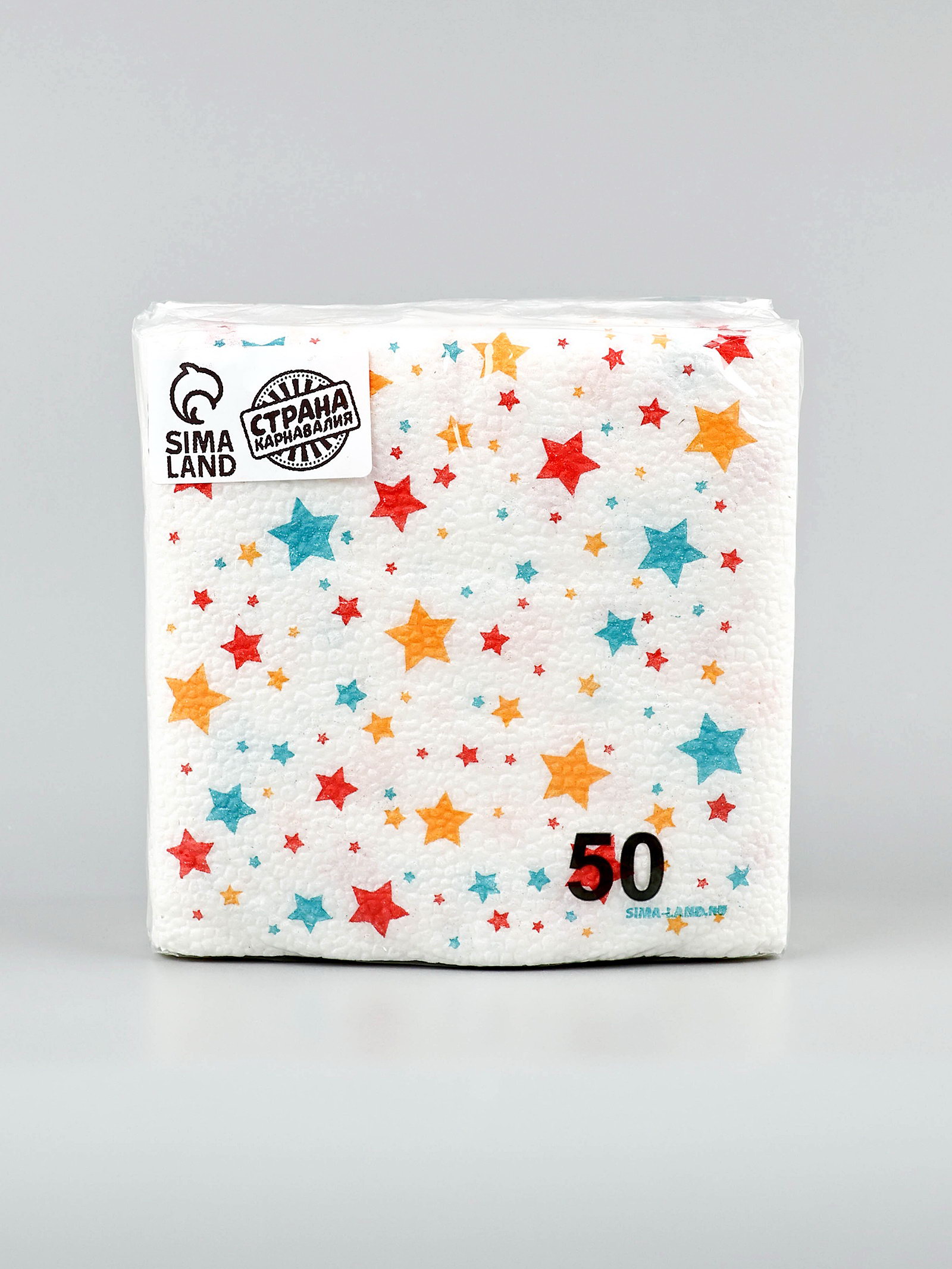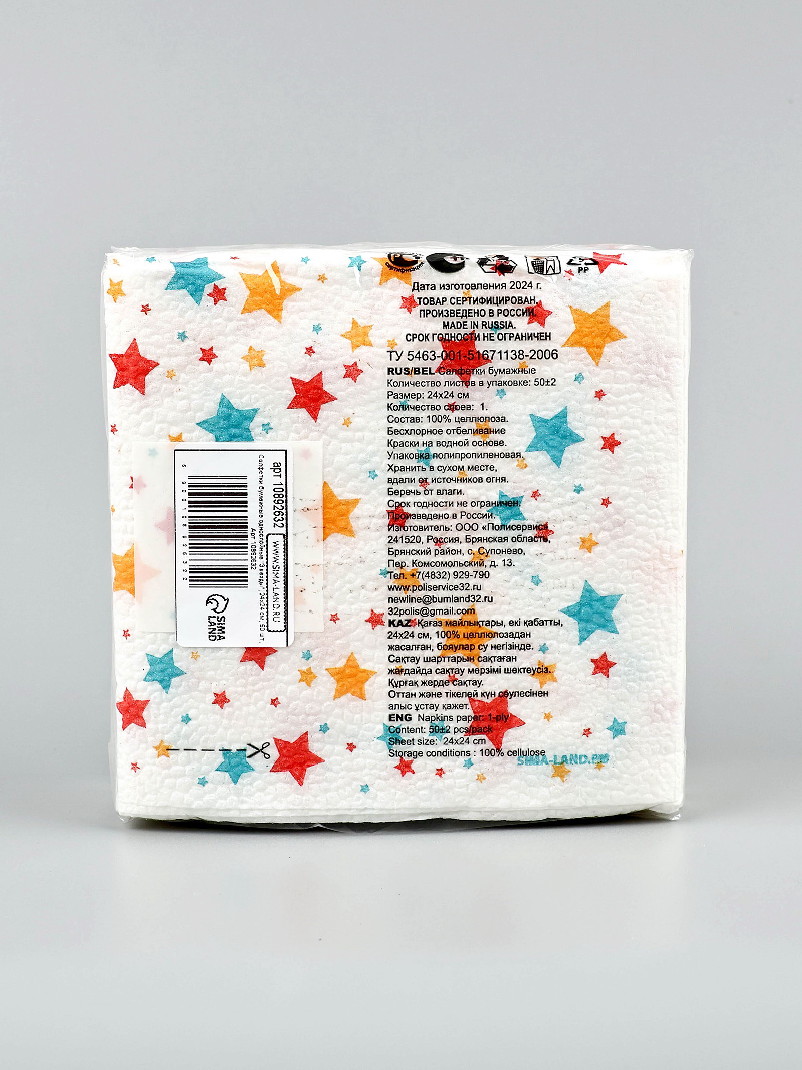 Салфетки бумажные однослойные "Звезды", 24x24 см, 50 шт., Страна Карнавалия, Россия