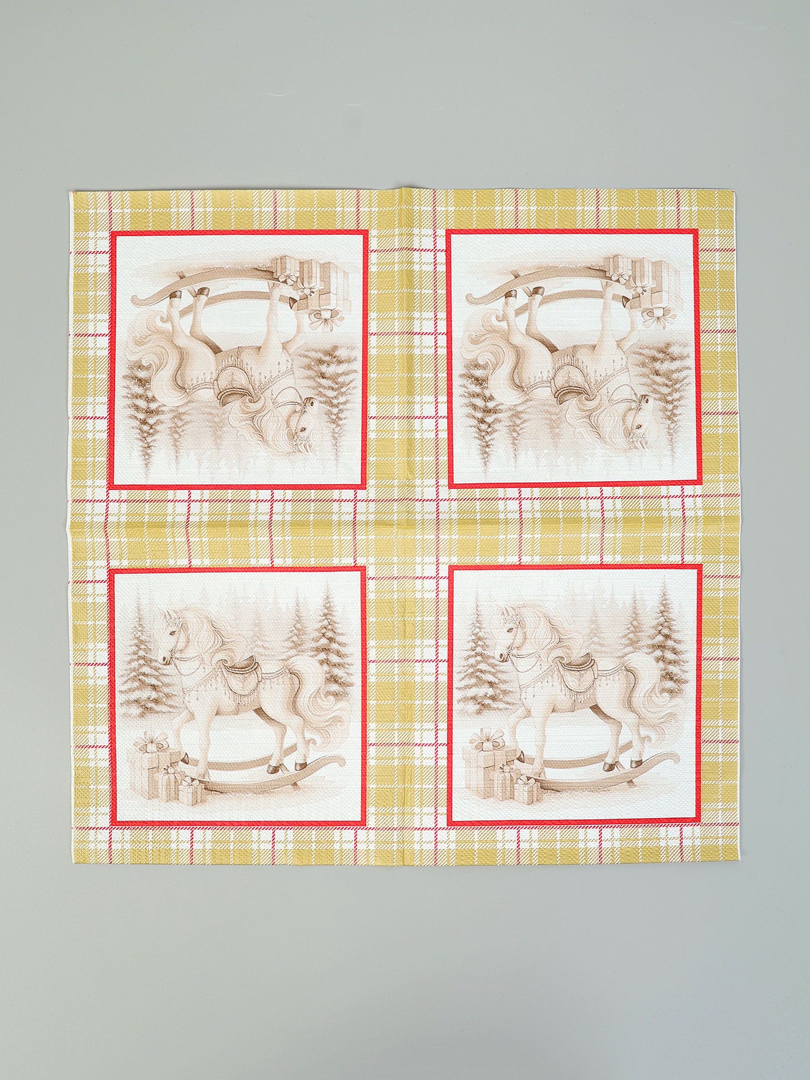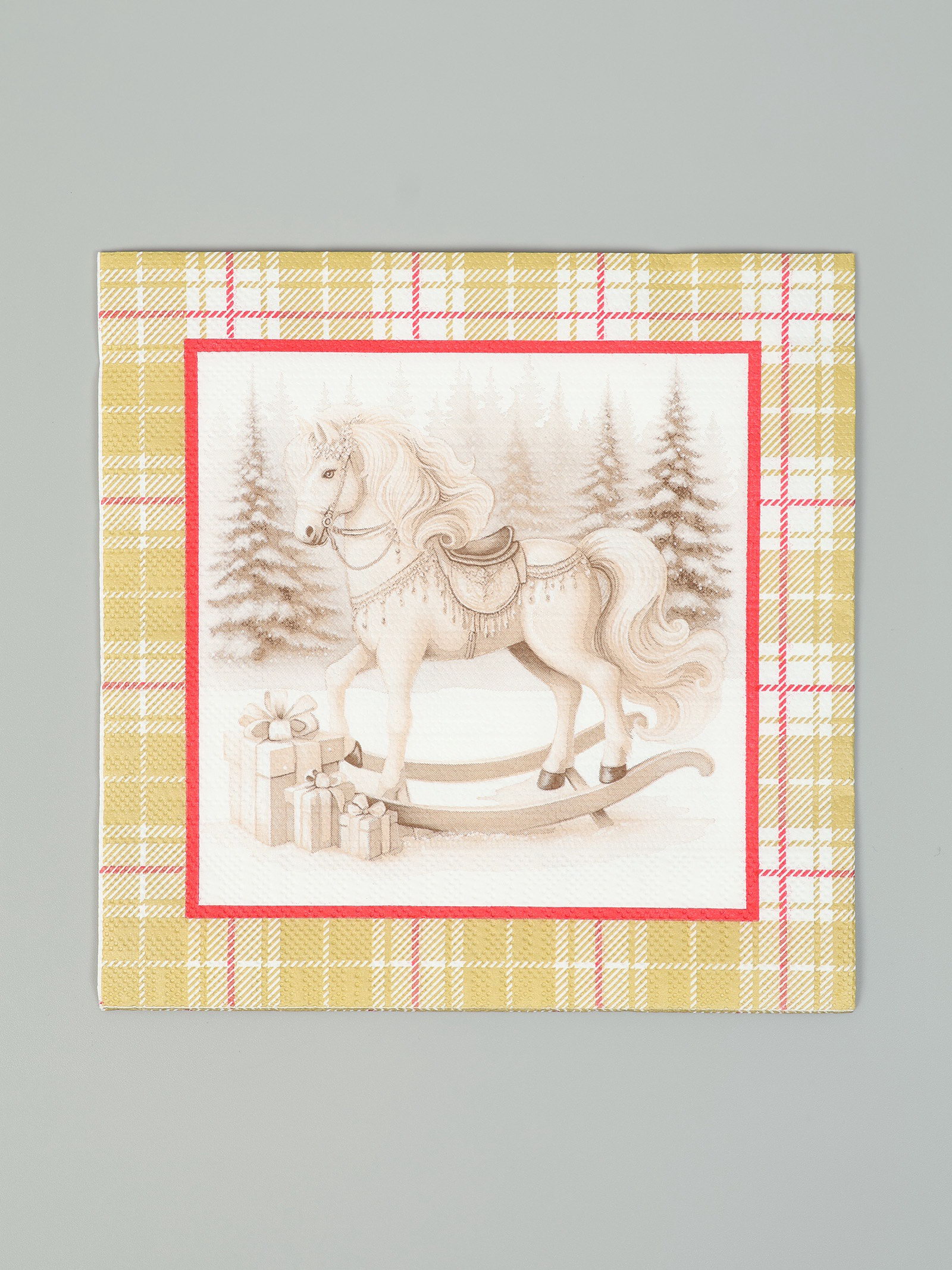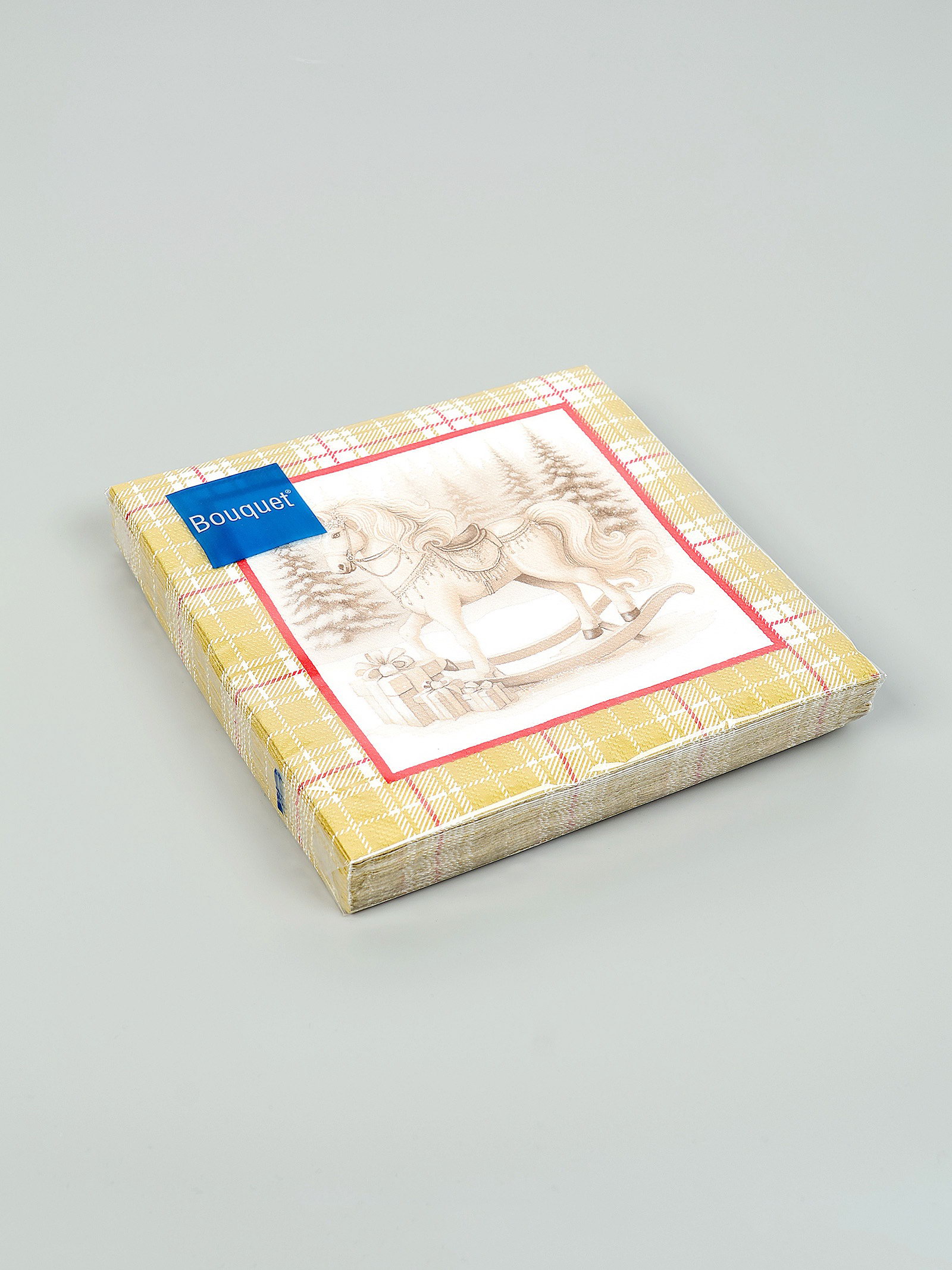 Салфетки бумажные трёхслойные "Скатерть с лошадью на золоте", 33x33, 20 шт., Россия