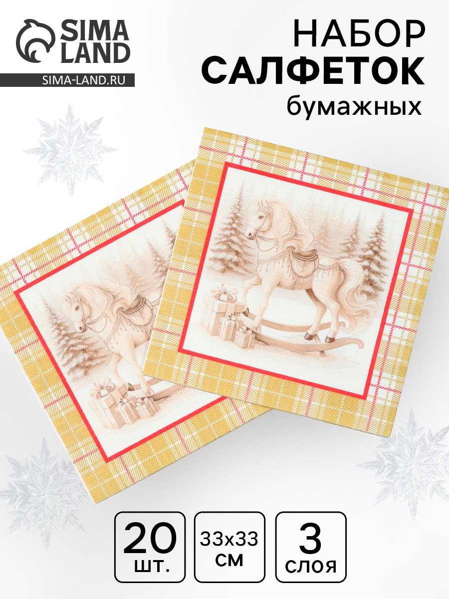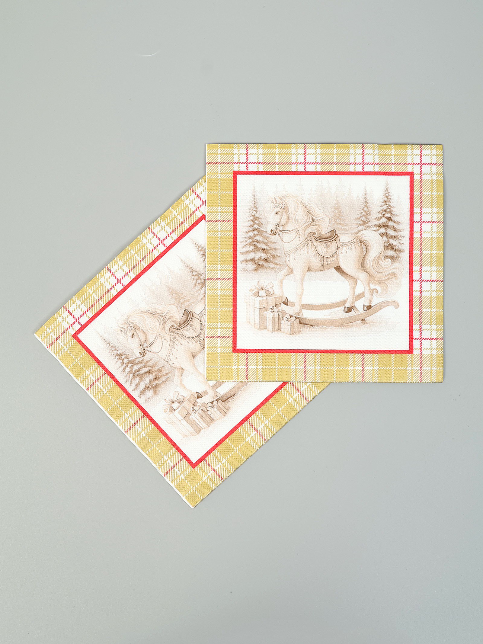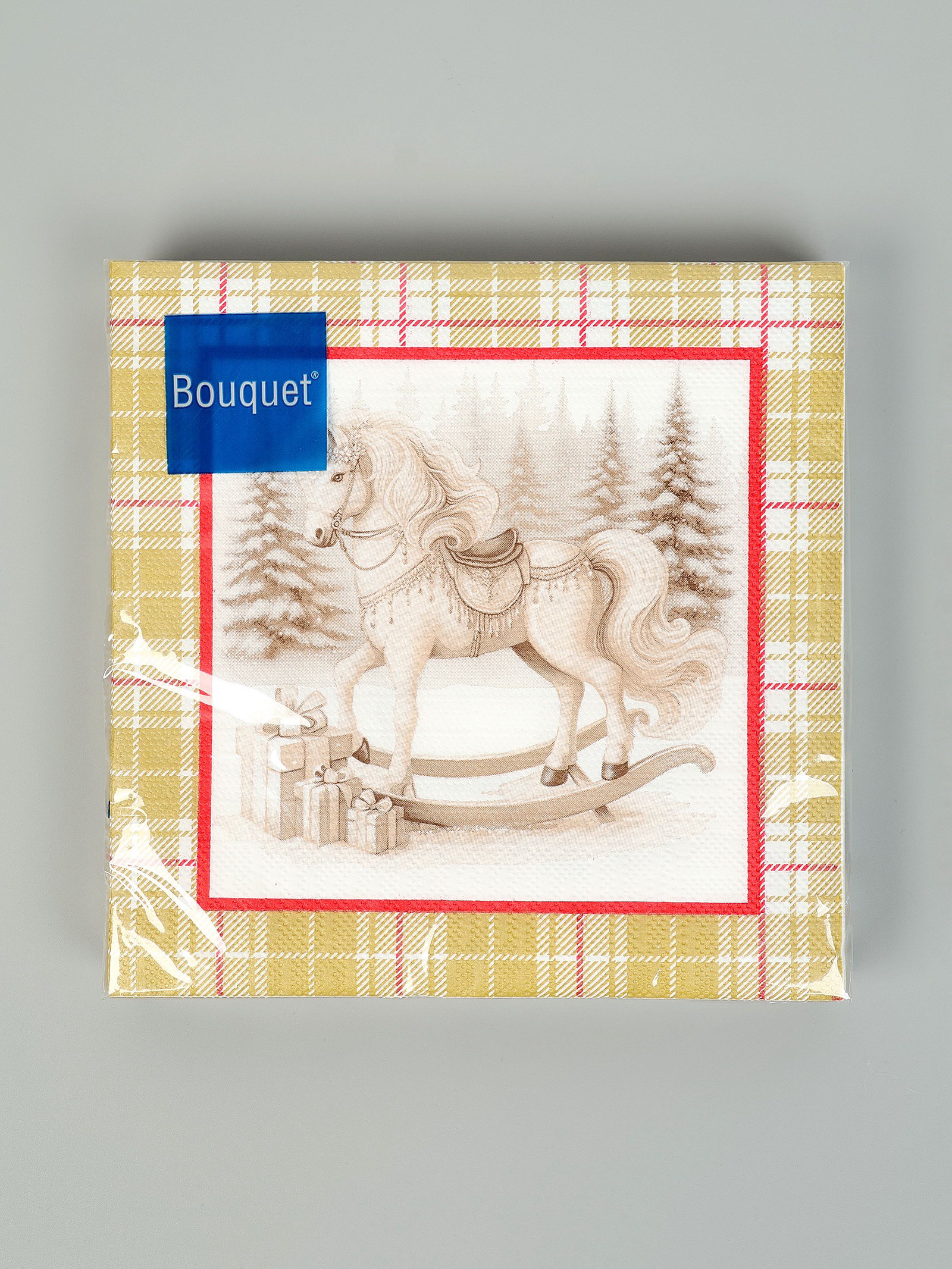 Салфетки бумажные трёхслойные "Скатерть с лошадью на золоте", 33x33, 20 шт., Россия