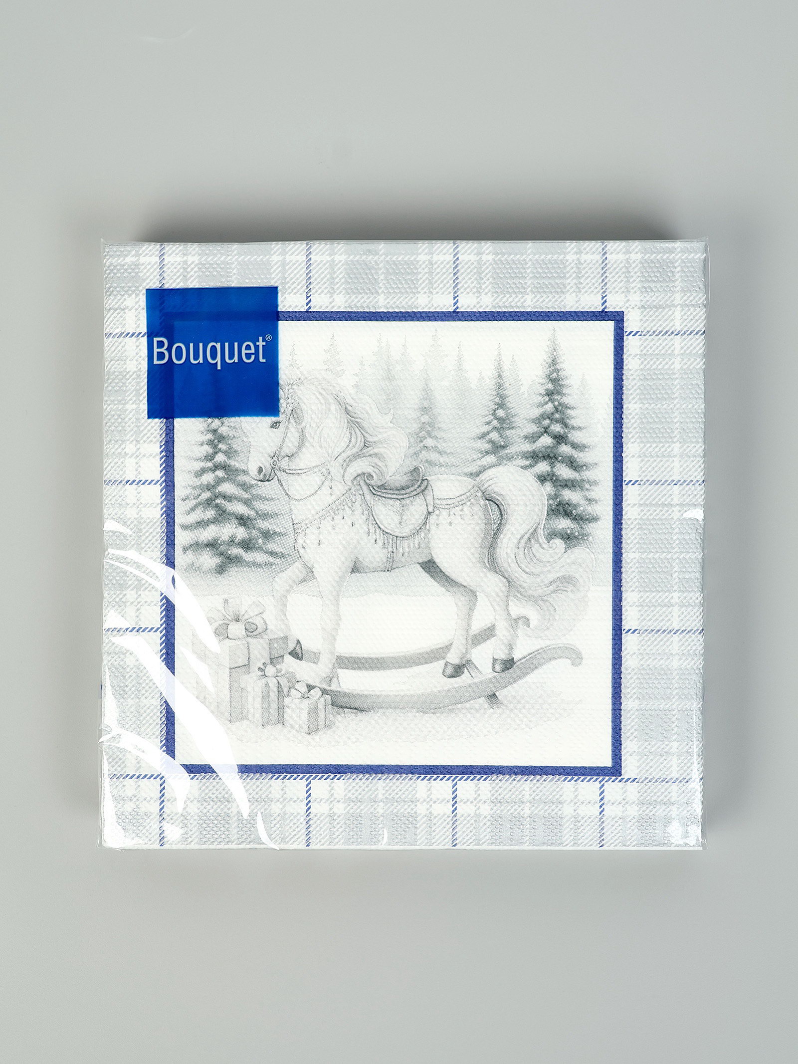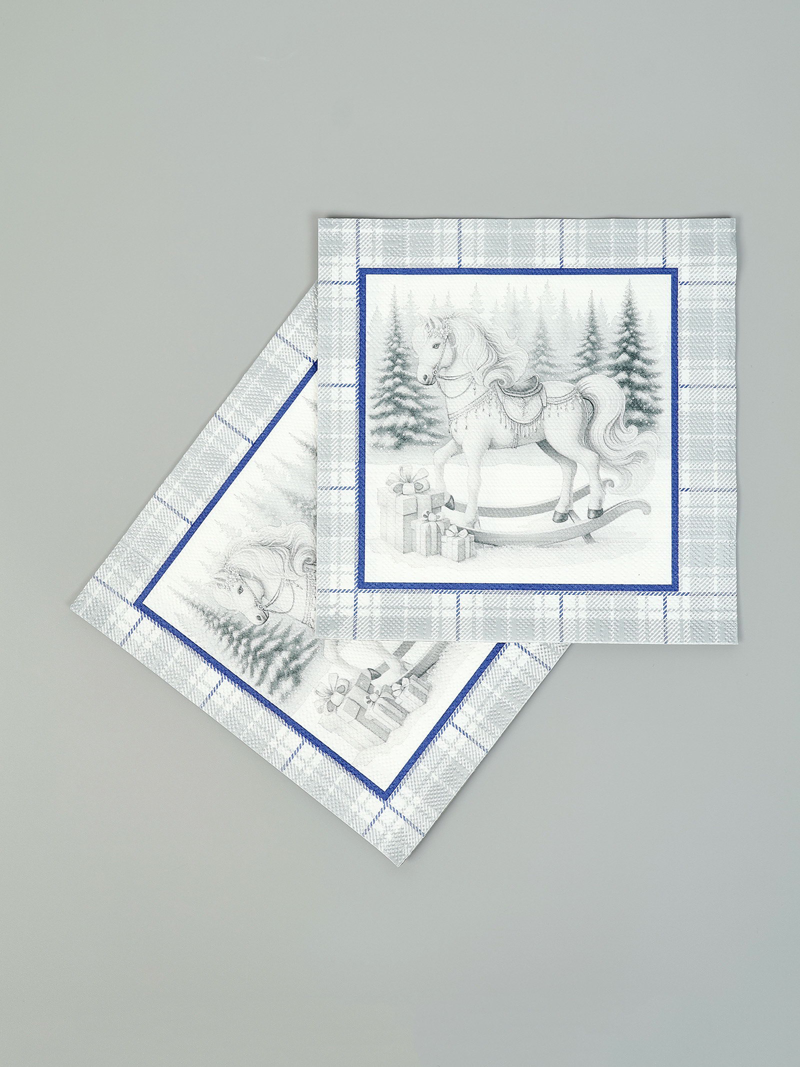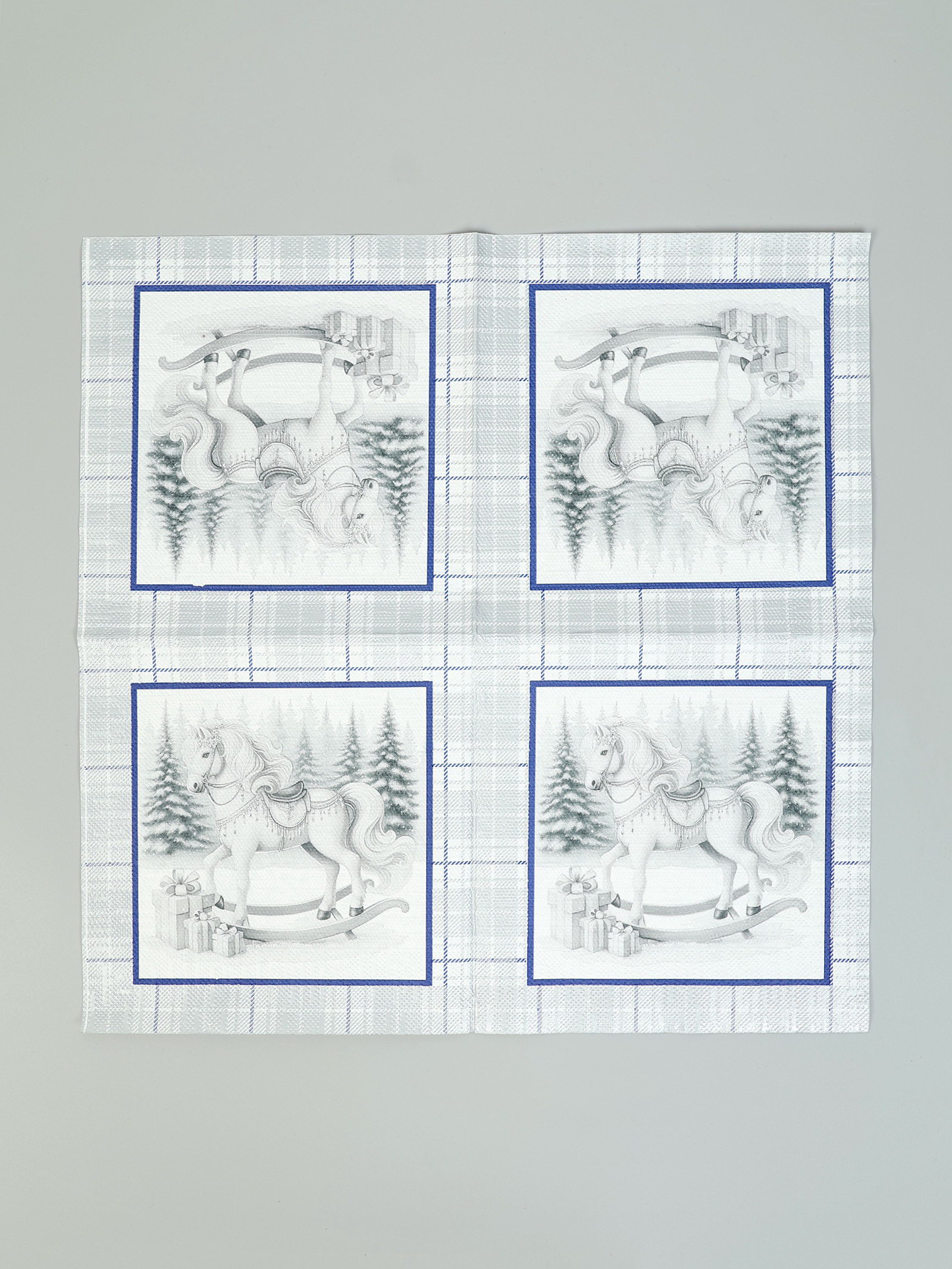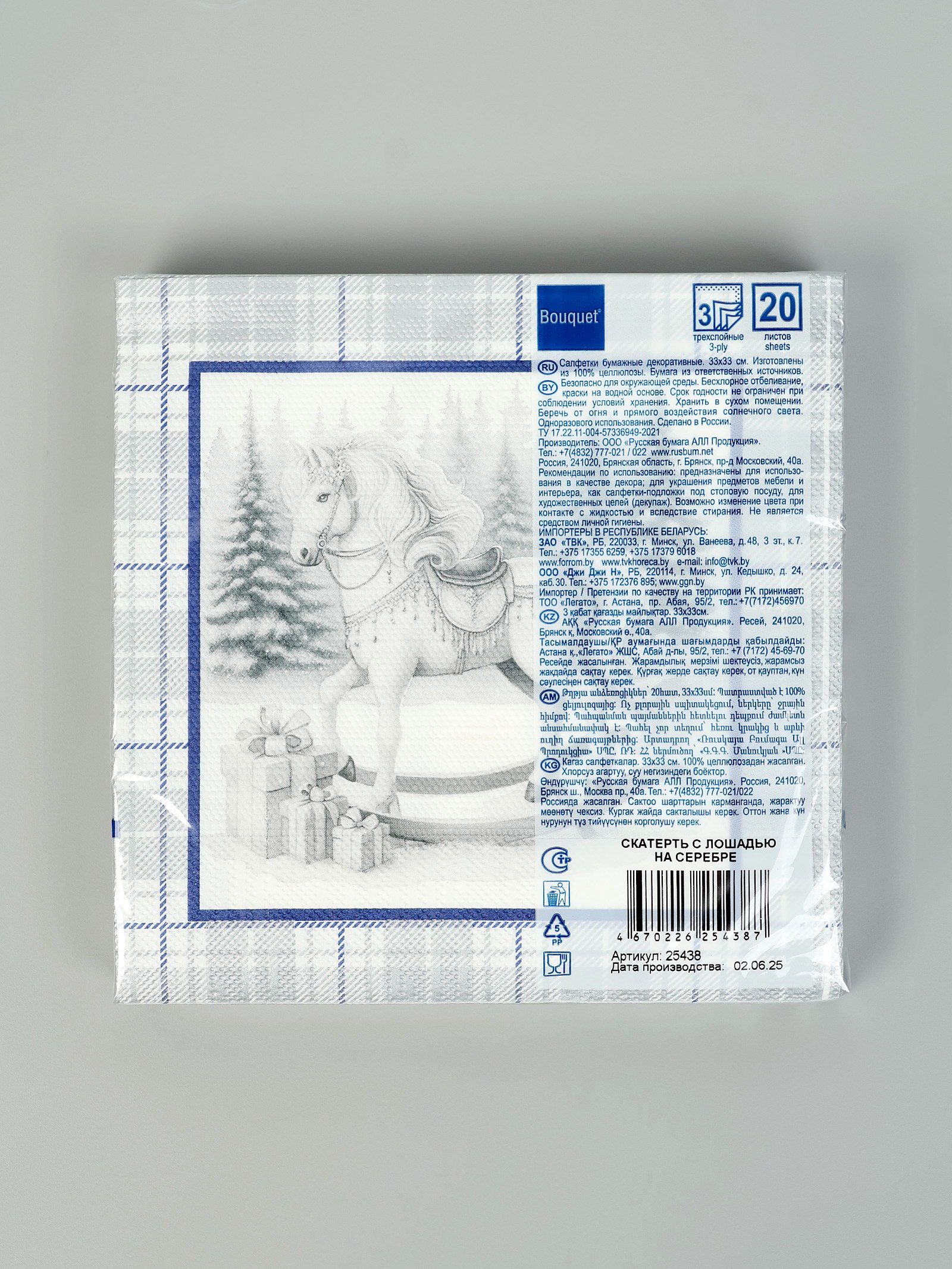 Салфетки бумажные трёхслойные "Скатерть с лошадью на серебре", 33x33, 20 шт., Россия