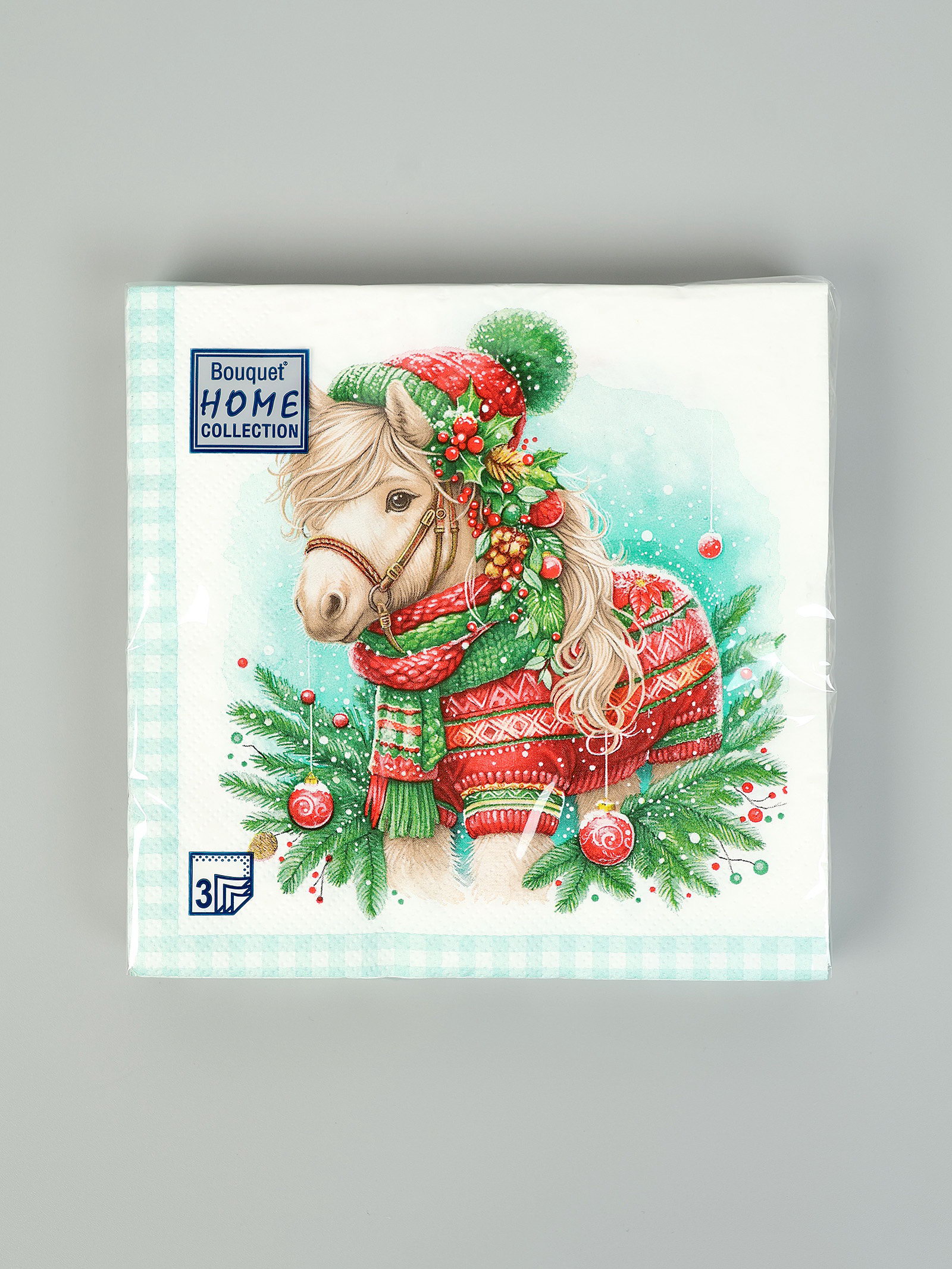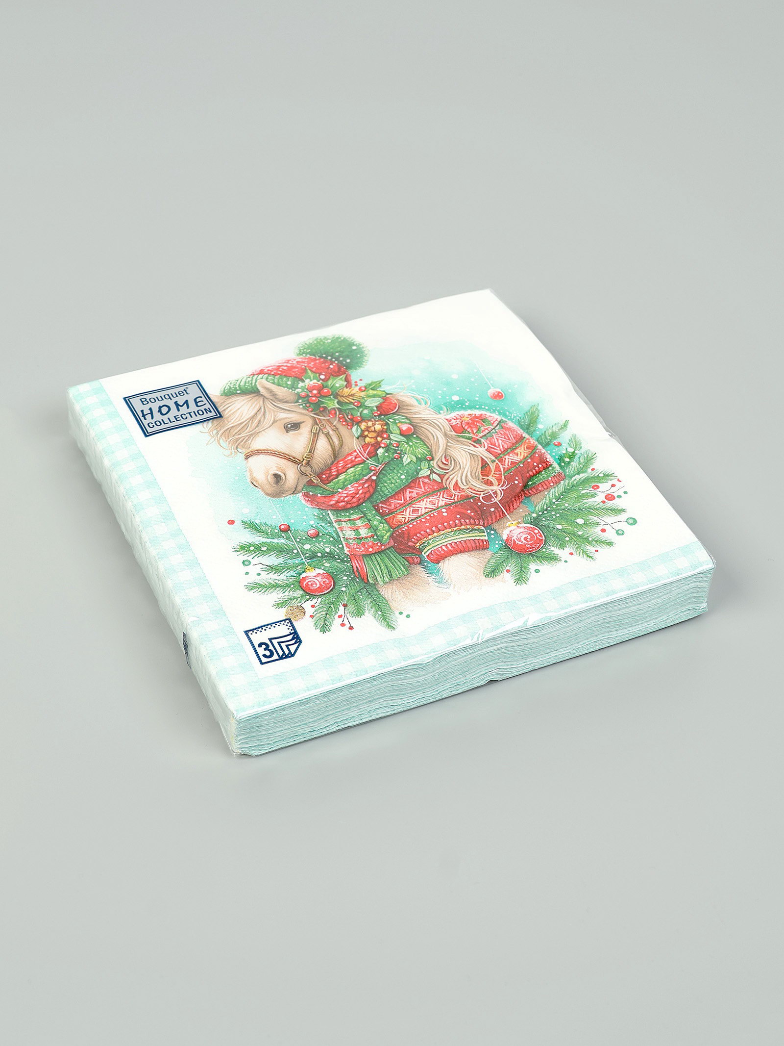 Салфетки бумажные трёхслойные "Новогодний пони", 33x33, 20 шт., Россия