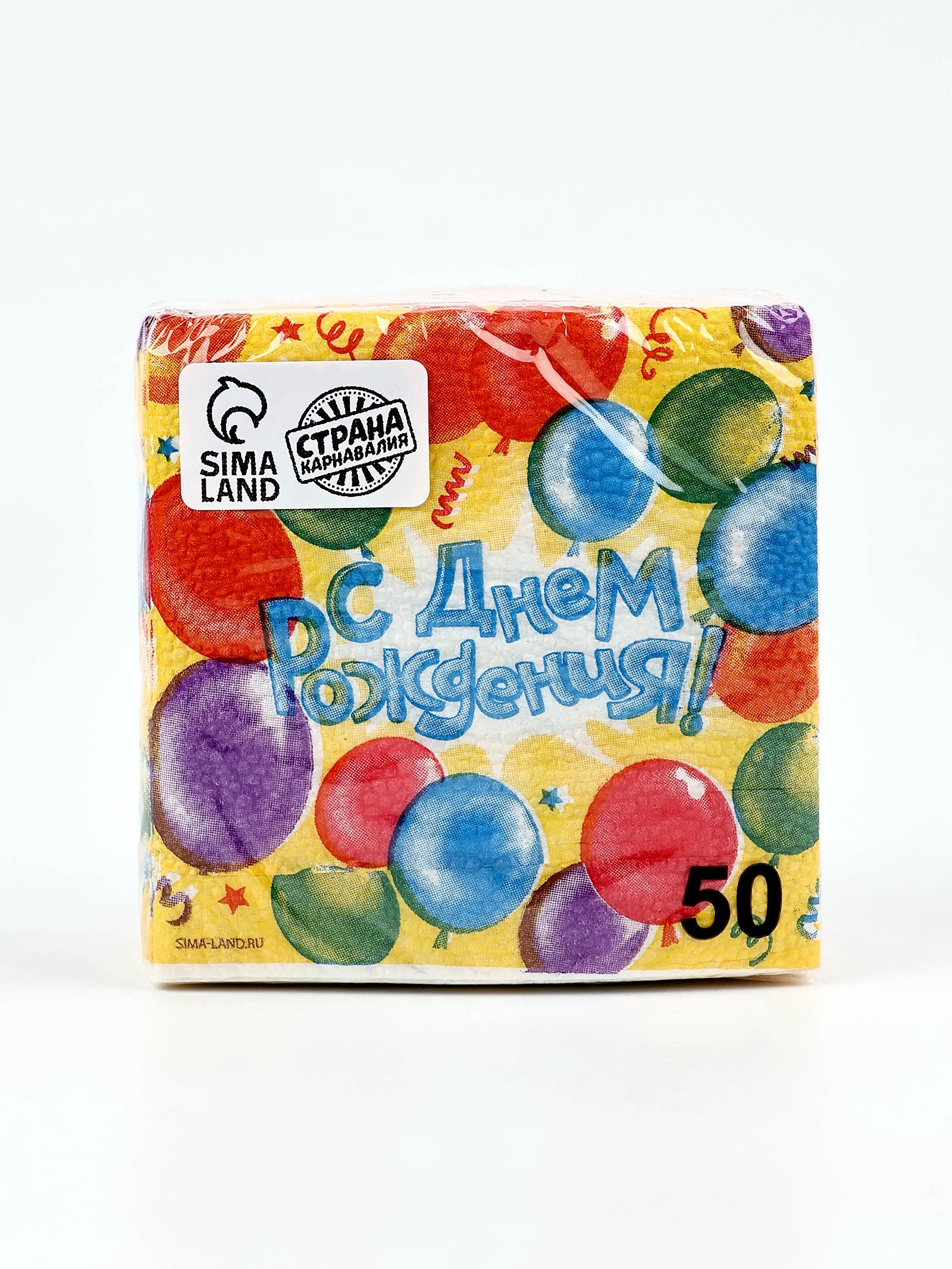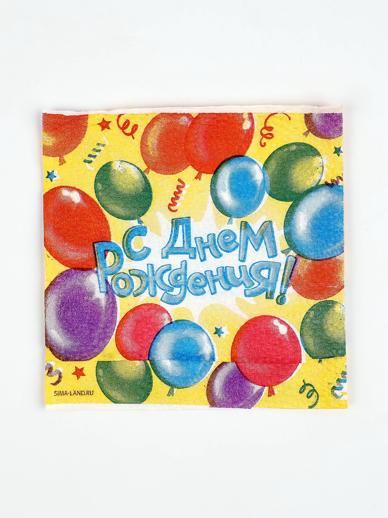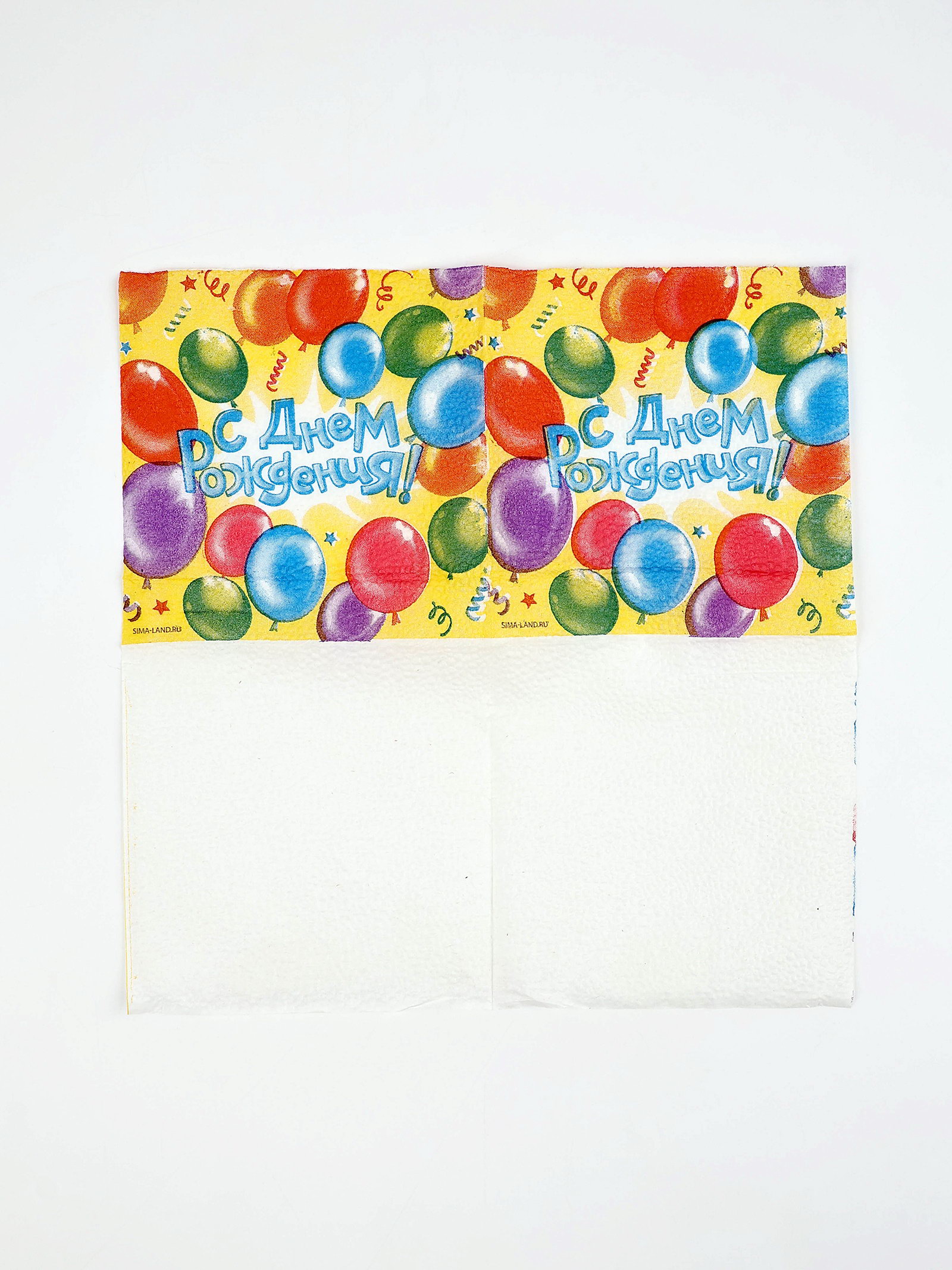 Салфетки бумажные однослойные "С днем рождения", воздушные шары, 24х24 см, 50 шт, Страна Карнавалия, Россия