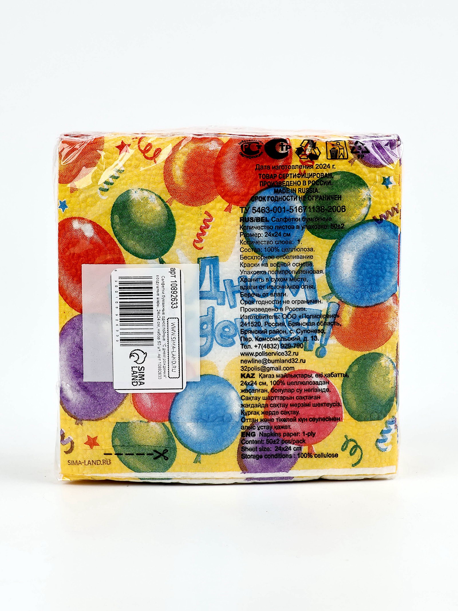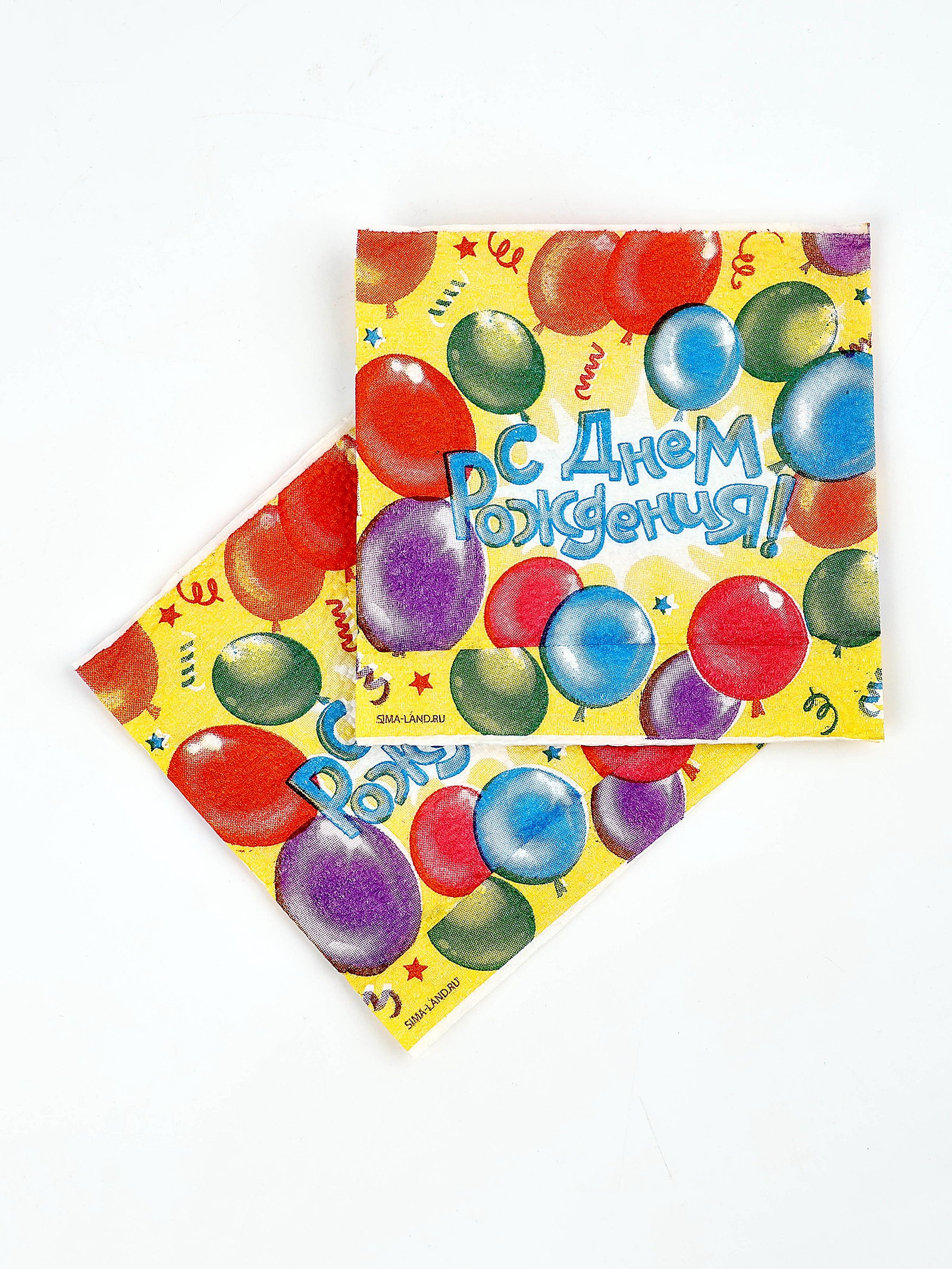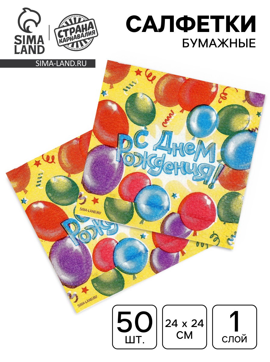Салфетки бумажные однослойные "С днем рождения", воздушные шары, 24х24 см, 50 шт, Страна Карнавалия, Россия