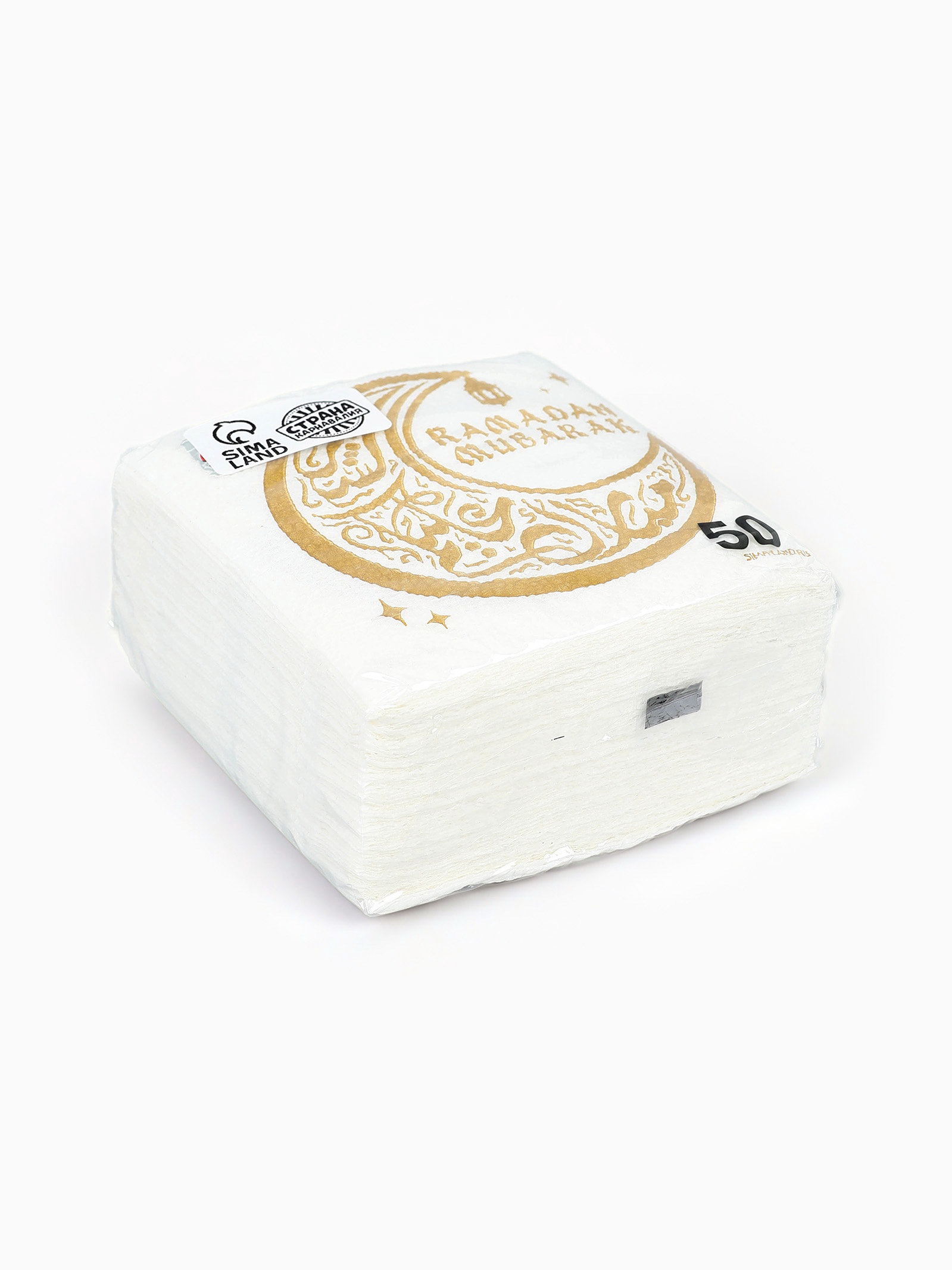Салфетки бумажные однослойные "Ramadan Mubarak", белые с золотом, 24х24 см, 50 шт, Страна Карнавалия, Россия