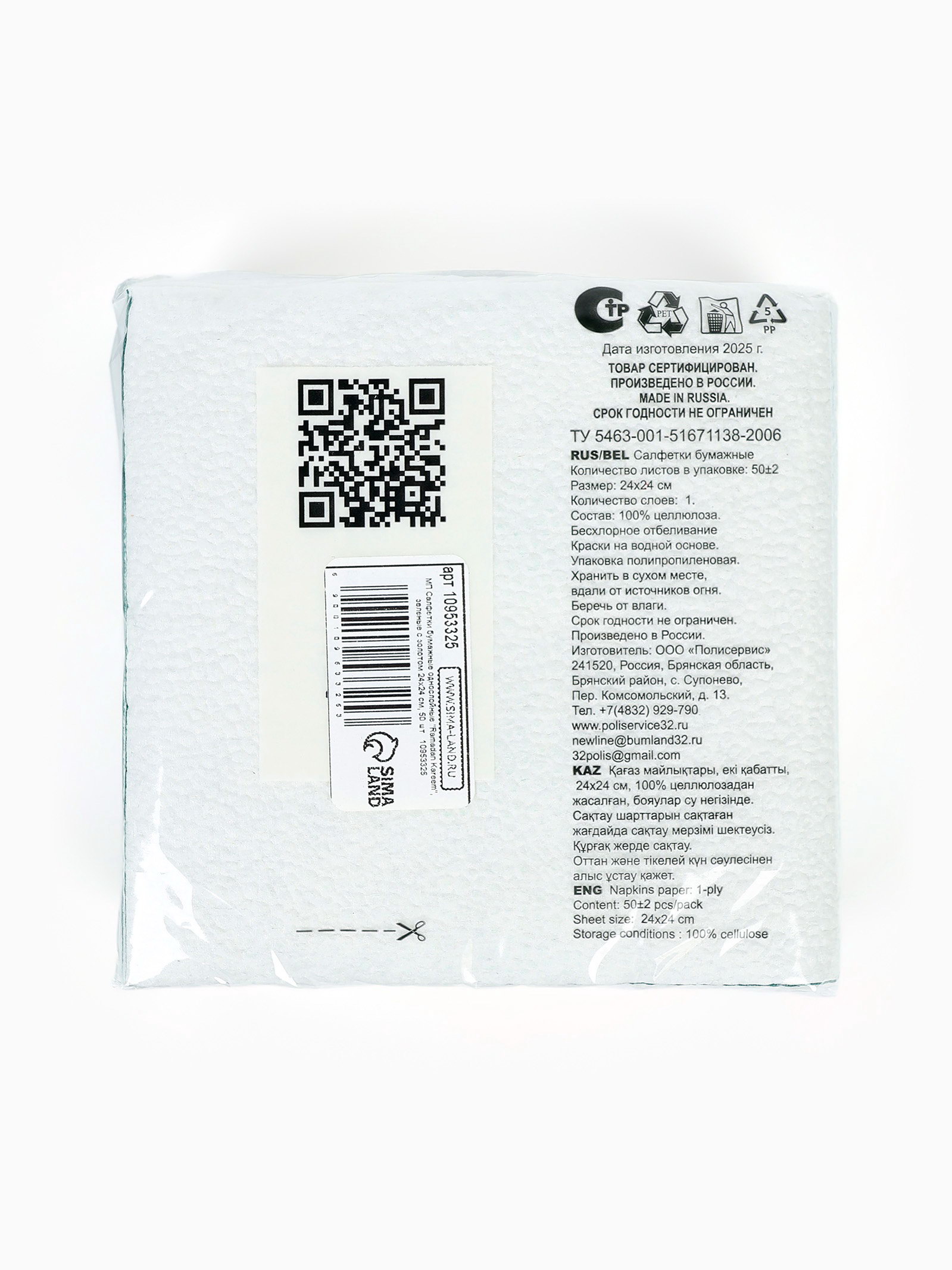 Цвет: Зелёный, Золотистый Размер упаковки: 12 x 6 x 12 см. tnved: 9505900000 Размер, см: 24 x 24 Тип бумаги: Однослойная Вид: С рисунком В наборе, шт.: 50 Символ года: Нет Тематика: Мусульманская Фасовка, шт.: 50 | ||