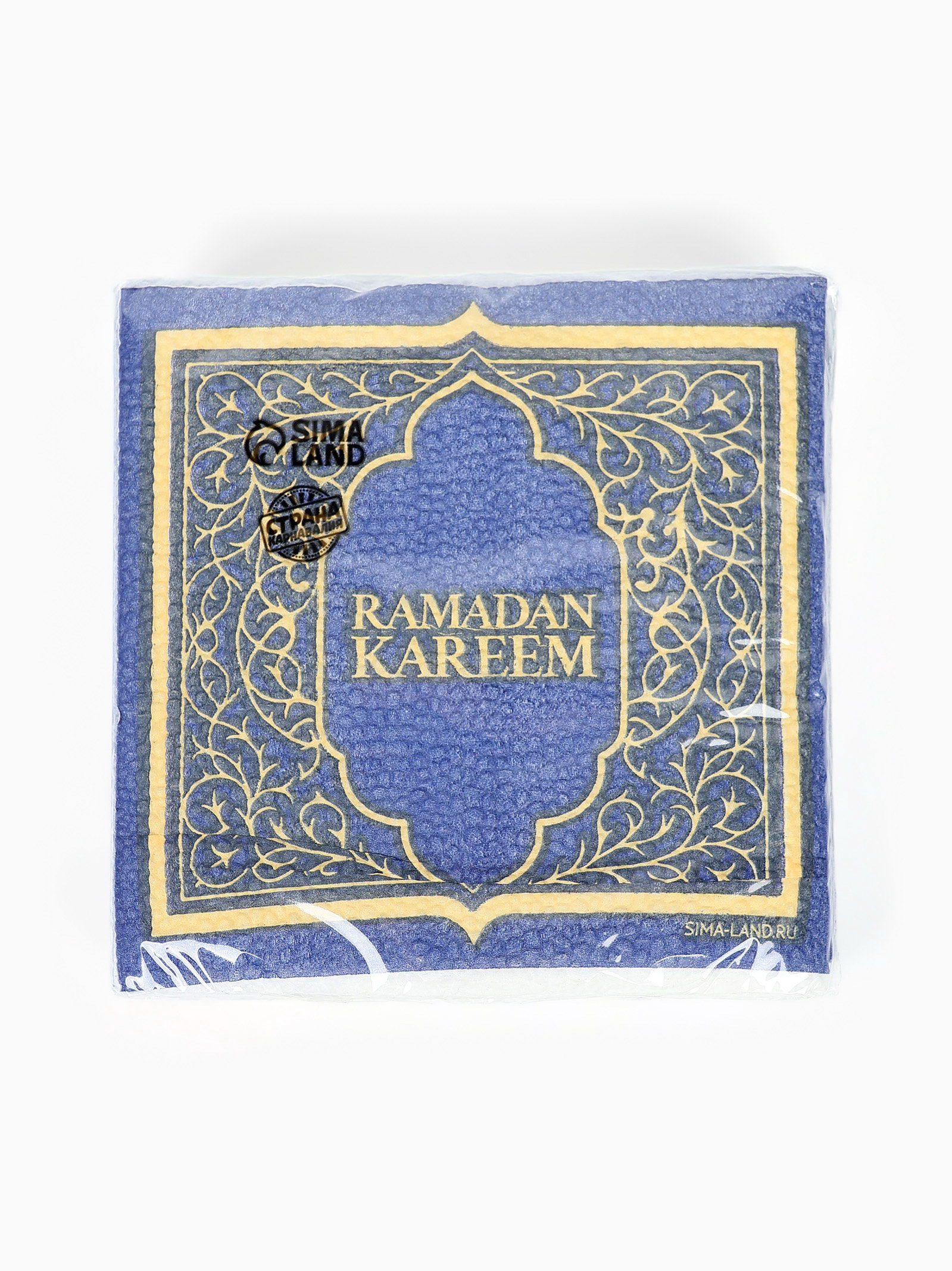Салфетки бумажные однослойные "Ramadan", синие с золотом, 24x24 см, 20 шт., Страна Карнавалия, Россия