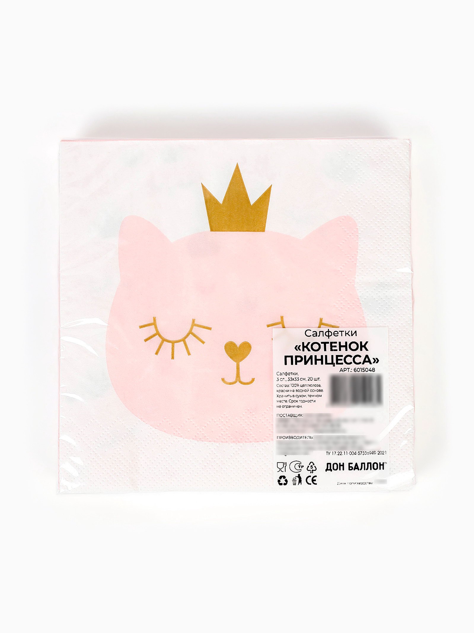 Салфетки бумажные трёхслойные "Котенок Принцесса", 33х33 см, 20 шт, Китай