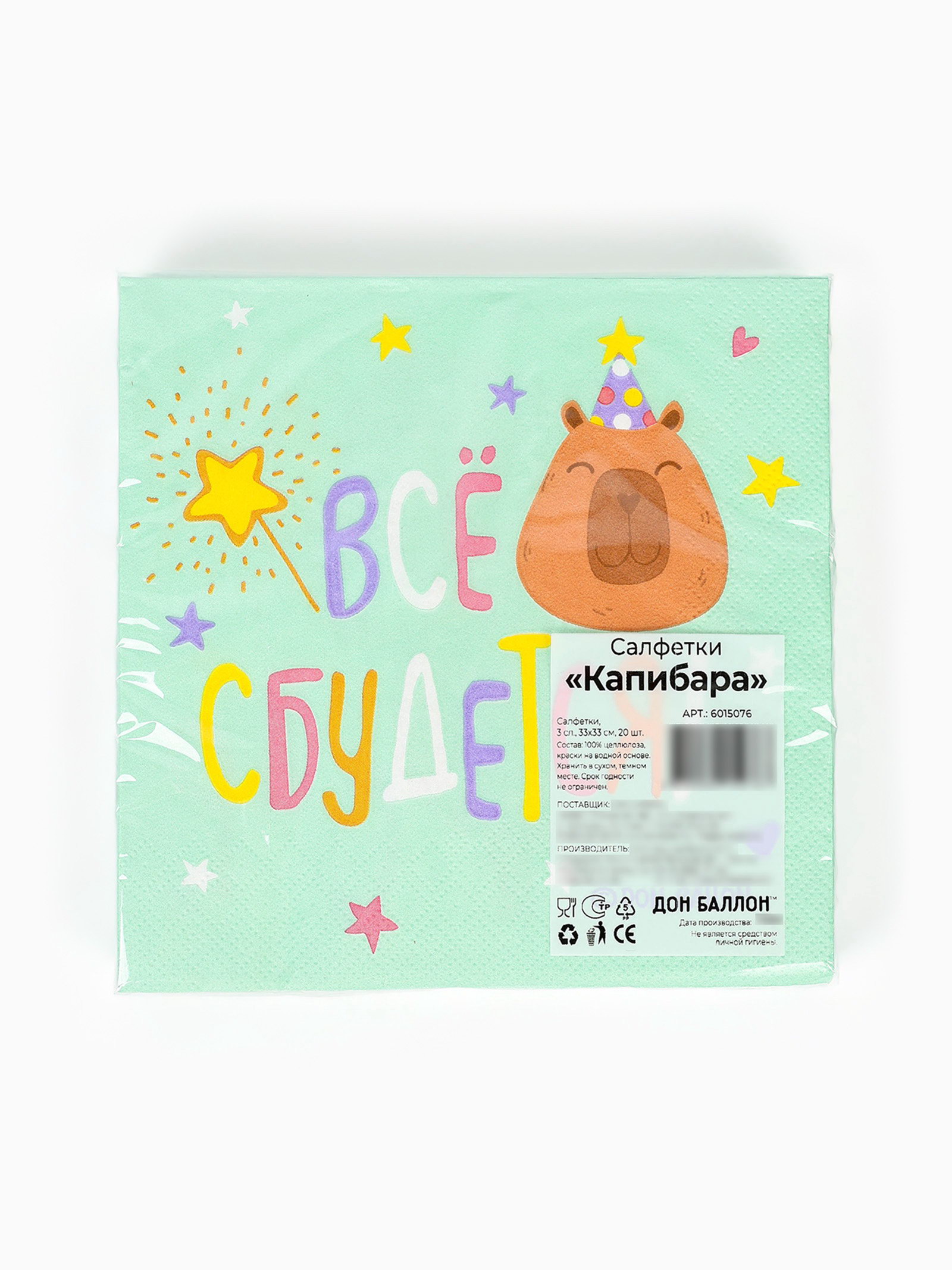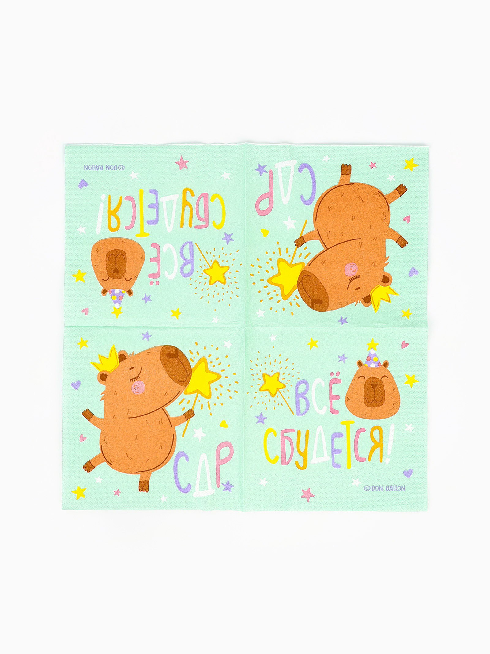 Салфетки бумажные трёхслойные "Капибара", 33х33 см, 20 шт., Китай