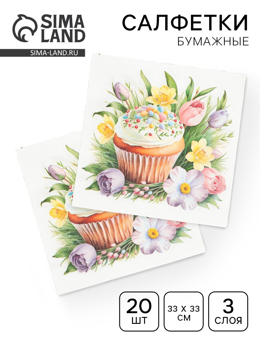 Салфетки бумажные пасхальные "Весенний кекс", 3 слоя, 33х33, 20 шт, Россия
