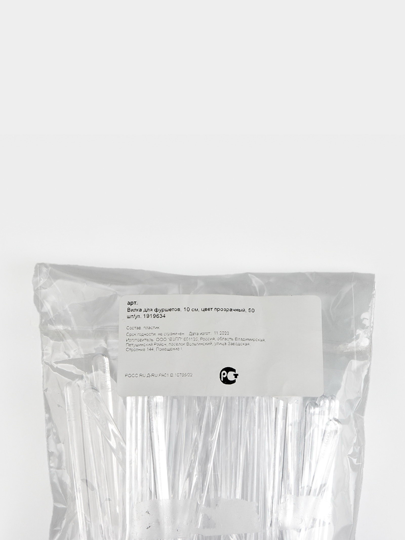 Вилка одноразовая для фуршета, набор 50 шт., 10 см, пластик, прозрачная, 10x12x3 см., Россия