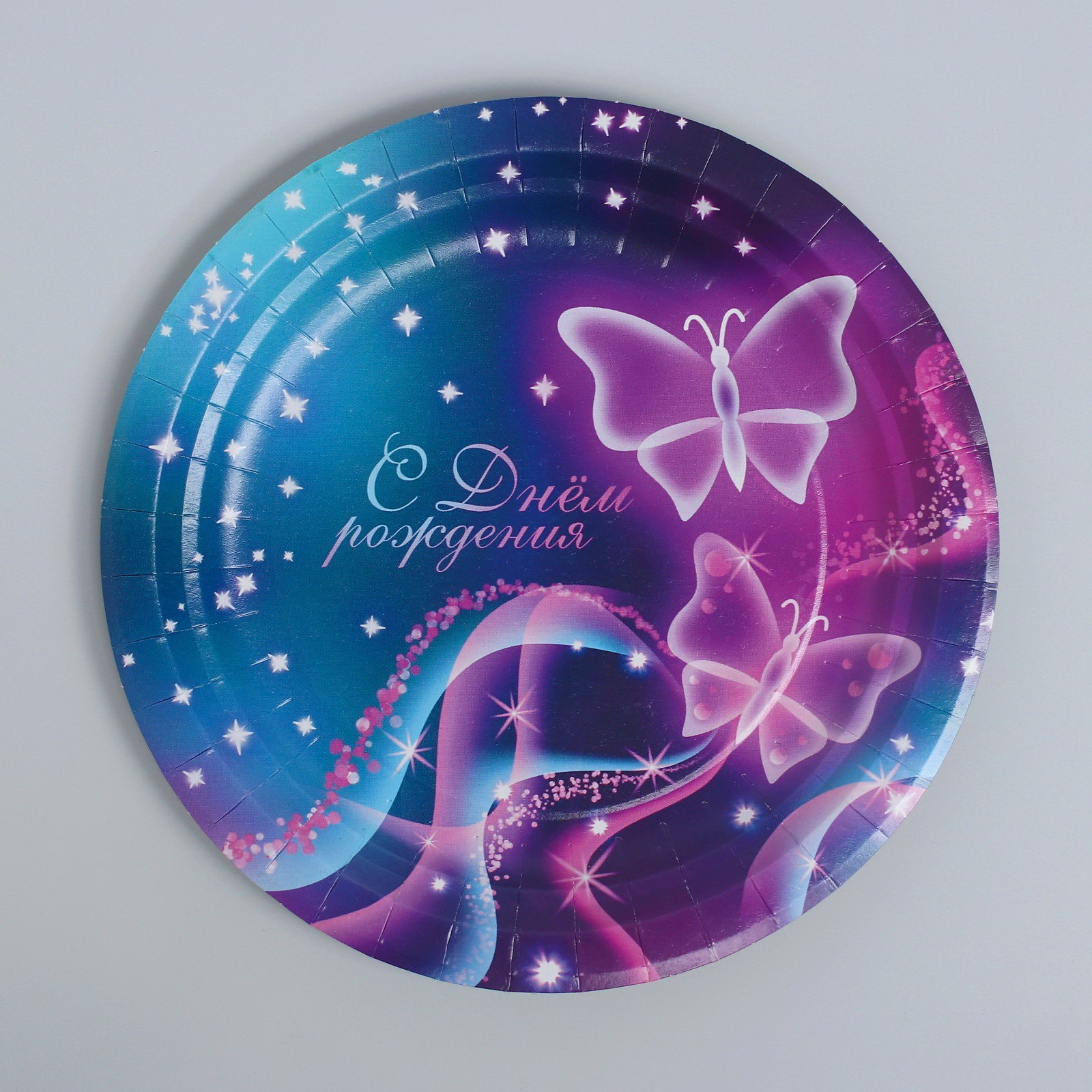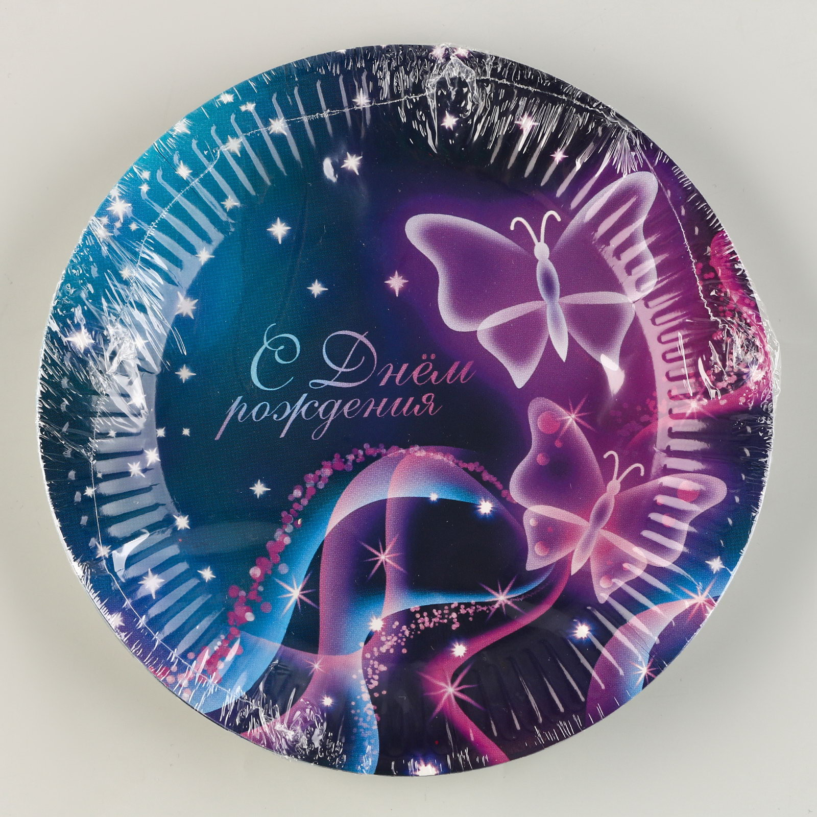 Тарелка одноразовая бумажная "С Днём Рождения", 18 см, 18 см., Страна Карнавалия, Россия