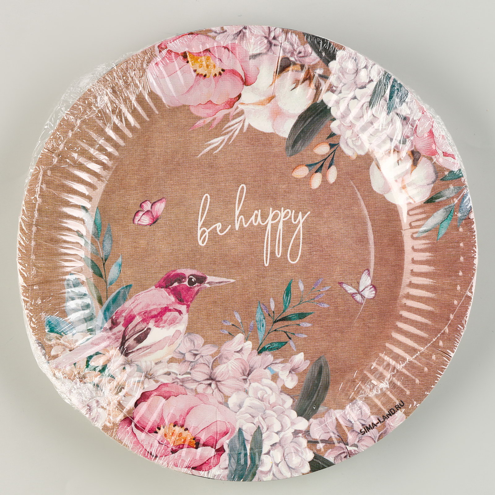 Тарелка одноразовая Flowers, крафтовая, однослойная, 18 см, 18 см., Страна Карнавалия, Россия