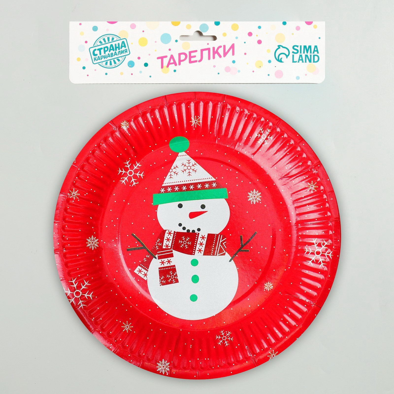 Тарелка бумажная "Снеговик", набор 6 шт., 18х18х1 см., Страна Карнавалия, Китай