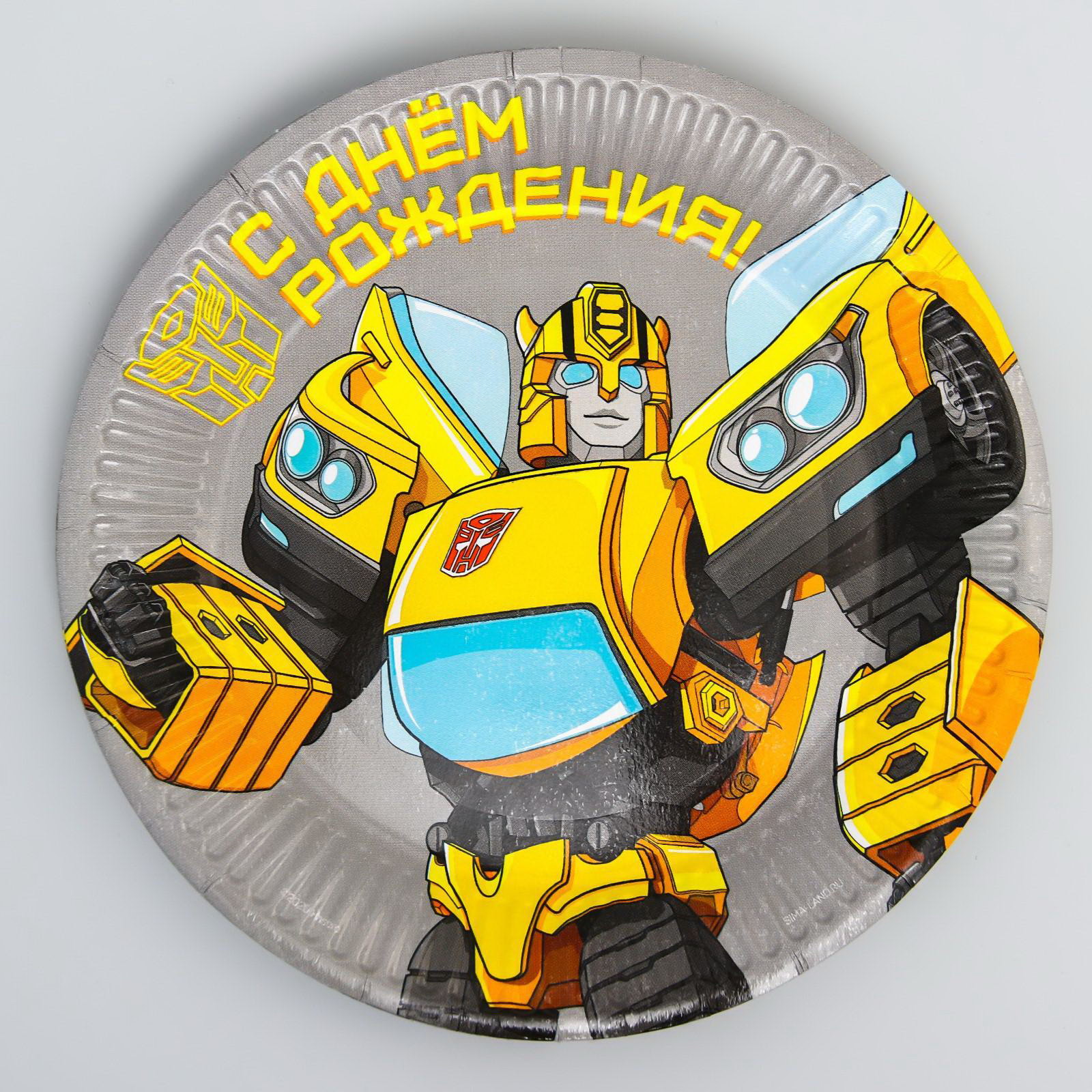 Тарелка одноразовая бумажная "С Днем Рождения!", 18 см, Трансформеры, 18 см., Hasbro, Китай