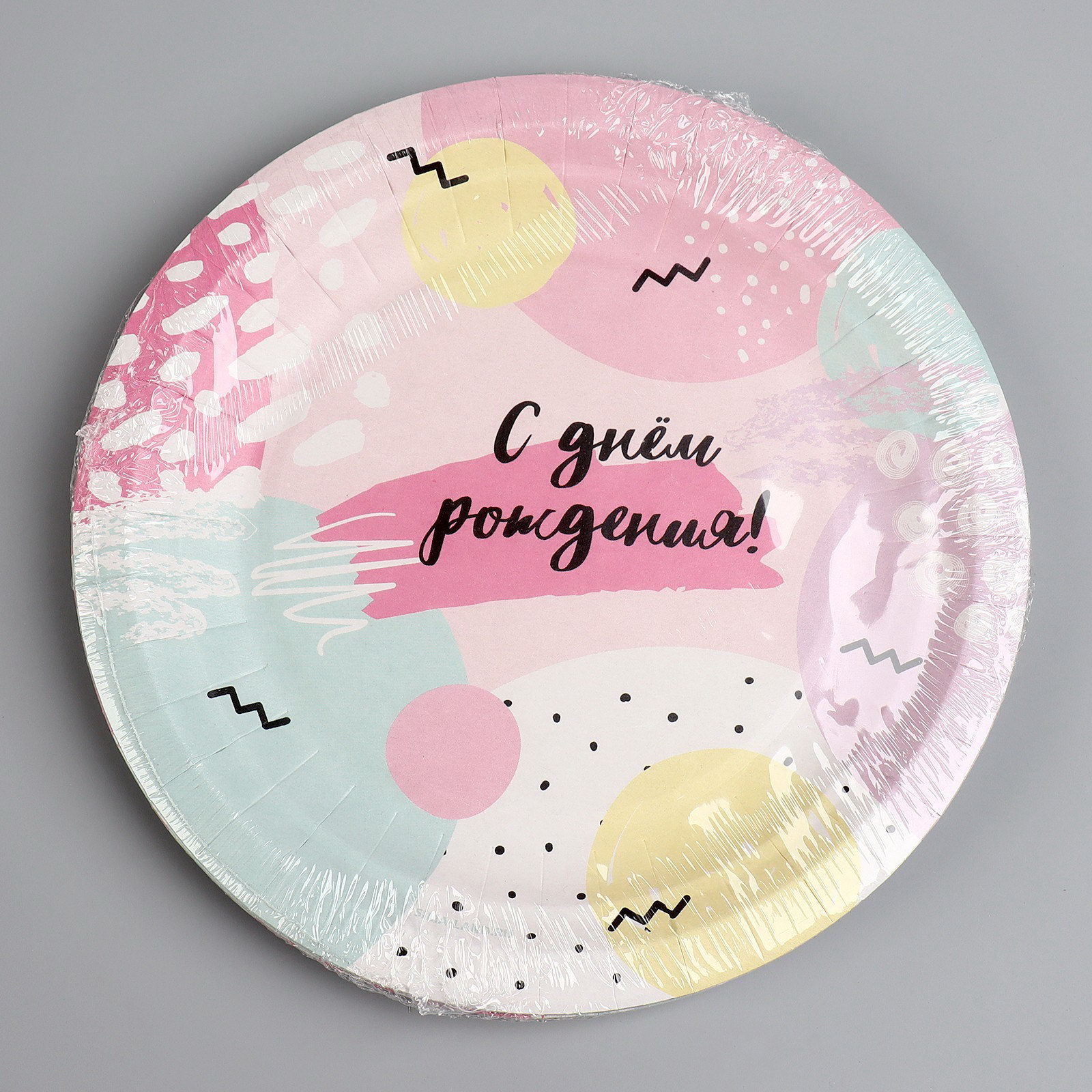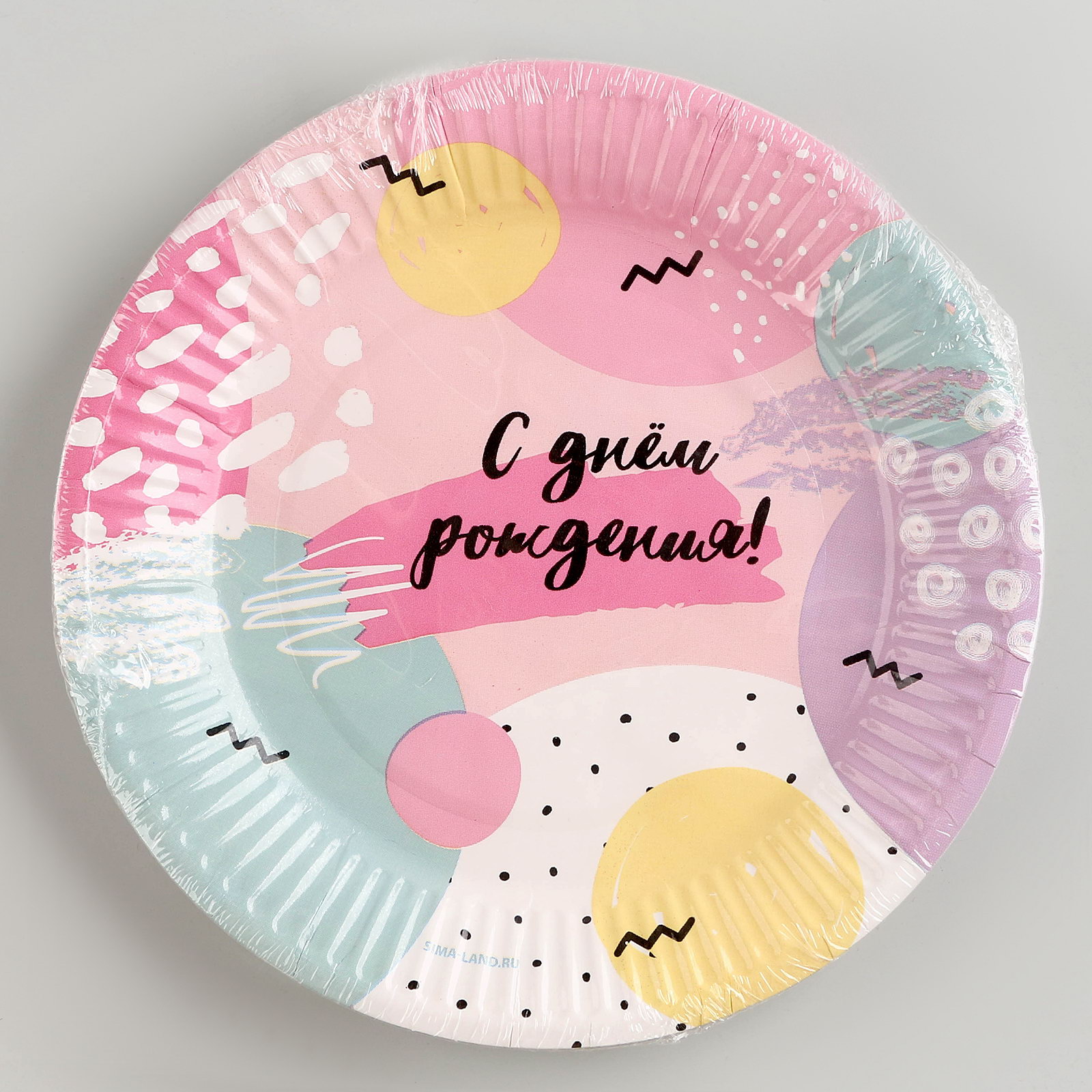 Тарелка одноразовая бумажная "С Днём Рождения", 18 см, 18 см., Страна Карнавалия, Россия