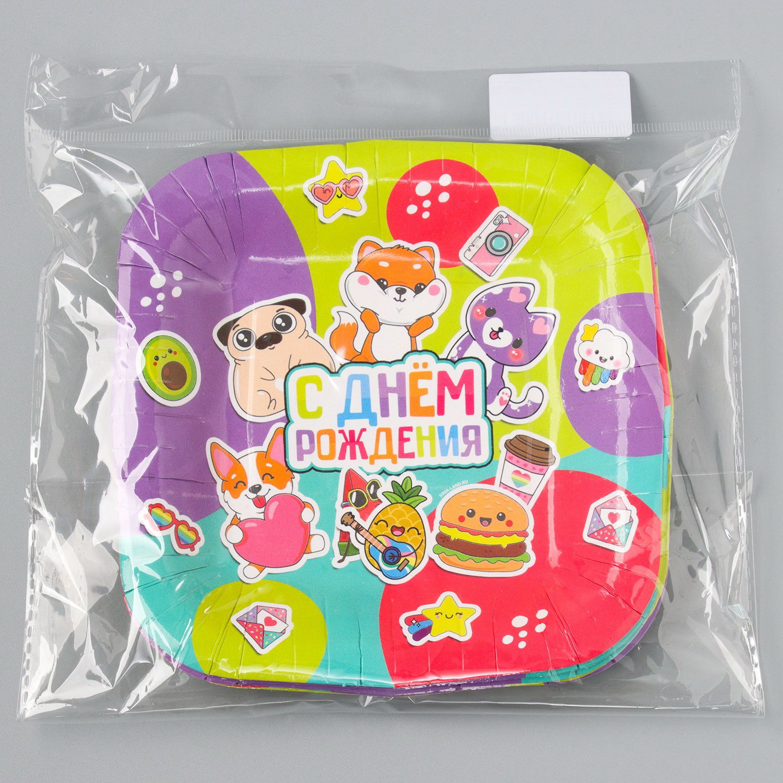 Одноразовая посуда: тарелка бумажная квадратная "С Днём Рождения",стикера,, 16.5х16.5 см, 16.5 см., Страна Карнавалия, Россия