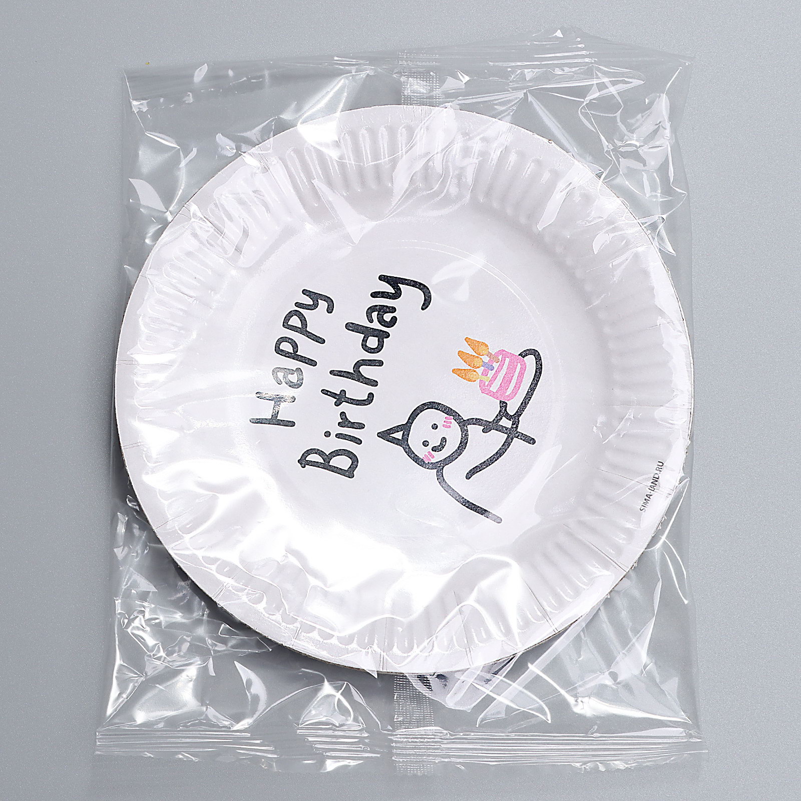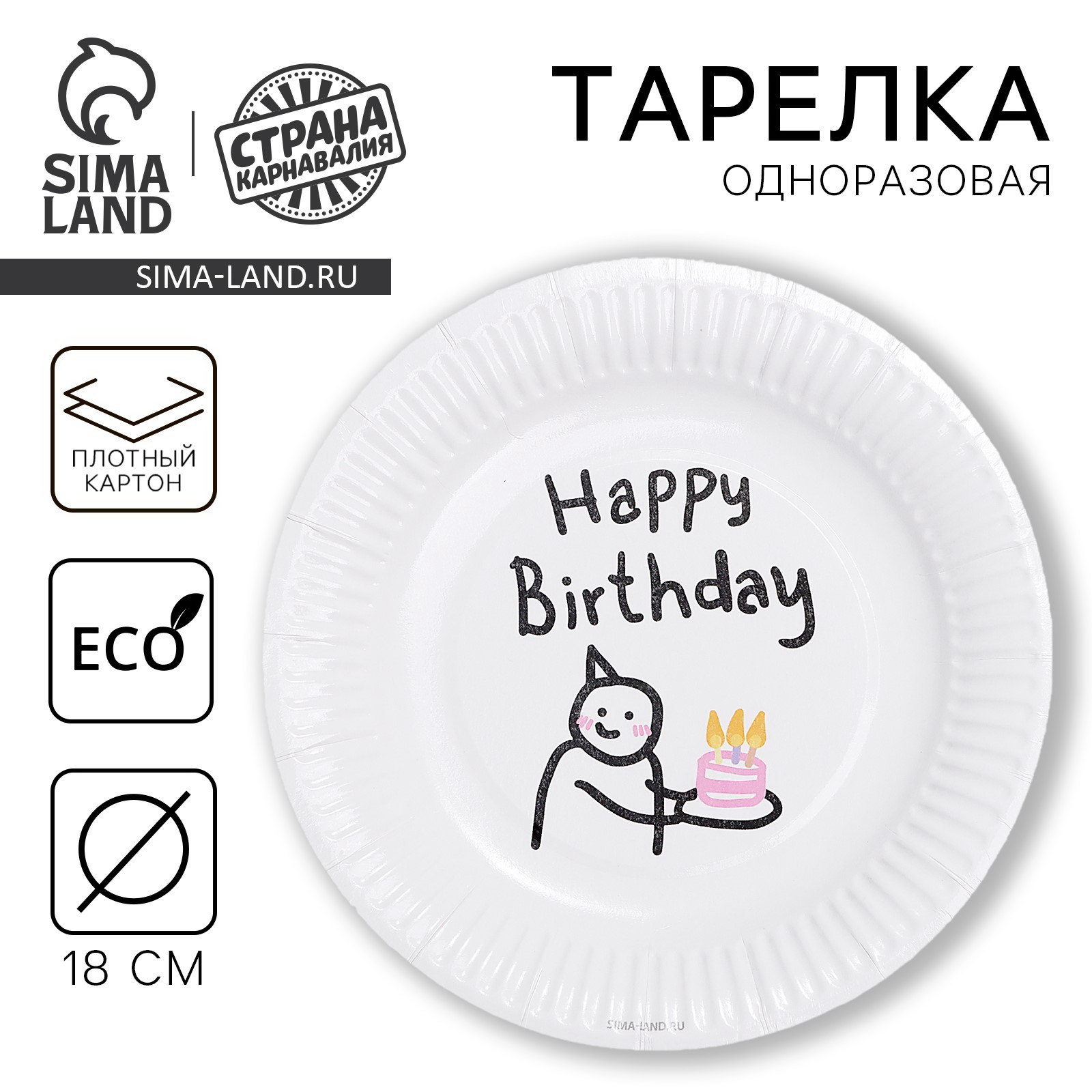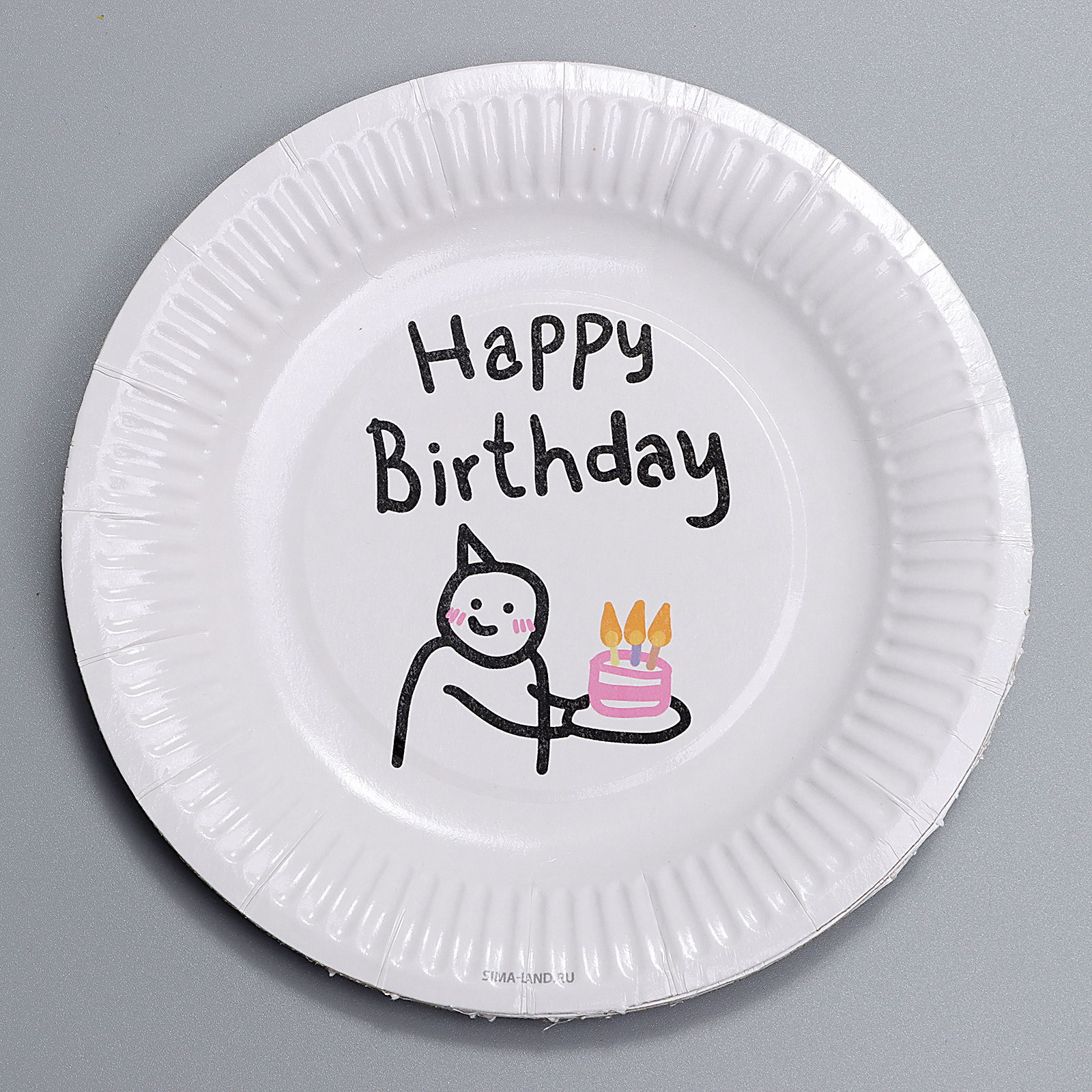 Тарелка одноразовая бумажная "С днём рождения"человечек, 18 см, 18 см., Страна Карнавалия, Россия