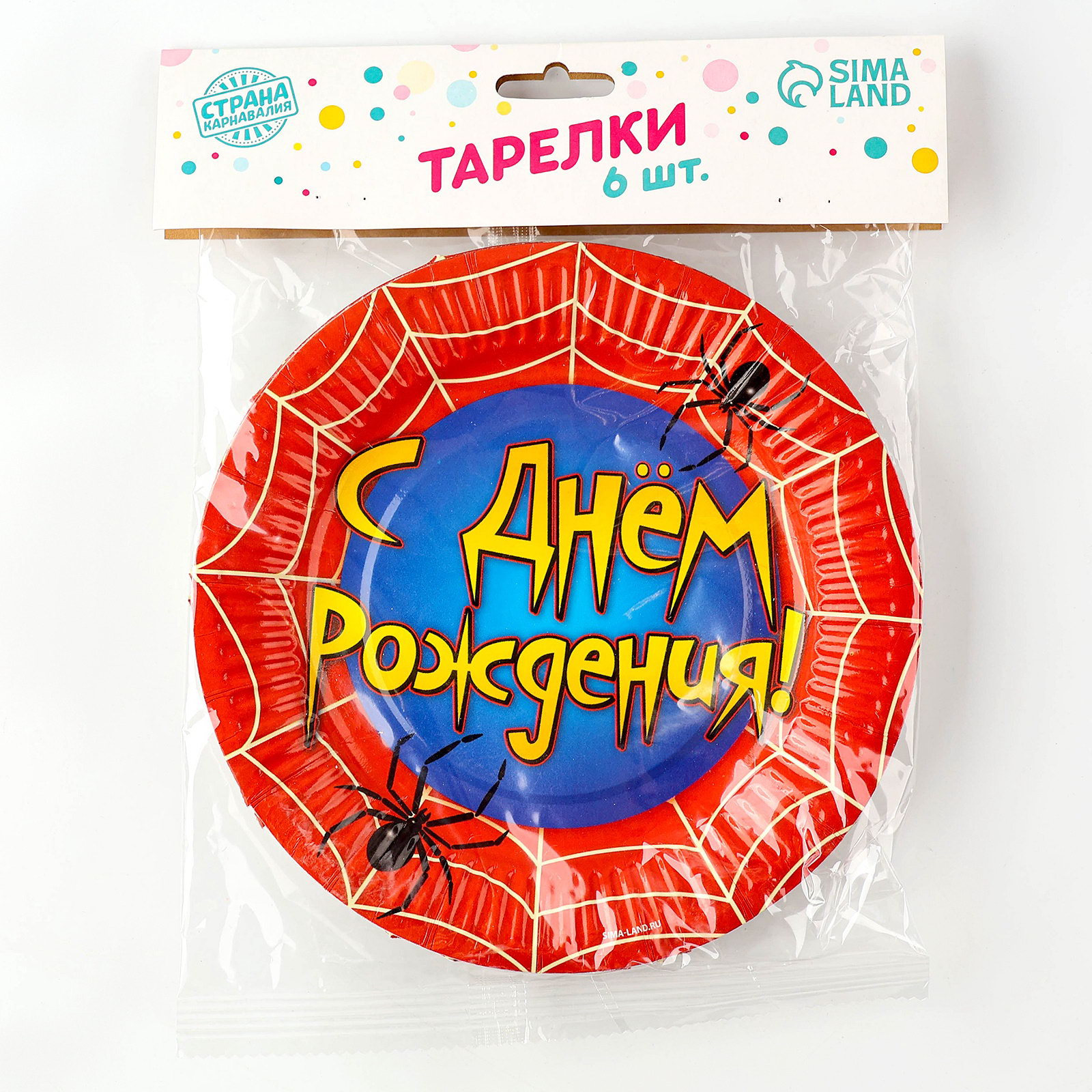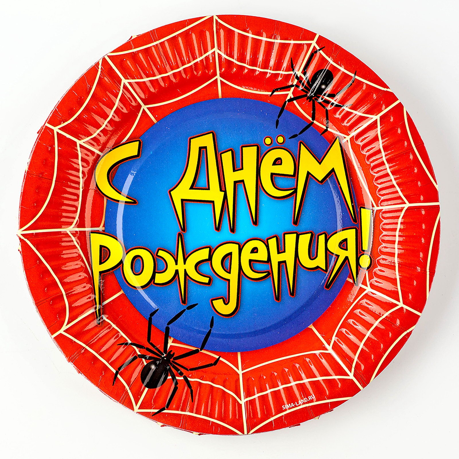 Тарелка одноразовая бумажная "С днем рождения" паутина, 18 см, 18 см., Страна Карнавалия, Россия