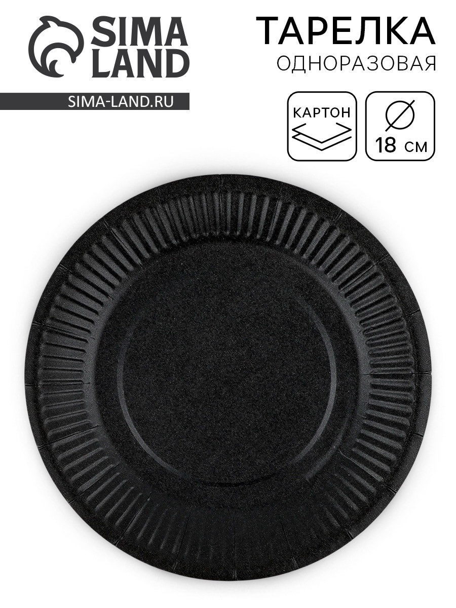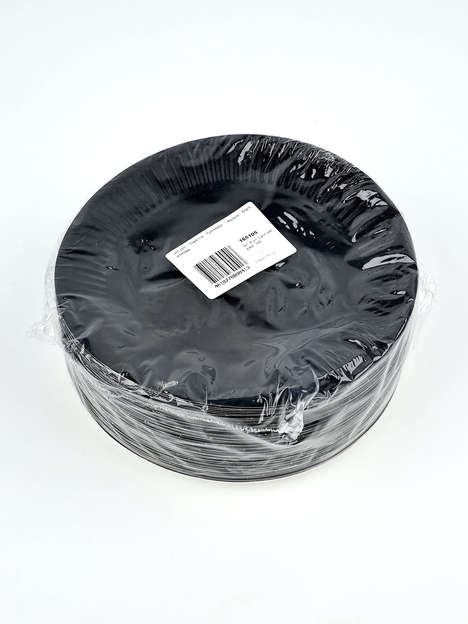 Тарелка одноразовая бумажная "Чёрная", 18 см, 18 см., Россия