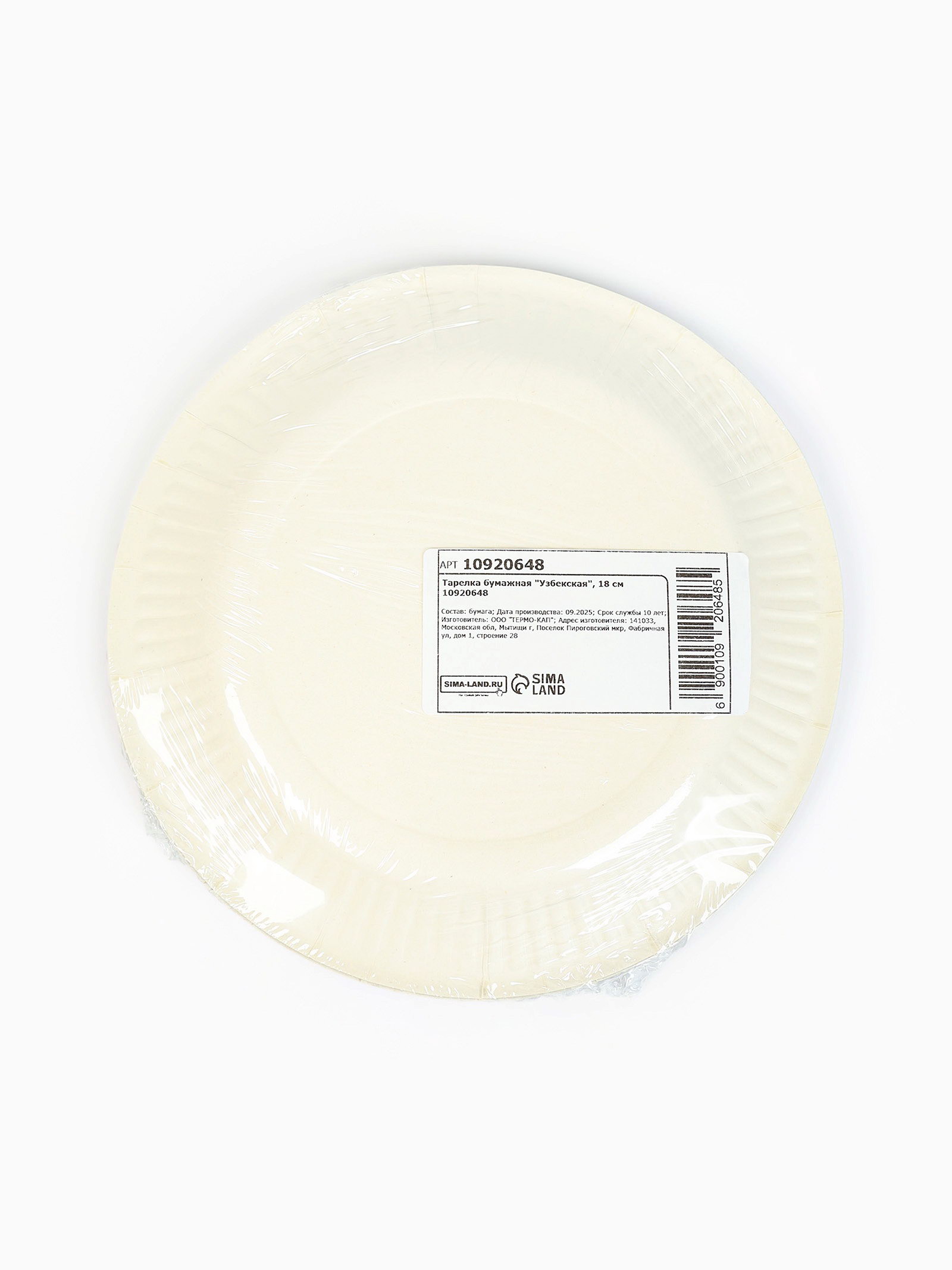Тарелка одноразовая бумажная "Узбекская", 18 см, 18 см., Россия