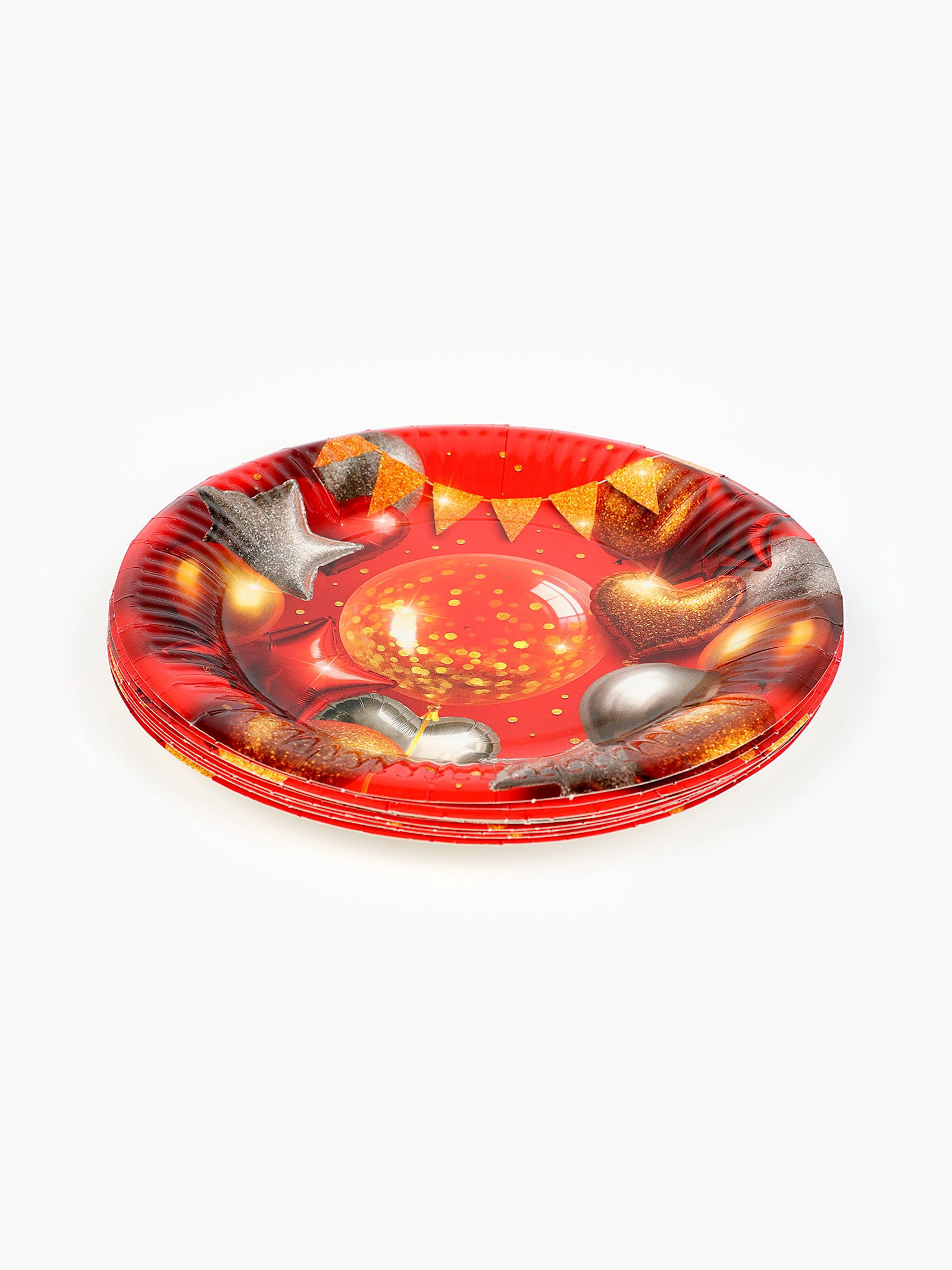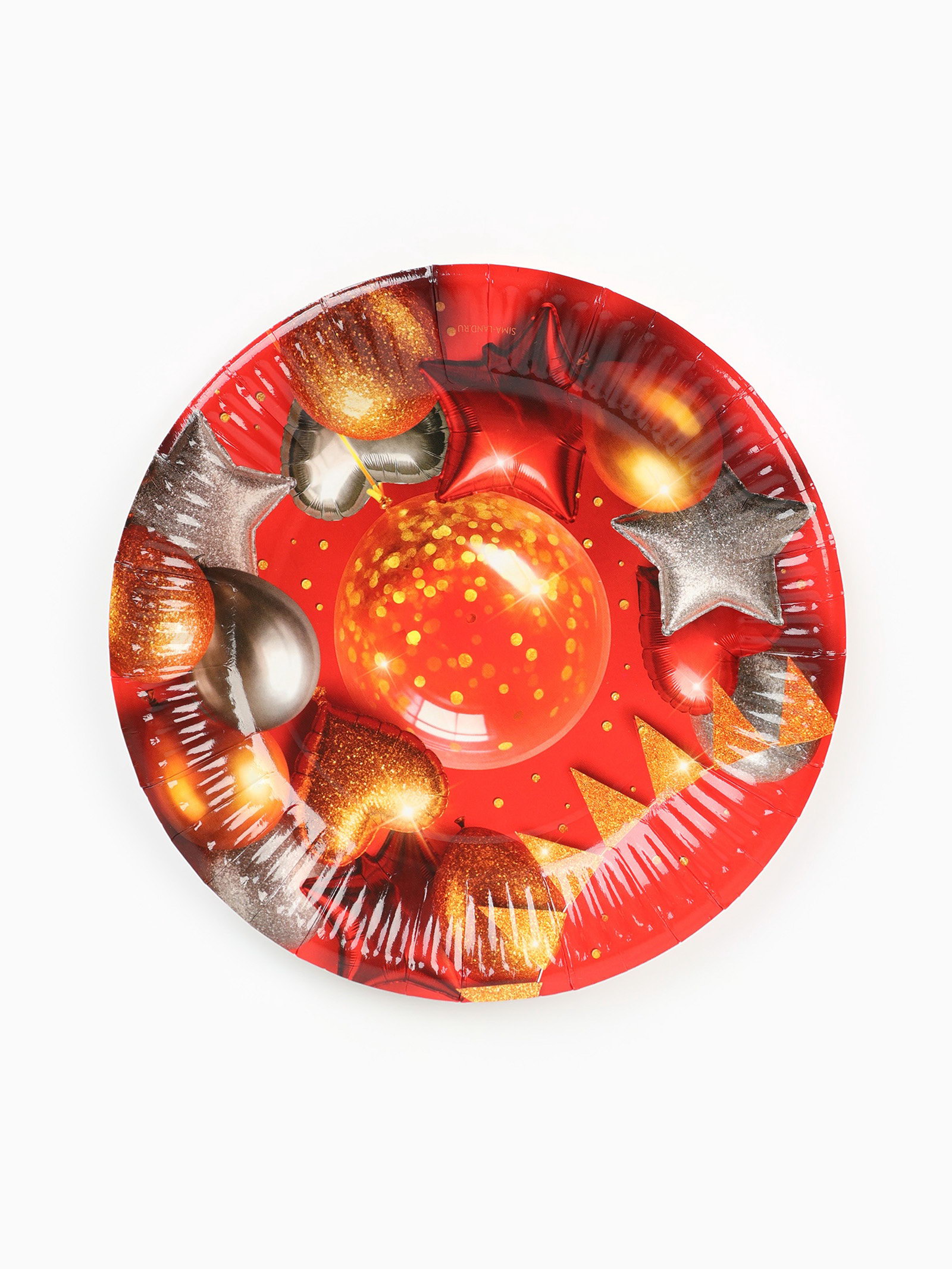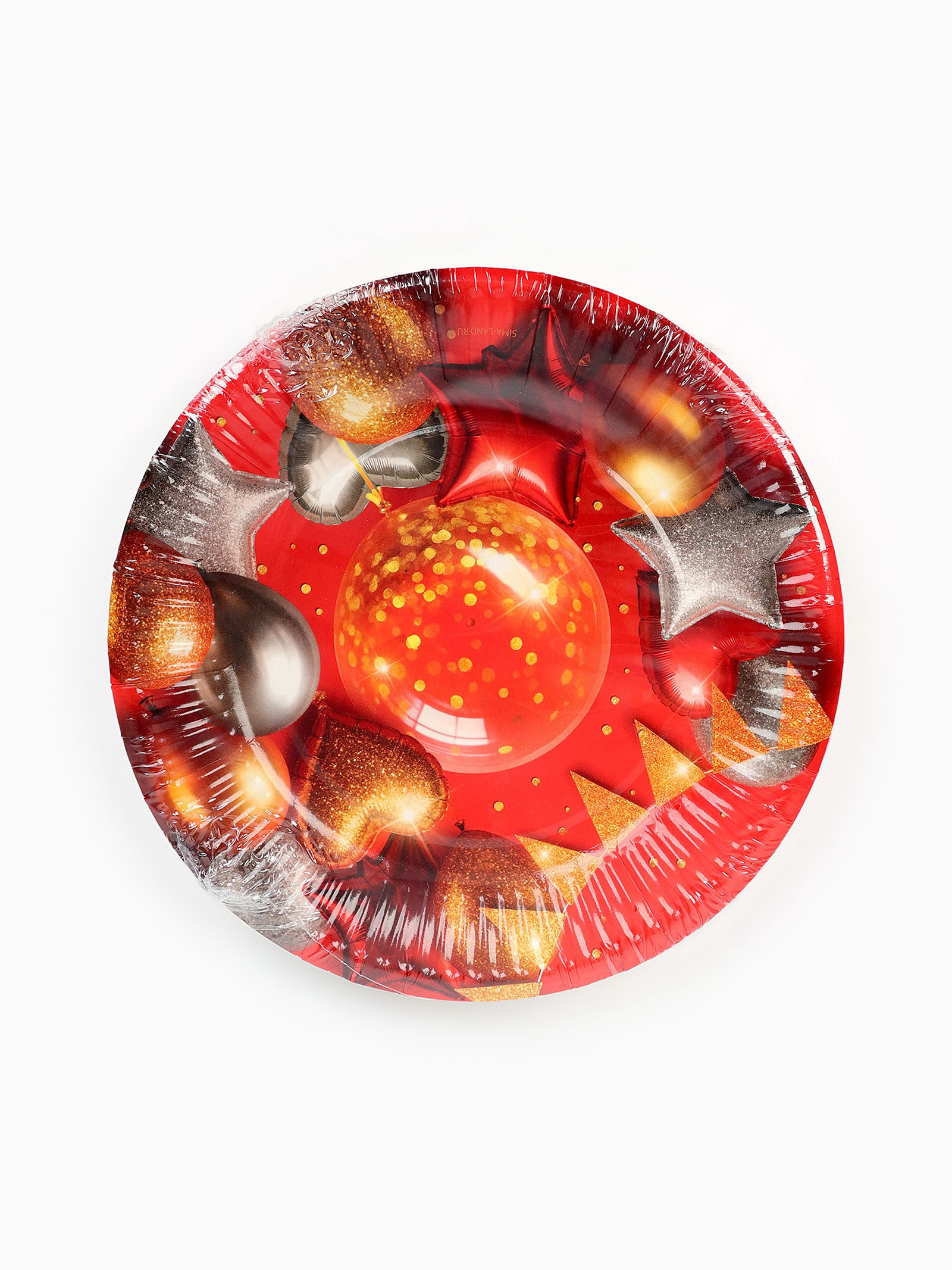 Тарелка одноразовая бумажная "Воздушные шары фольга", красная 18 см, 18 см., Россия