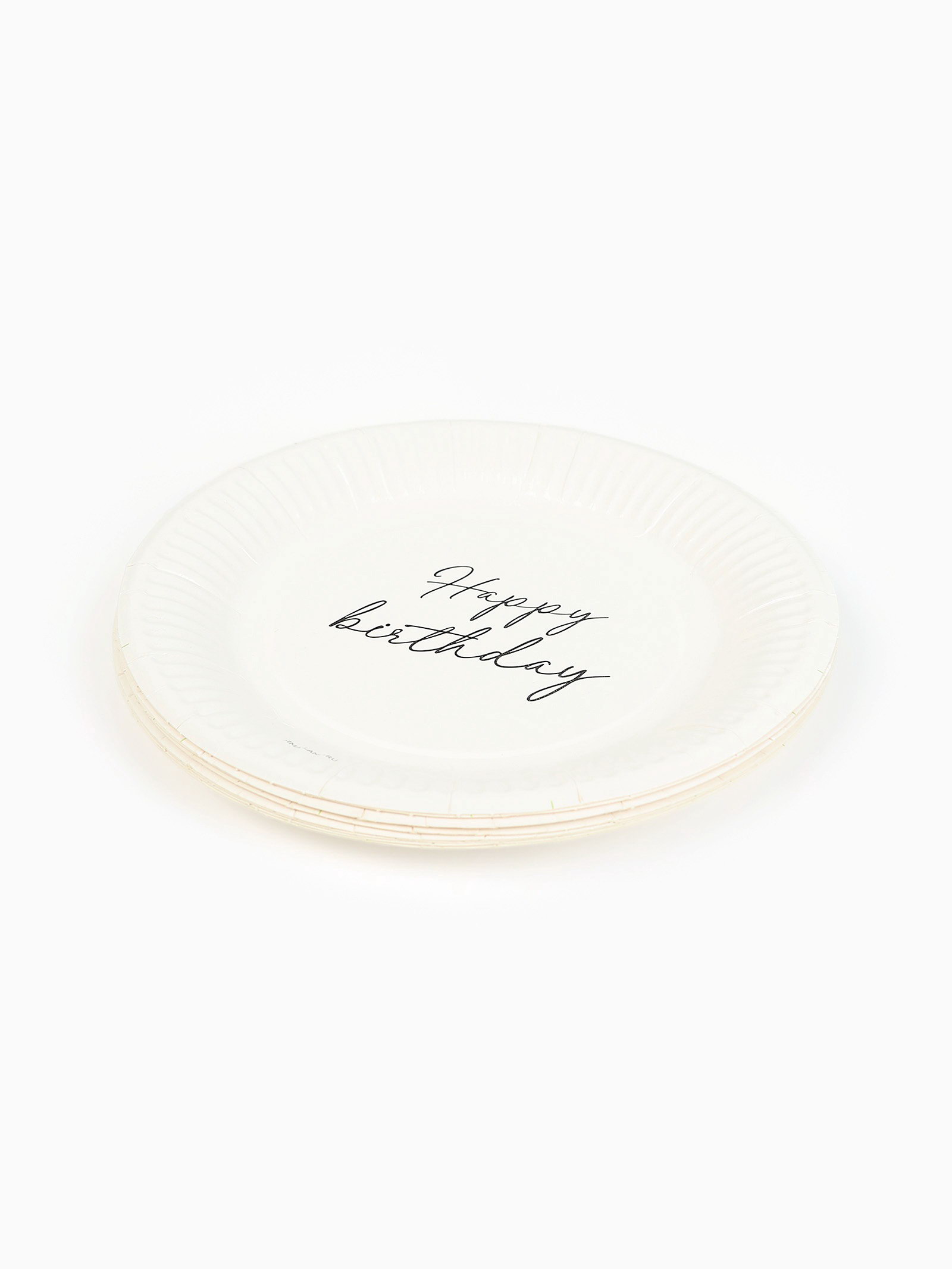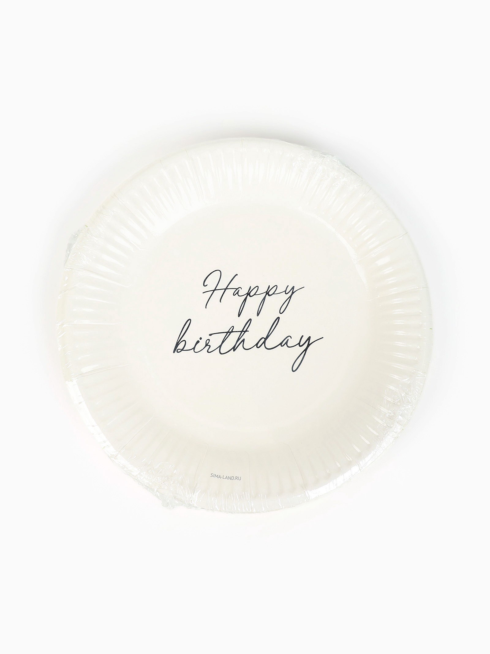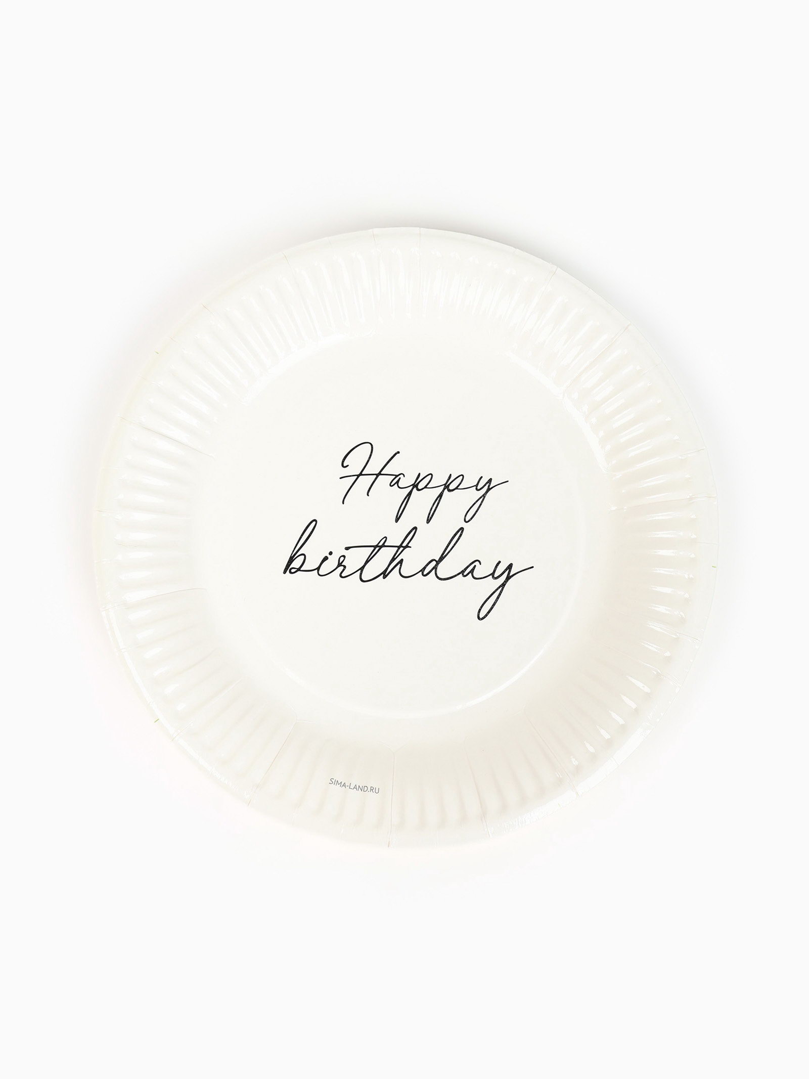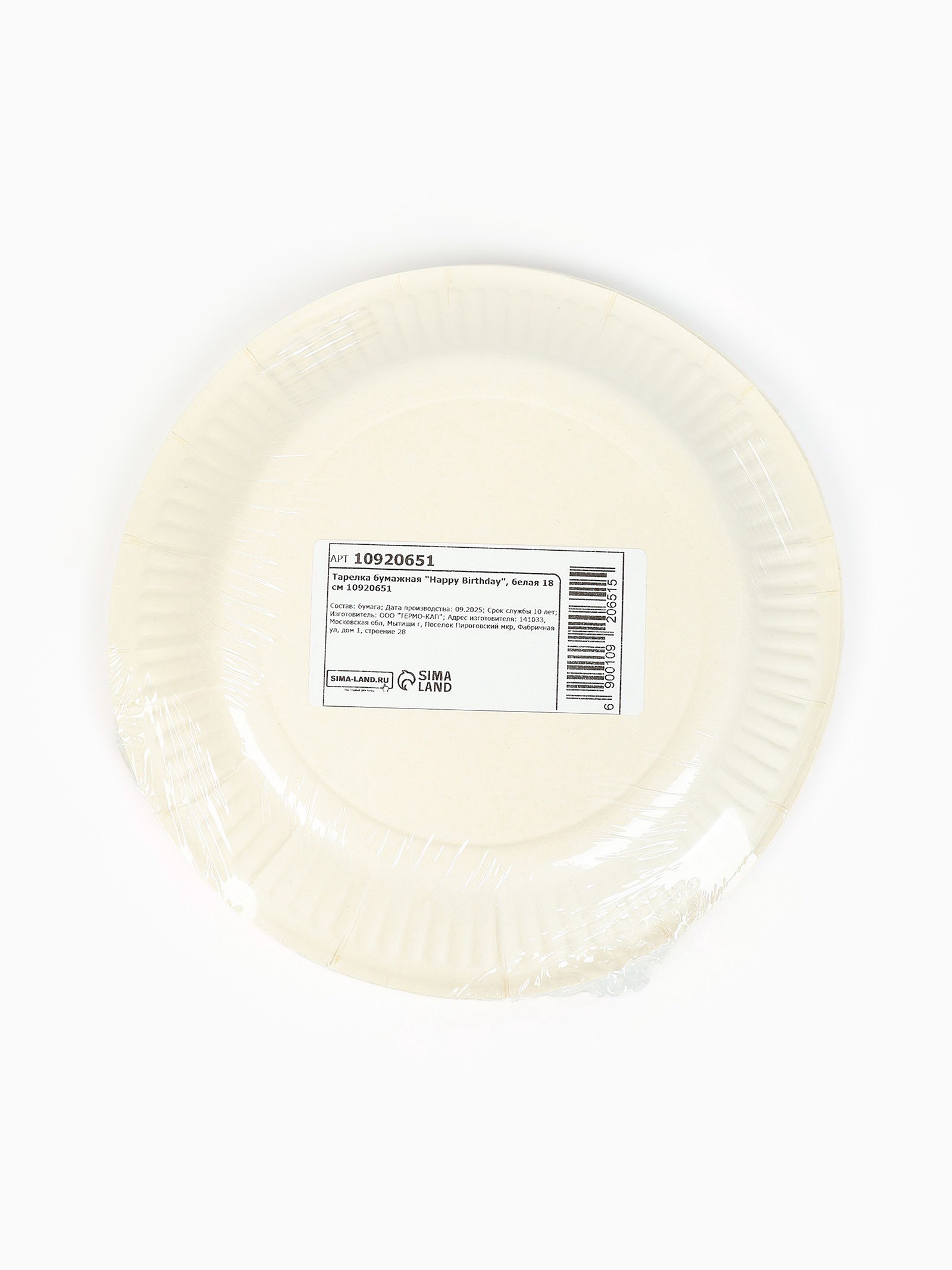 Тарелка одноразовая бумажная "Happy Birthday", белая, 18 см, 18 см., Россия