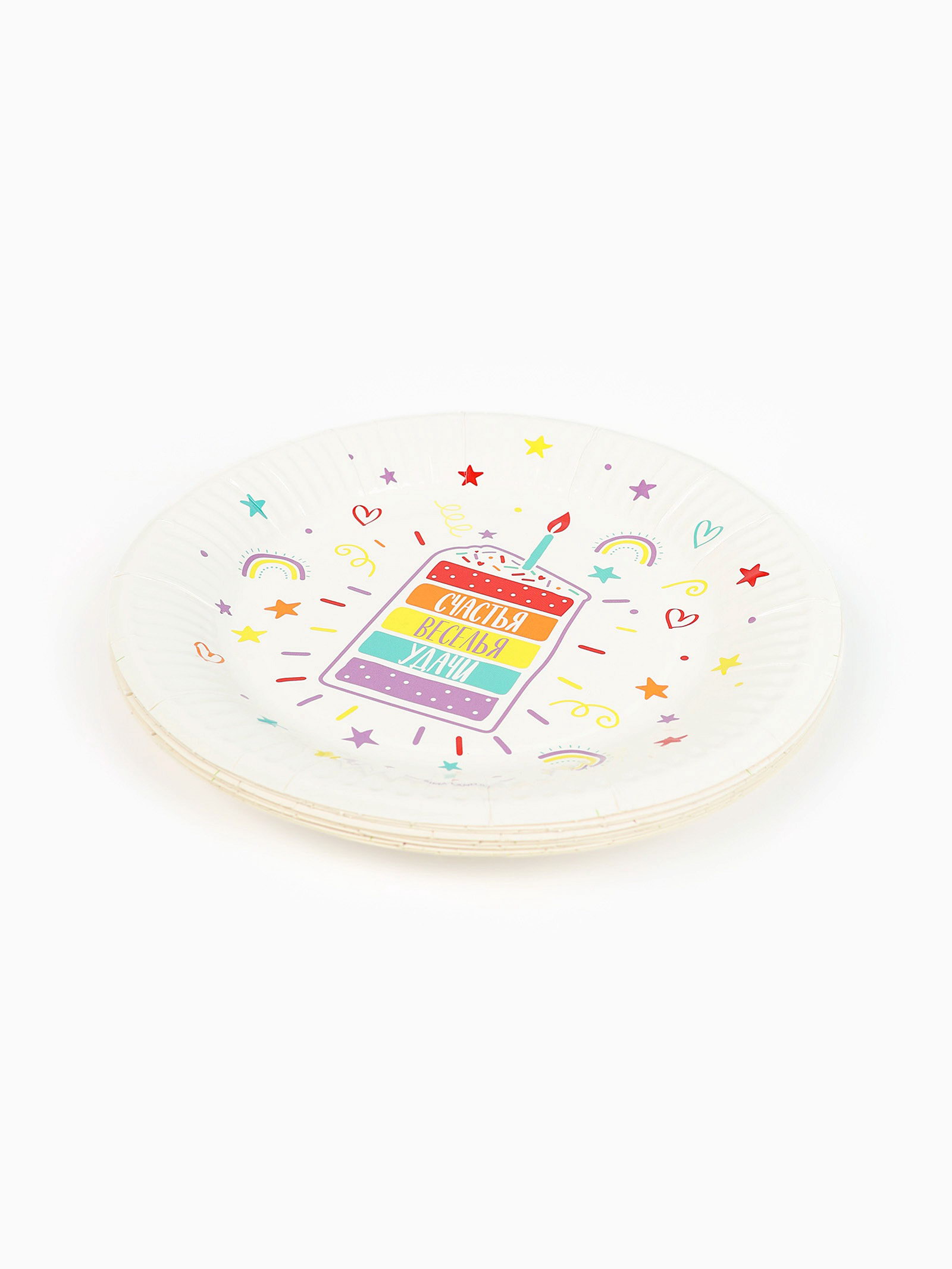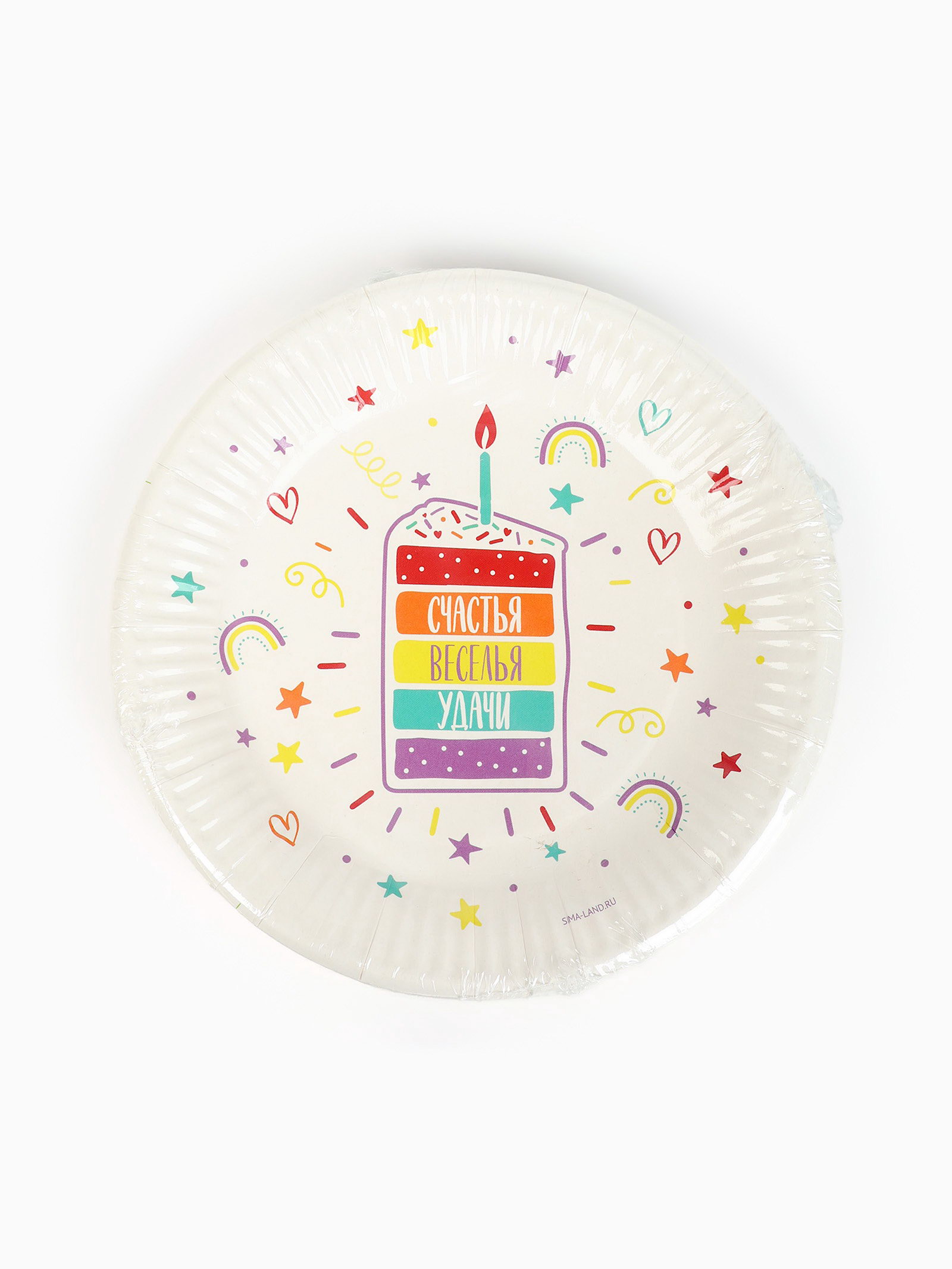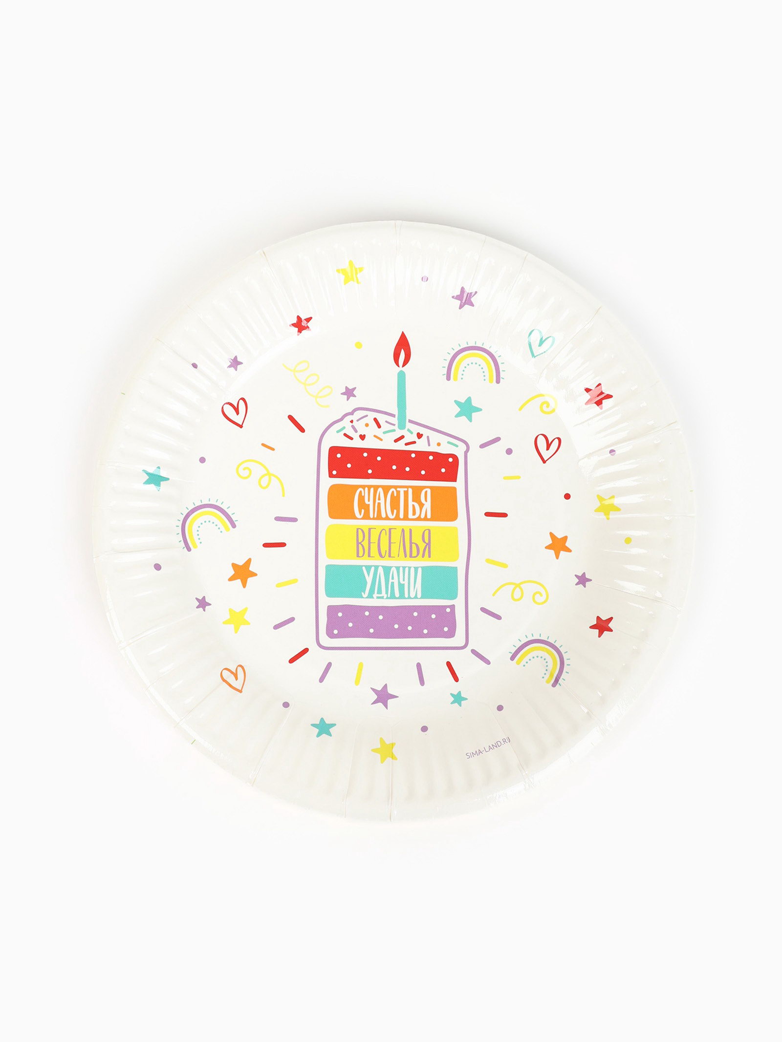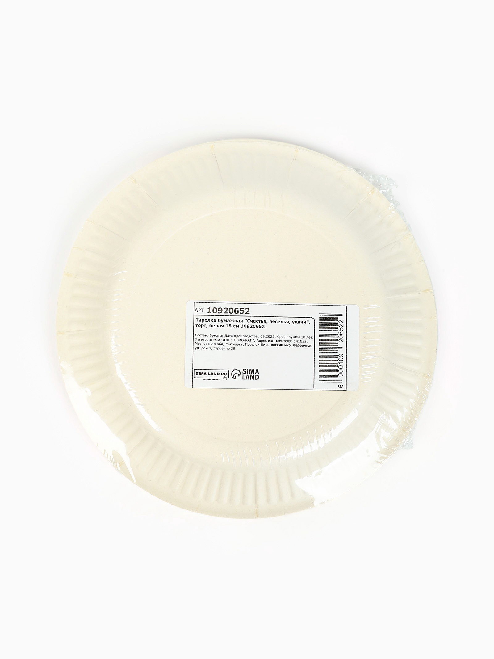 Тарелка одноразовая бумажная "Счастья, веселья, удачи", белая, 18 см, 18 см., Россия