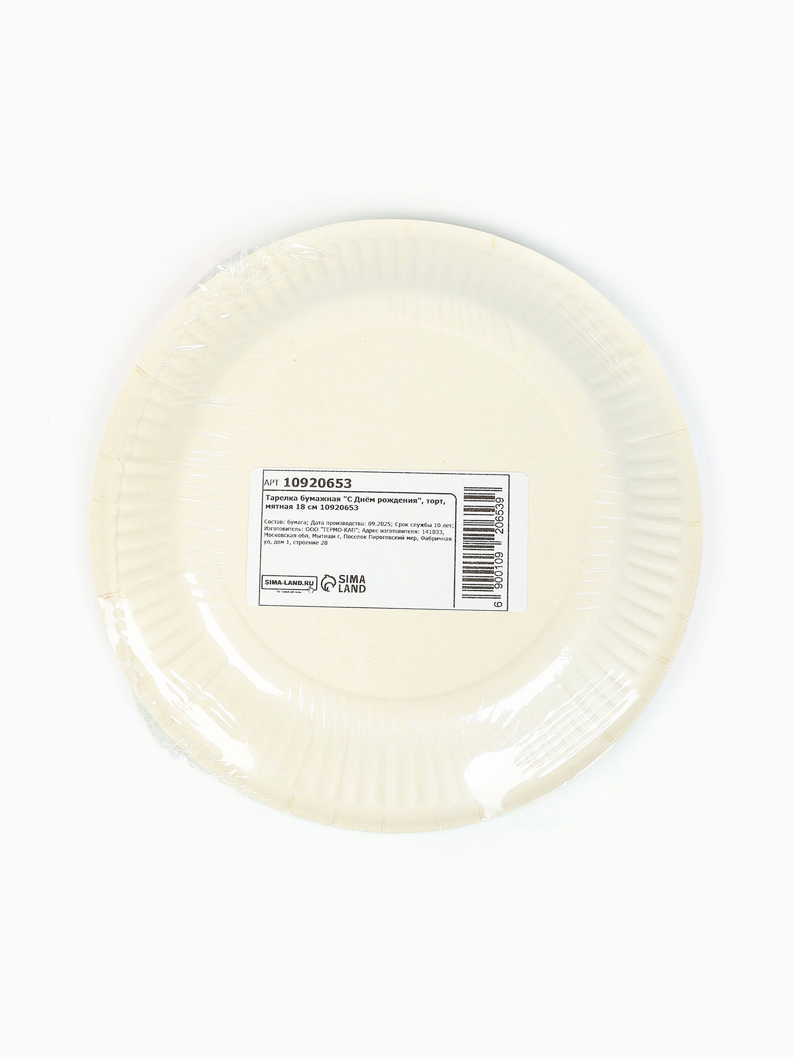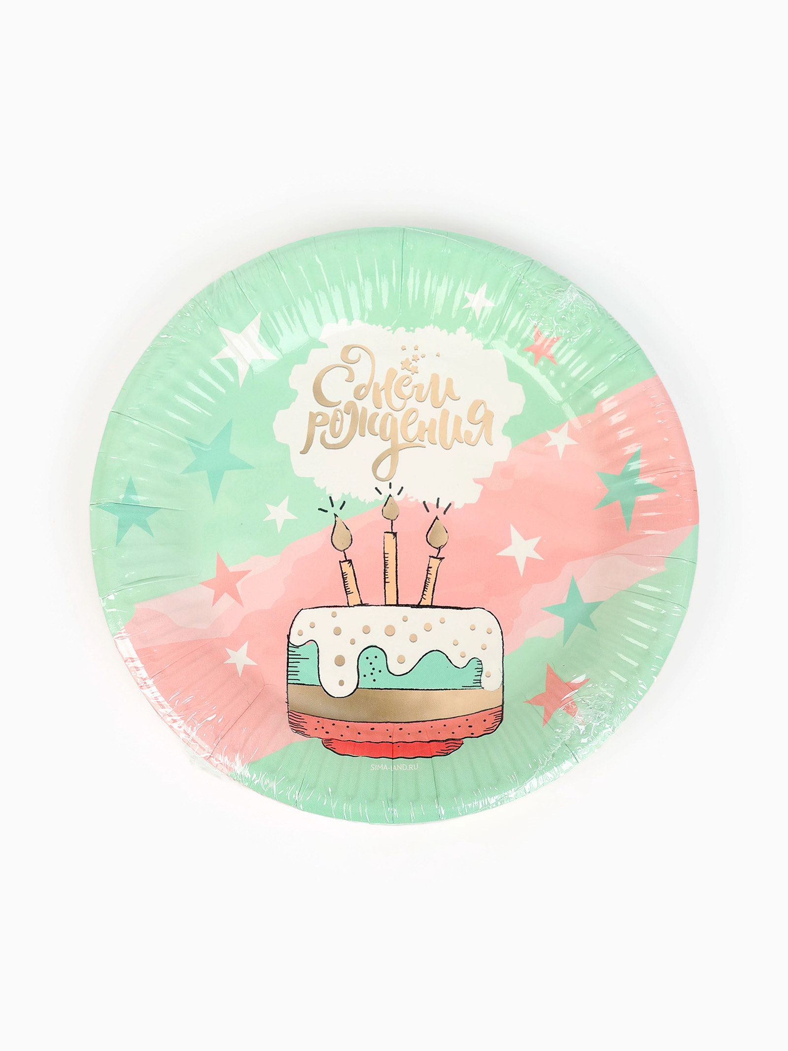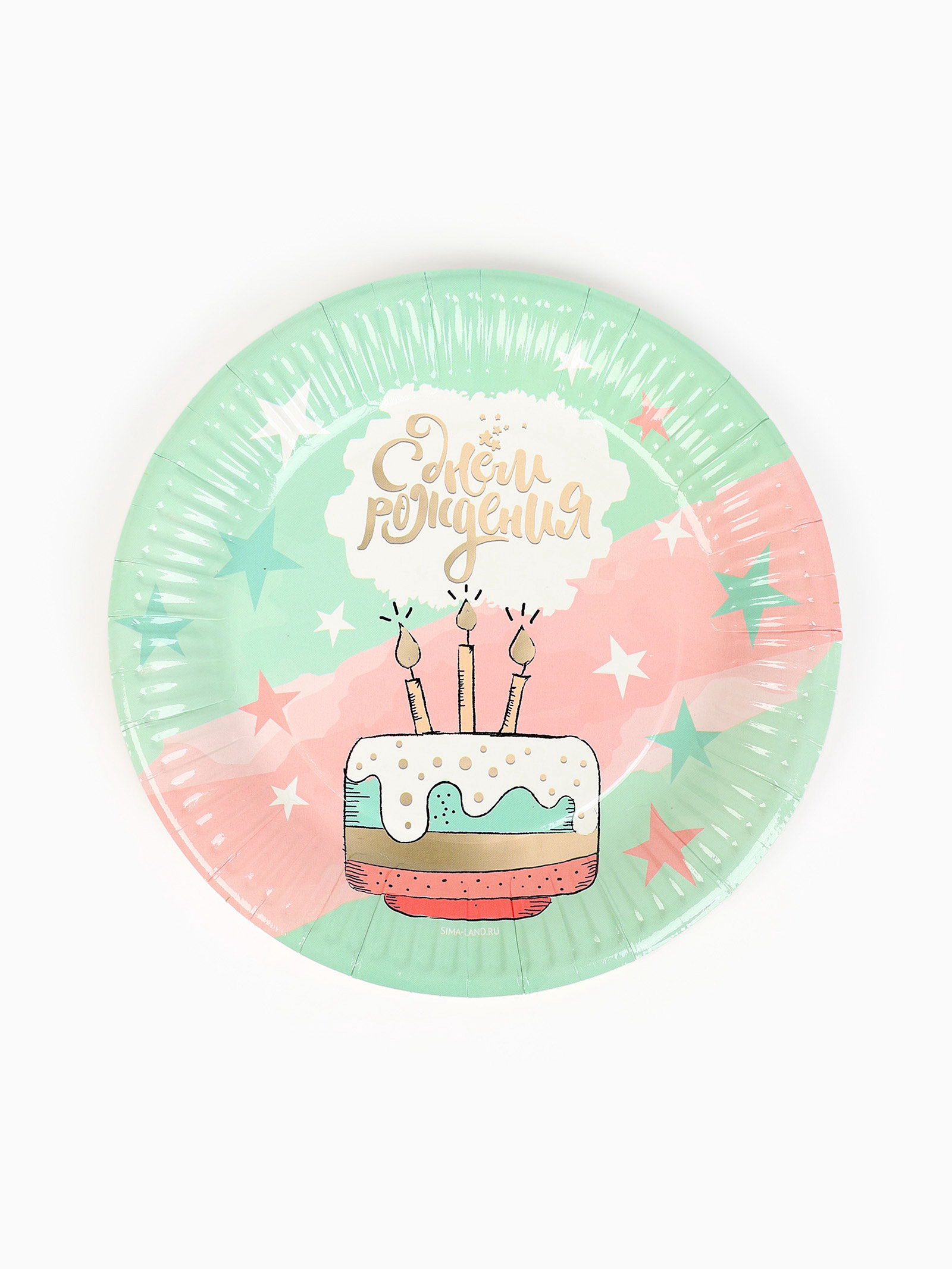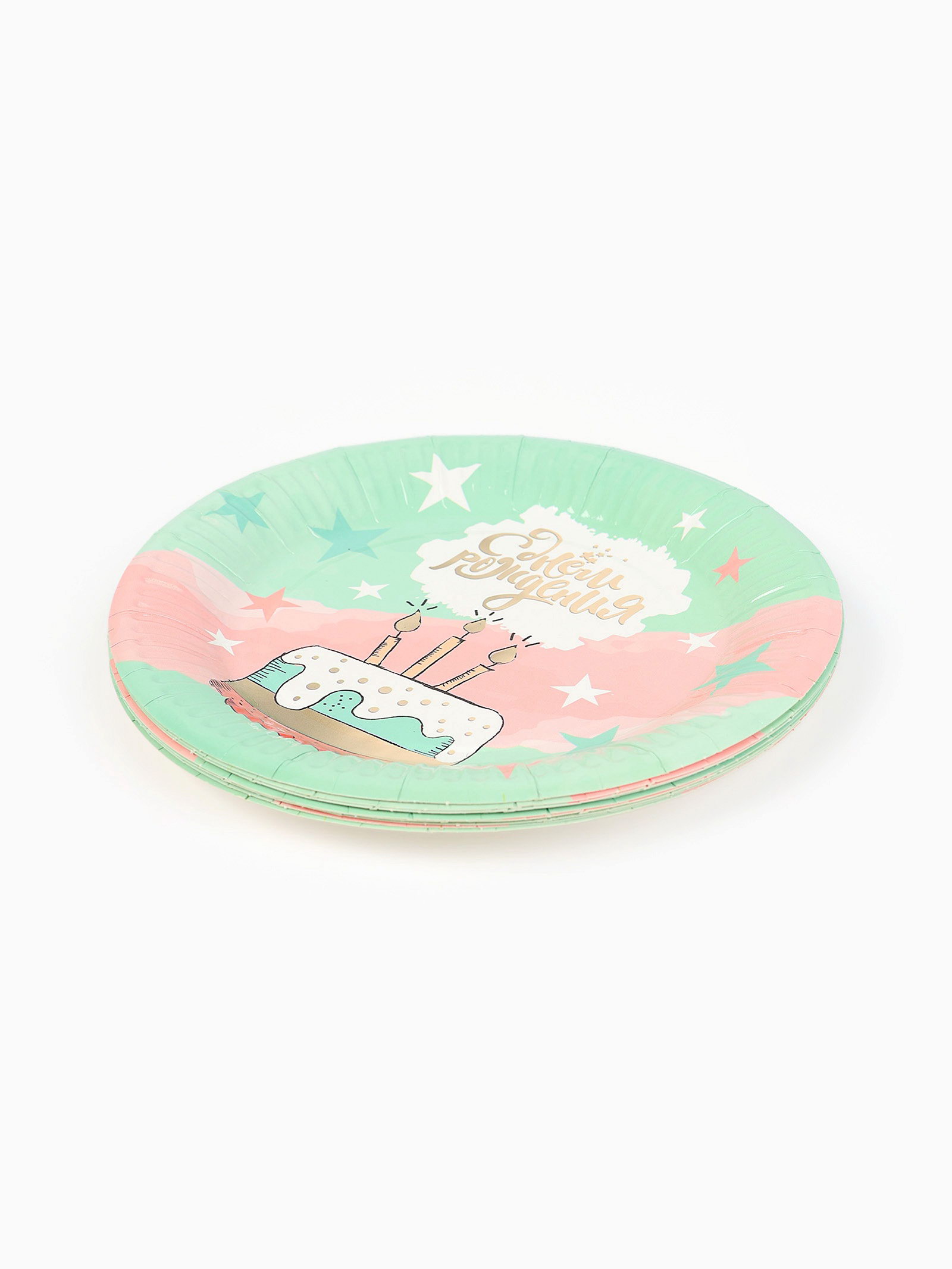 Тарелка одноразовая бумажная "С Днём рождения", мятная, 18 см, 18 см., Россия