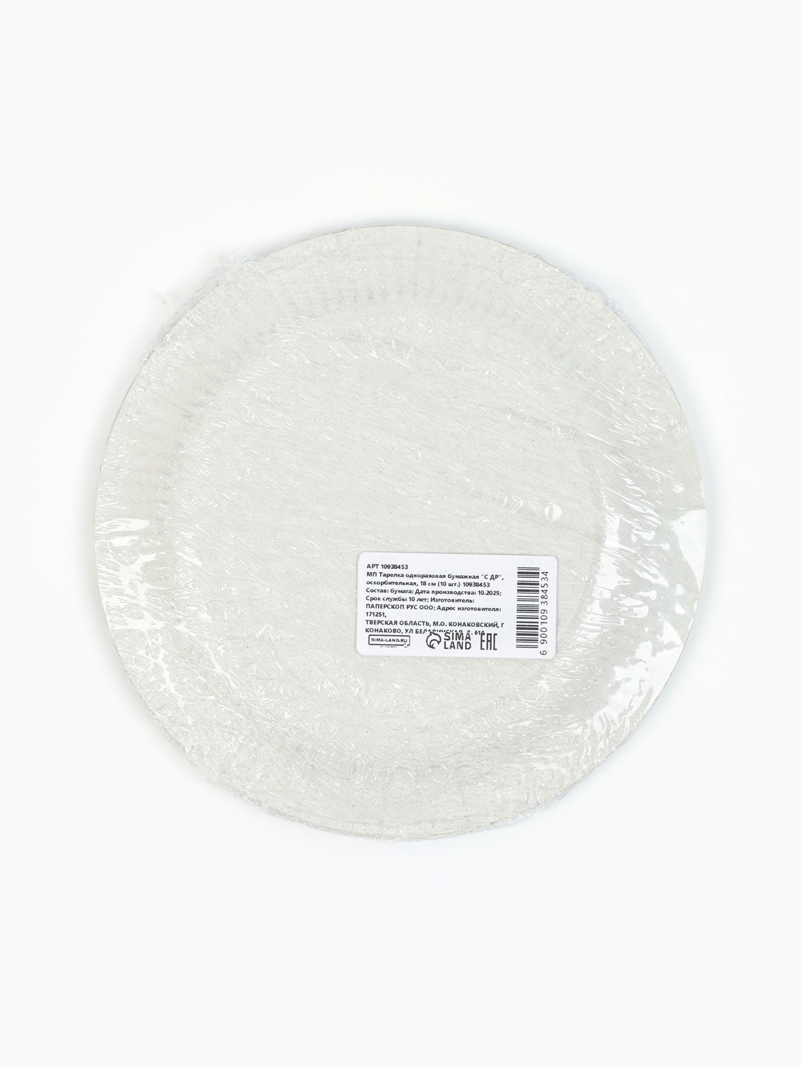 Тарелка одноразовая бумажная "С ДР", 18 см, 10 шт., 18 см., Россия