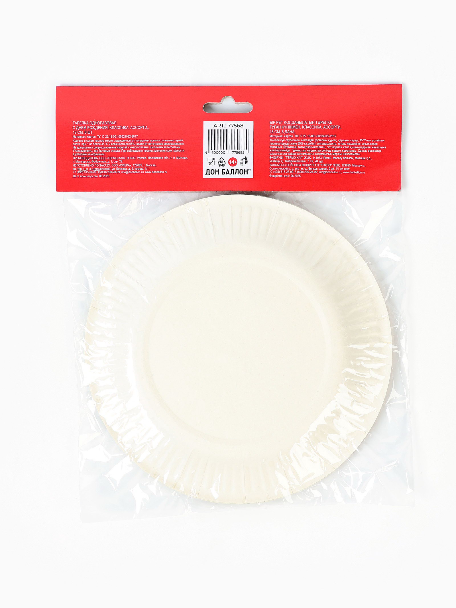 Тарелки одноразовые бумажные "С Днем рождения", 6 шт., МИКС, 18 см., Россия