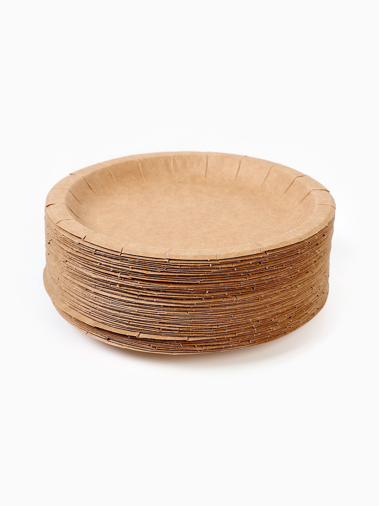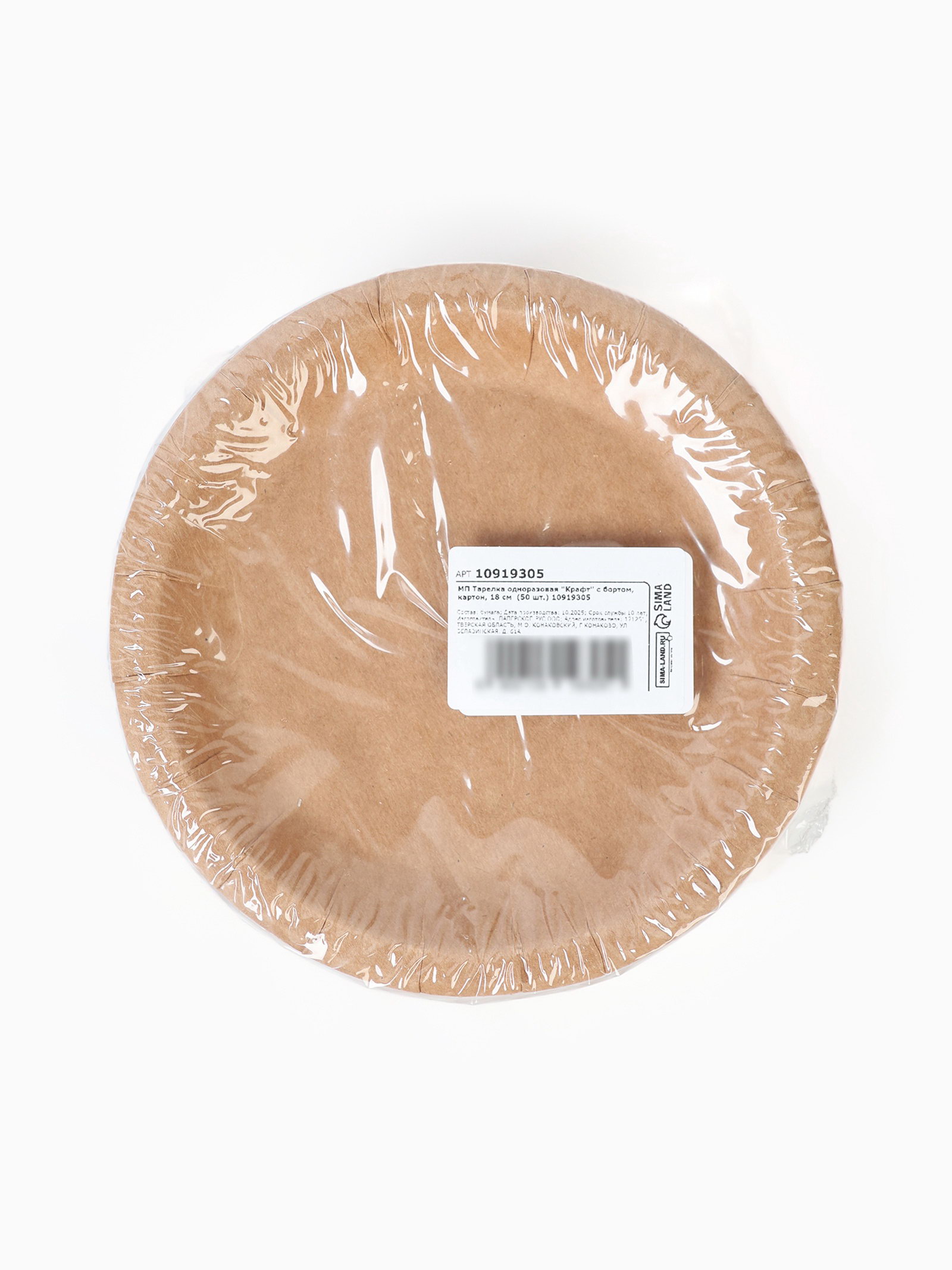 Тарелка одноразовая "Крафт" с бортом, картон, 18 см, 50 шт., 18 см., Россия