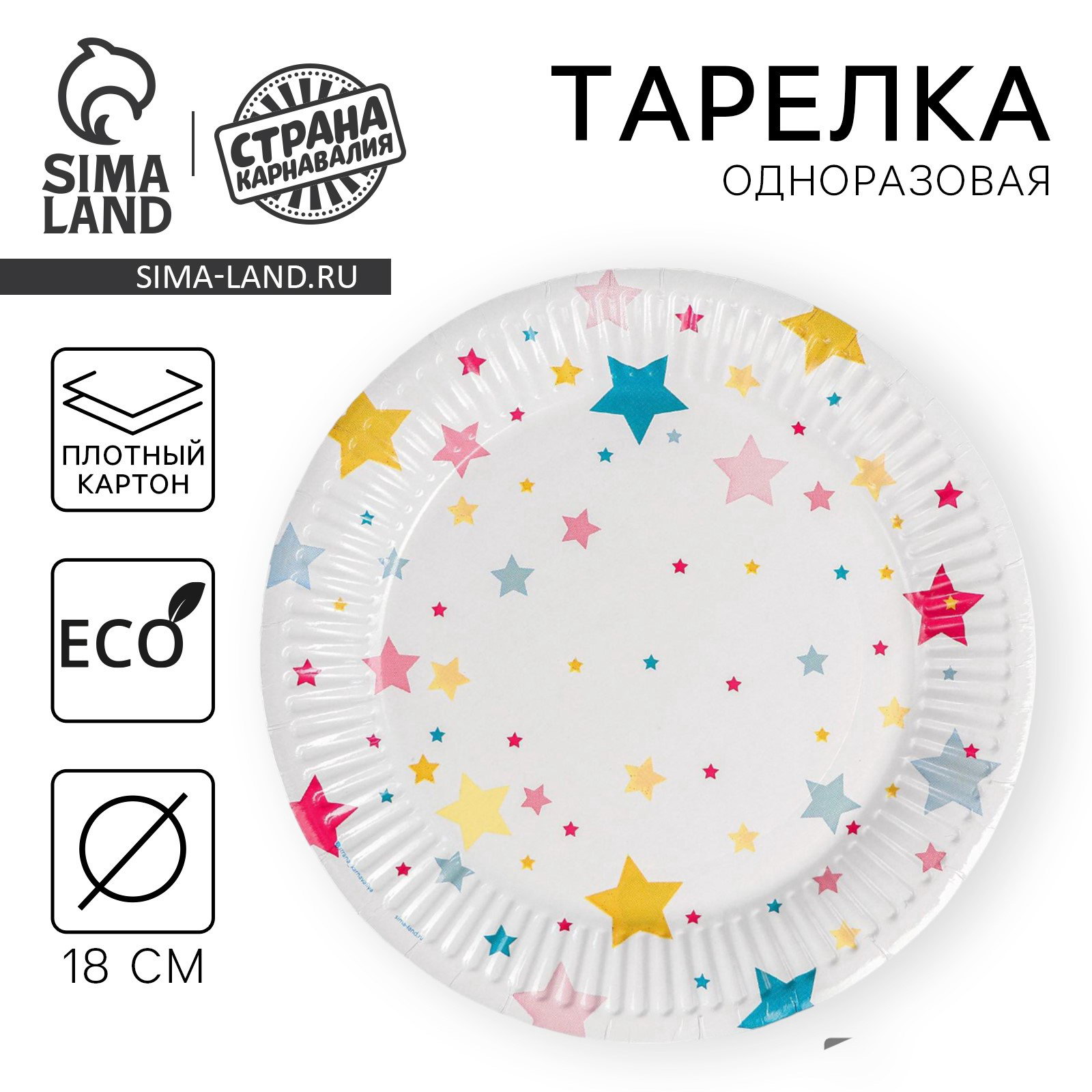 Тарелка одноразовая бумажная "Звёзды", 18 см, 10 шт, 18 см., Страна Карнавалия, Россия