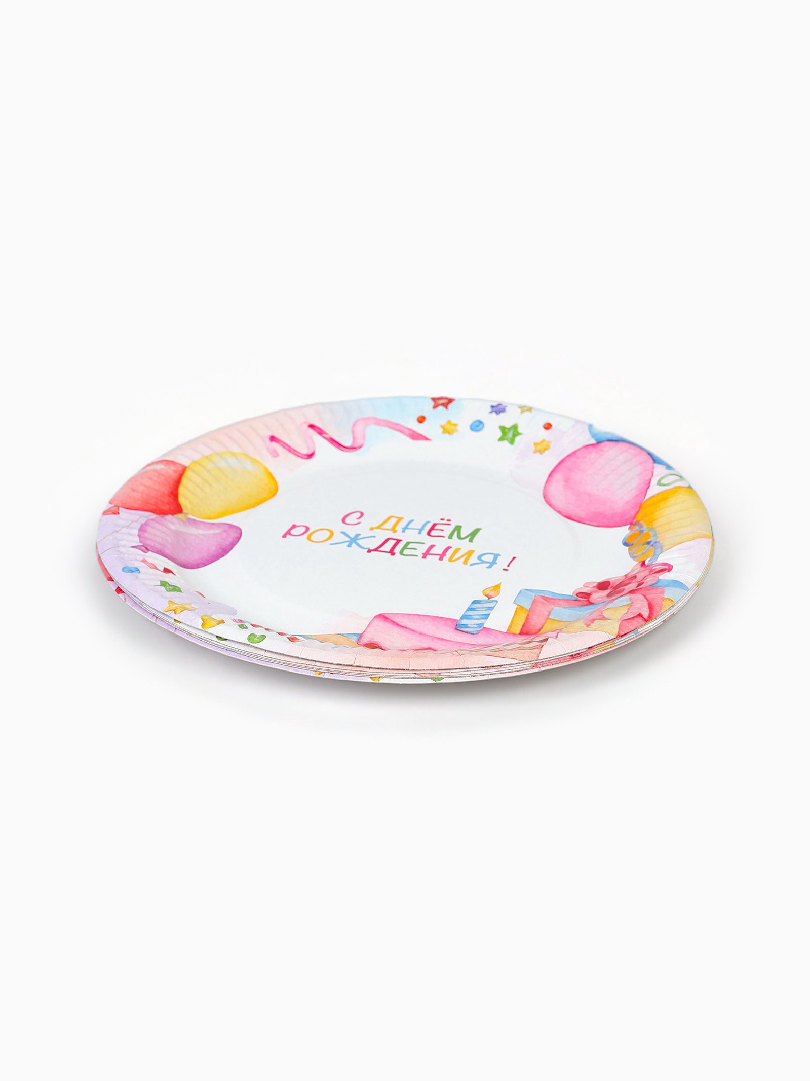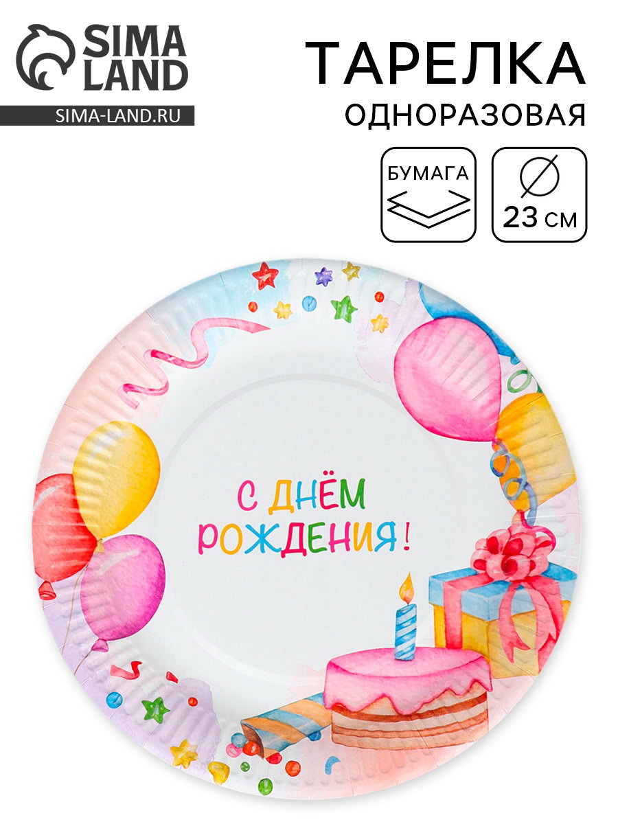 Тарелка одноразовая бумажная "День Рождения", 23 см, 23 см., Россия
