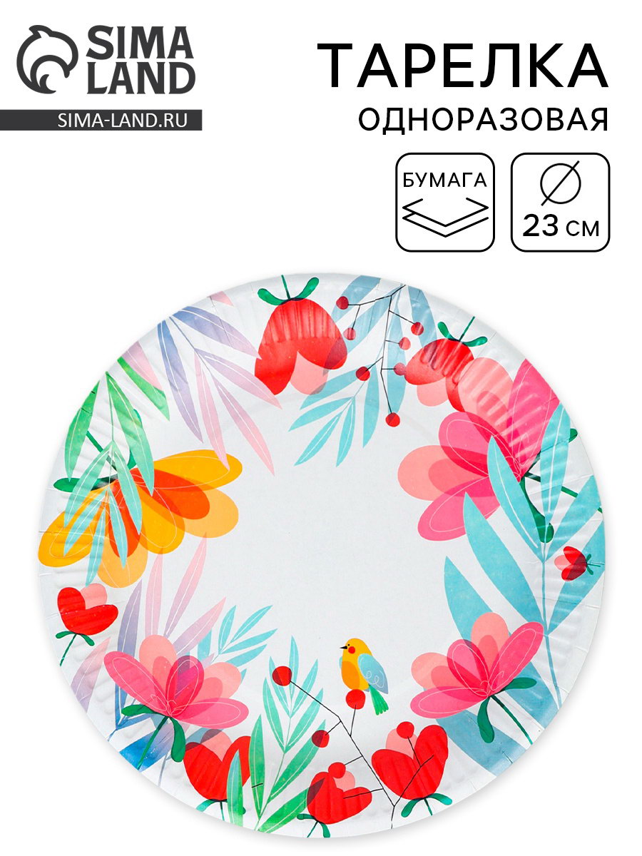 Тарелка одноразовая бумажная "Лето", 23 см, 23 см., Россия