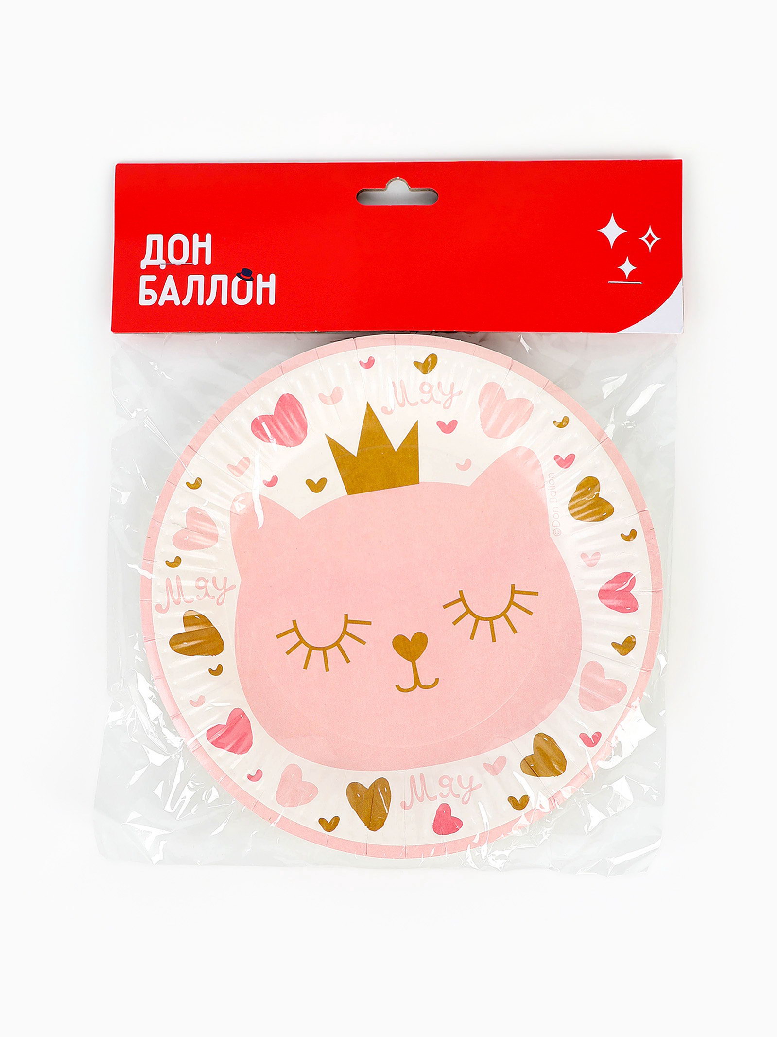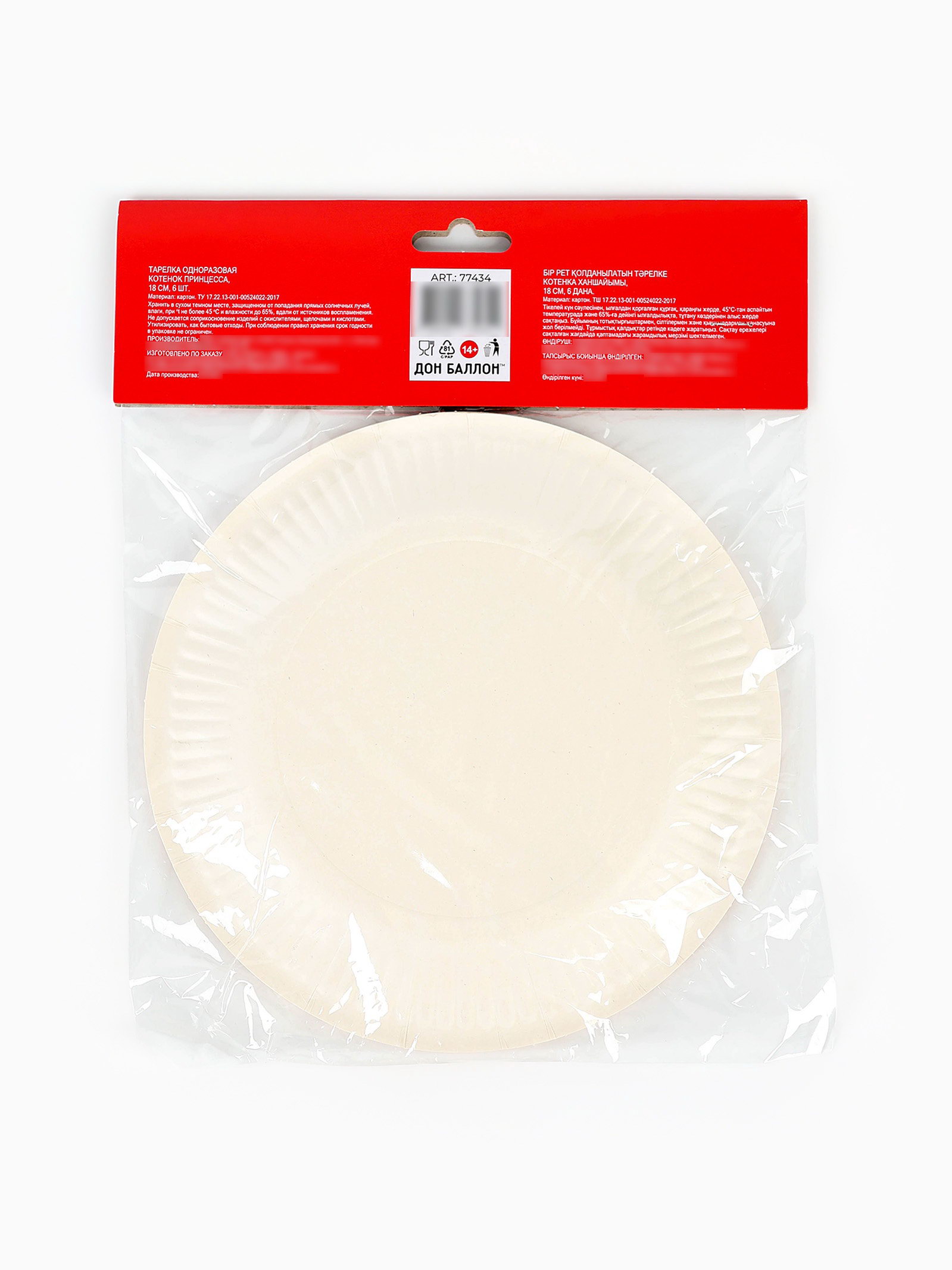 Тарелки одноразовые бумажные "Котёнок Принцесса", 18 см, 6 шт, 18 см., Россия