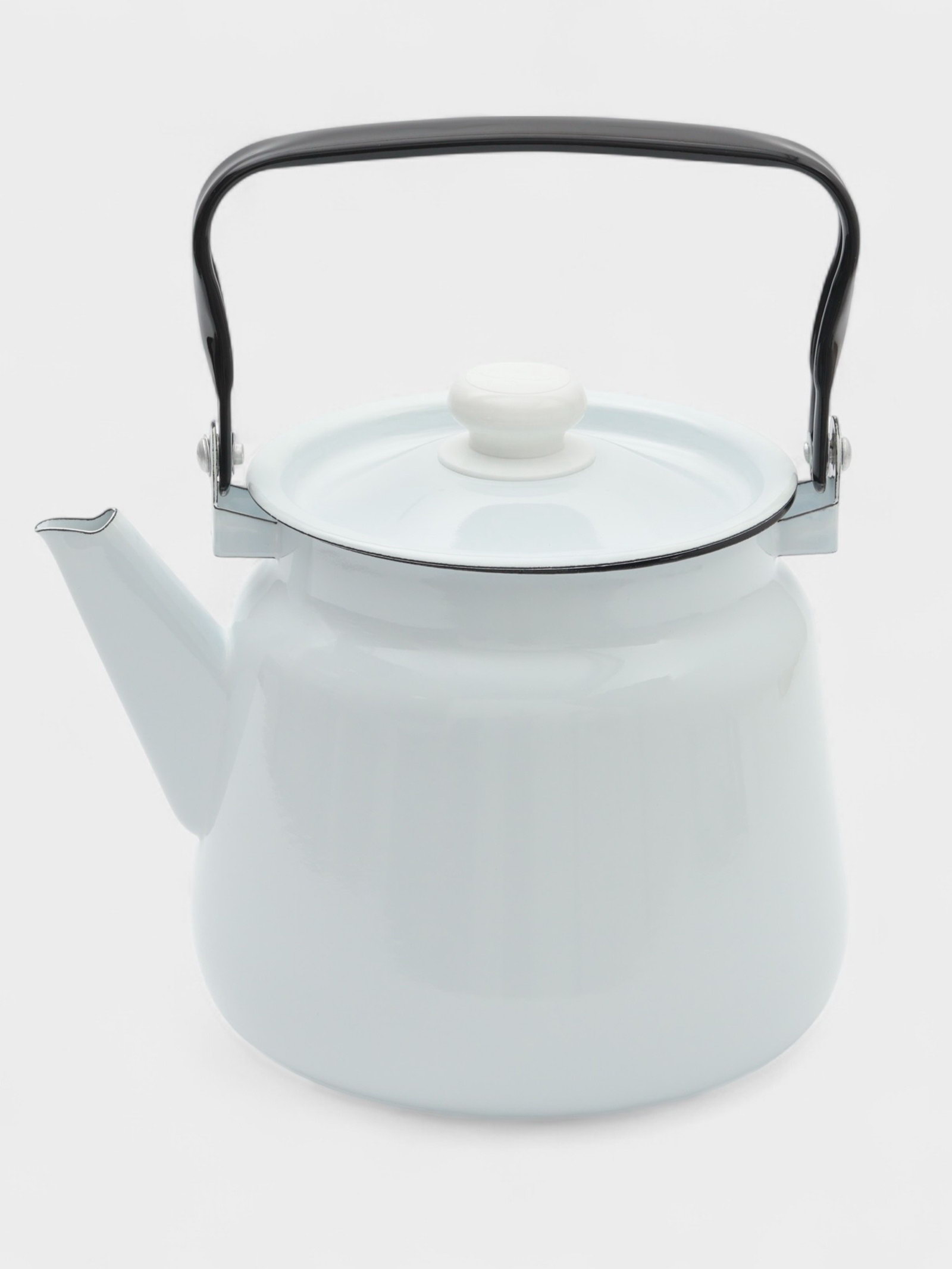 Чайник, 3.5 л, эмалированная сталь, белый, 23x17x19 см., Сибирские товары, Россия