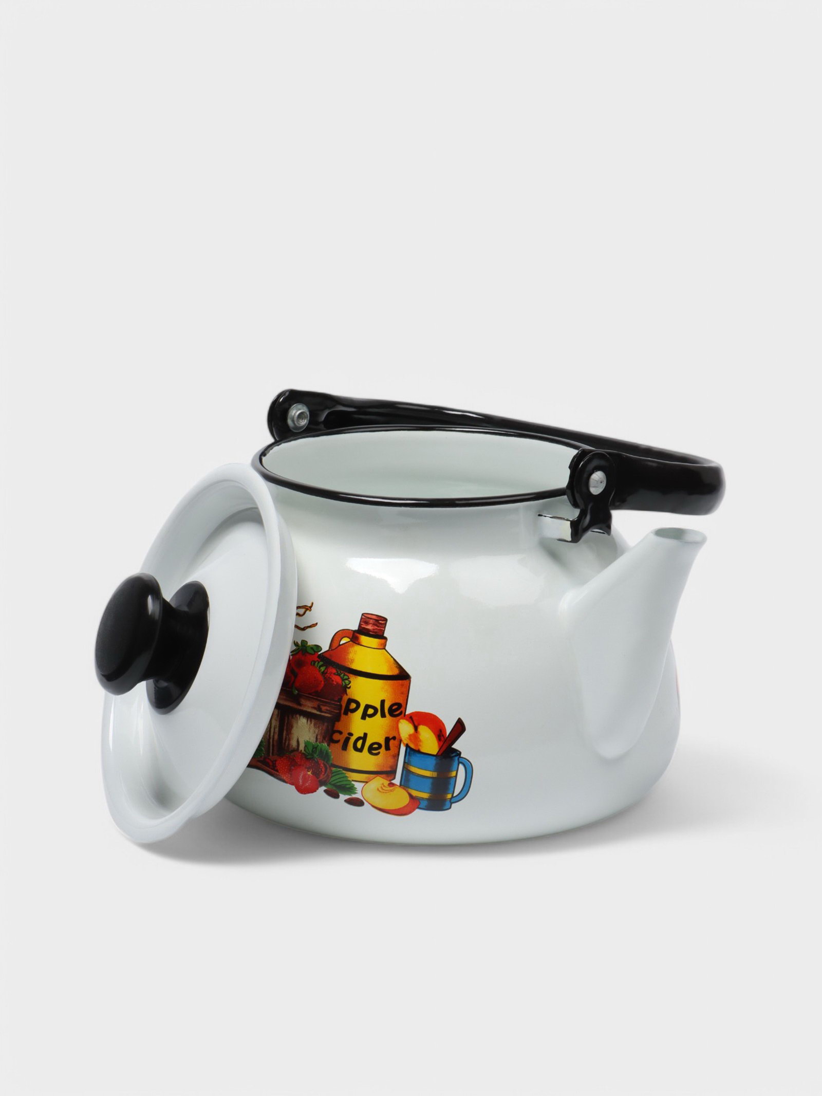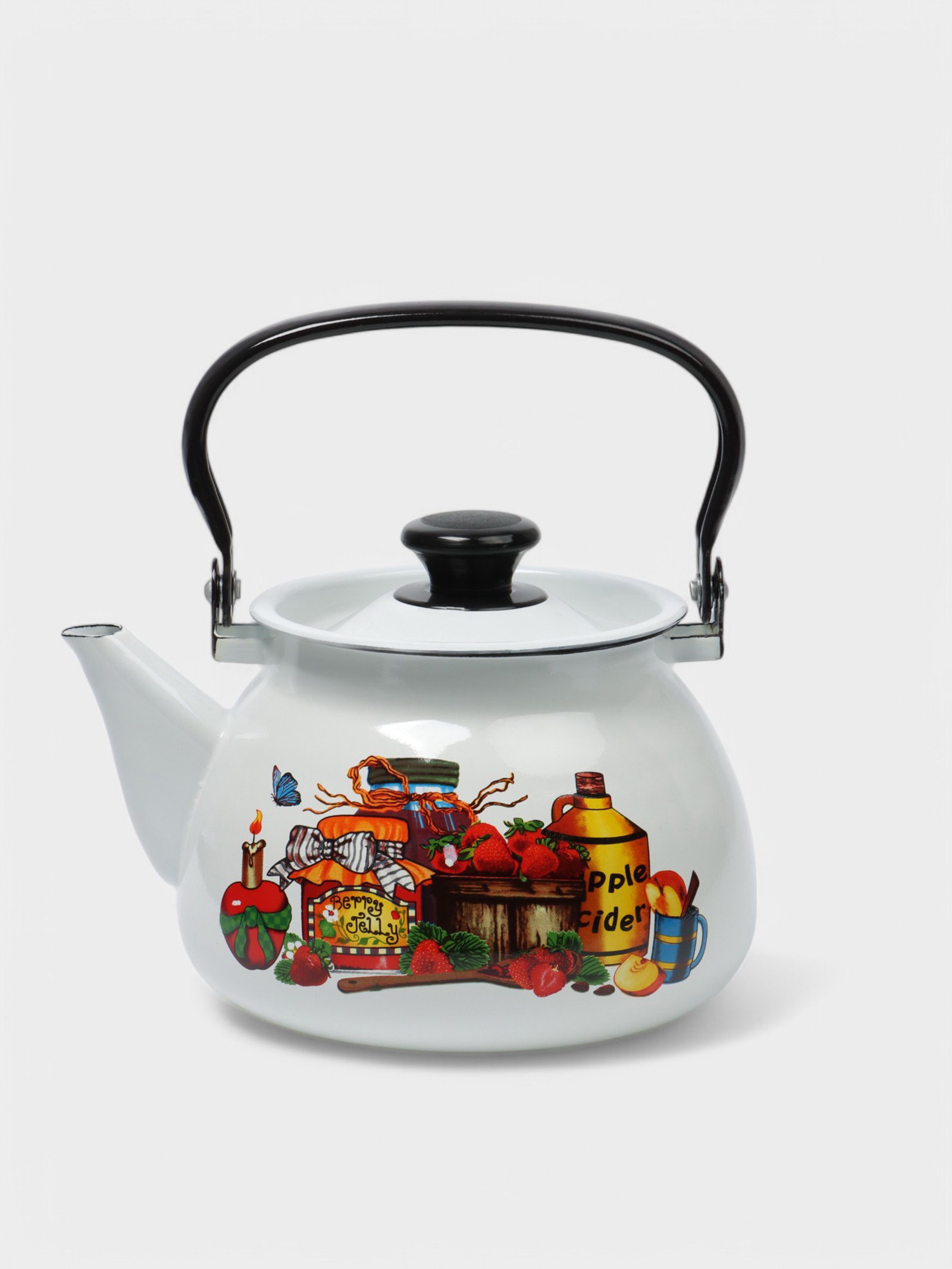Чайник, 3 л, эмалированная сталь, рисунок МИКС, белый, 3000 мл., Керченская эмаль, Россия